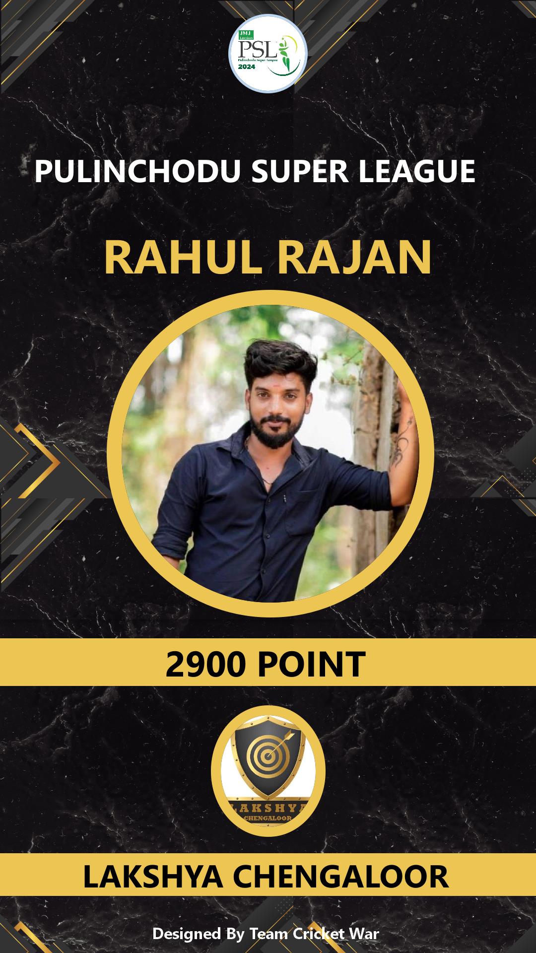 ALLROUNDER, AGE : 26 VARANDARAPPILLY Bid Amount : 2900 Team : SHIVAJI CRICKET CLUB Download ID Card VIEW PROFILE |