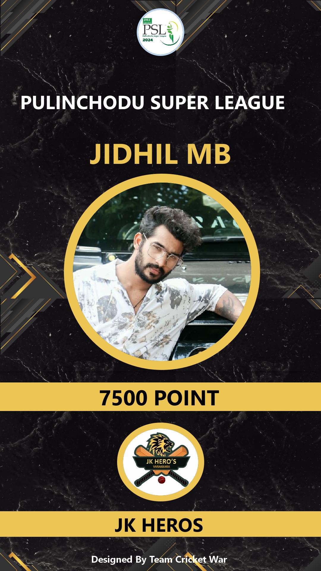 BATSMAN, AGE : 29 PALLIKUNNU Bid Amount : 2300 Team : JK HEROS Download ID Card VIEW PROFILE |