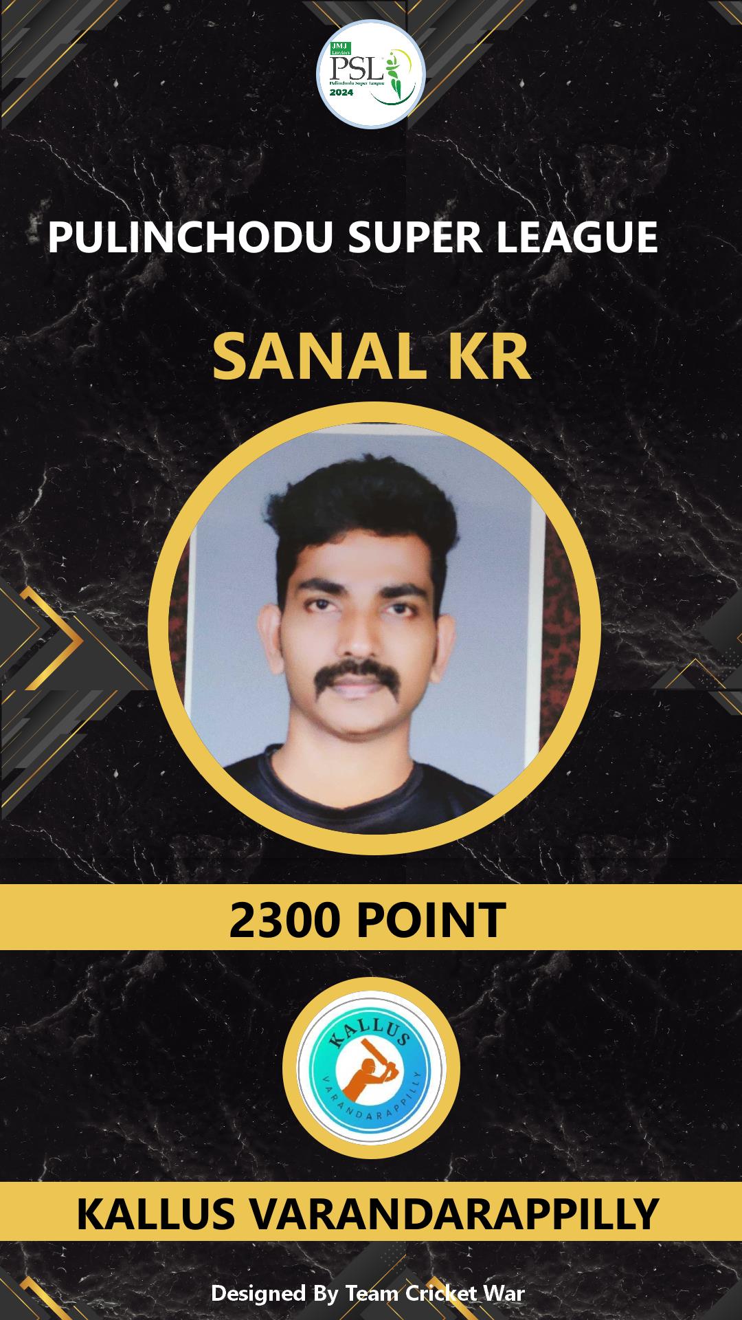 BATTING ALLROUNDER, AGE : 37 VARANDARAPPILLY Bid Amount : 2300 Team : KALLUS VARANDARAPPILLY Download ID Card VIEW PROFILE |