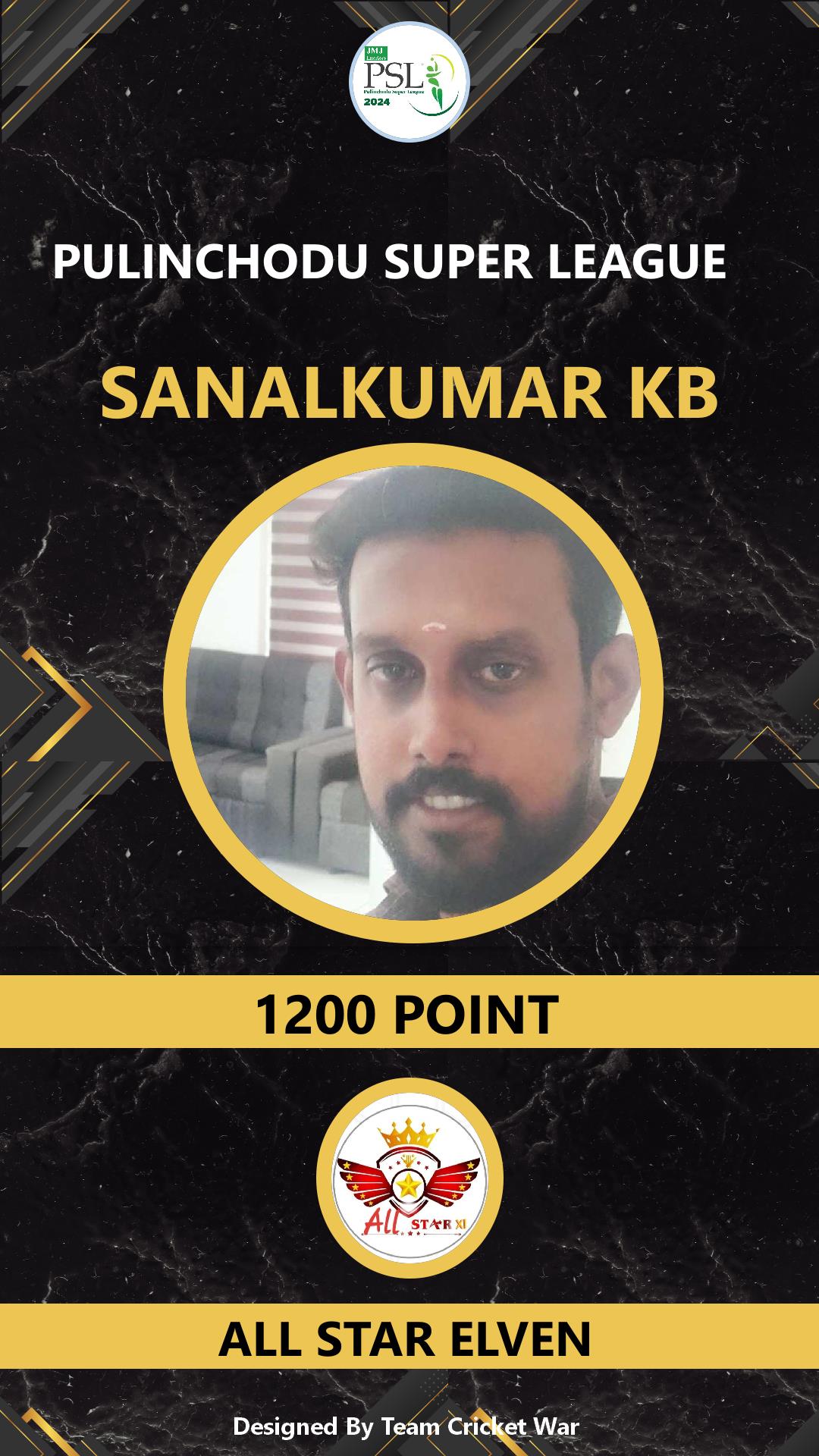 ALLROUNDER, AGE : 41 PUDUKAD Bid Amount : 1200 Team : ALL STAR ELVEN Download ID Card VIEW PROFILE |