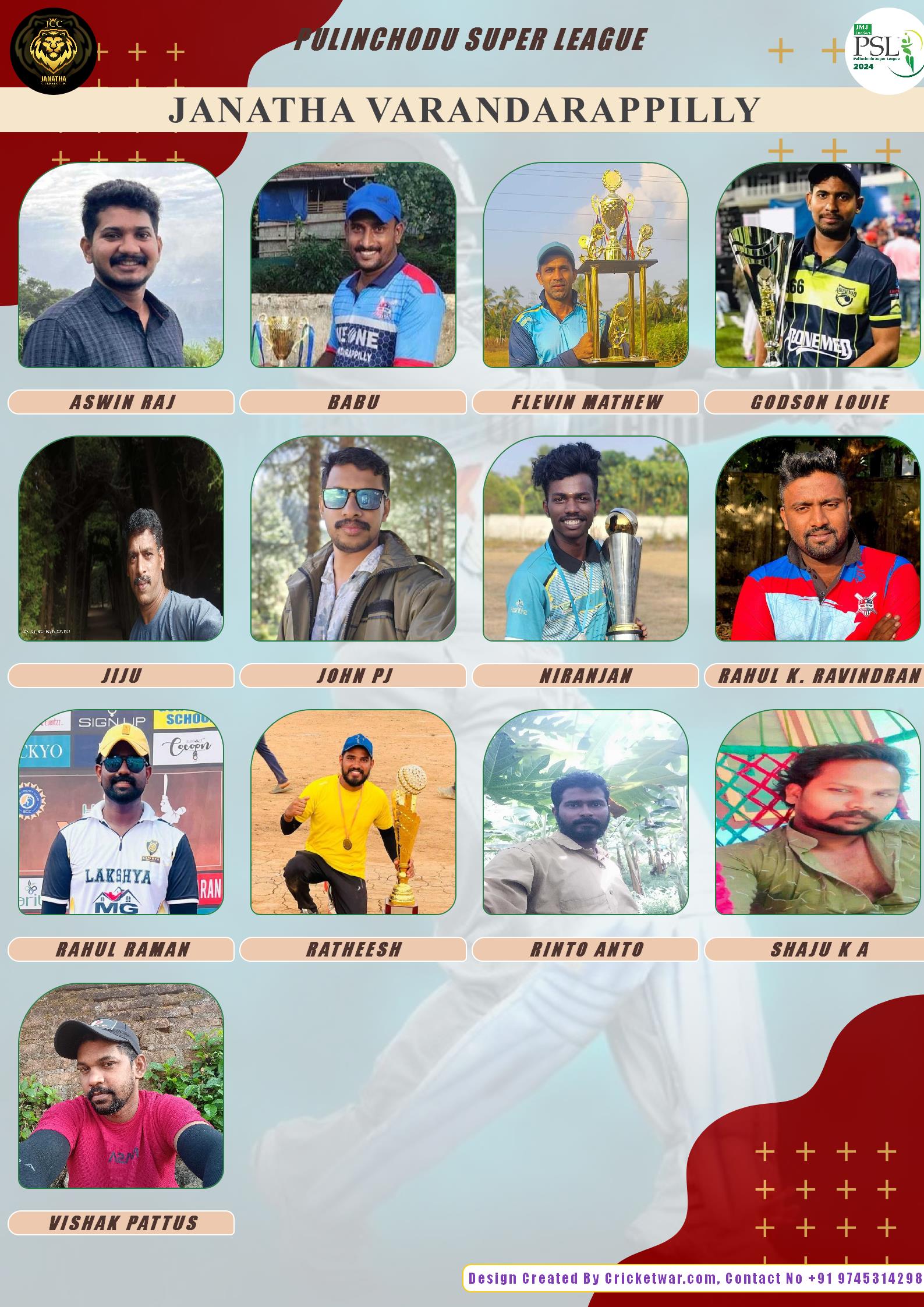 BATTING ALLROUNDER, AGE : 32 VARANDARAPPILLY Bid Amount : 10000 Team : JANATHA VARANDARAPPILLY Download ID Card VIEW PROFILE |