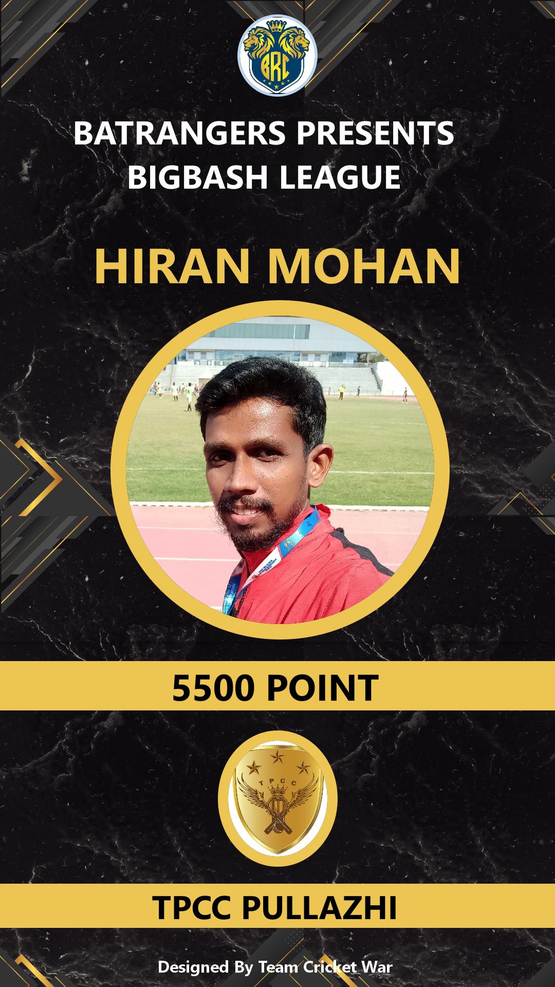 Batsman, AGE : 32 ![]() ![]() ![]() Mullakkara Bid Amount : 1000 Team : ONE 7 MULLAKKARA Download ID Card VIEW PROFILE |