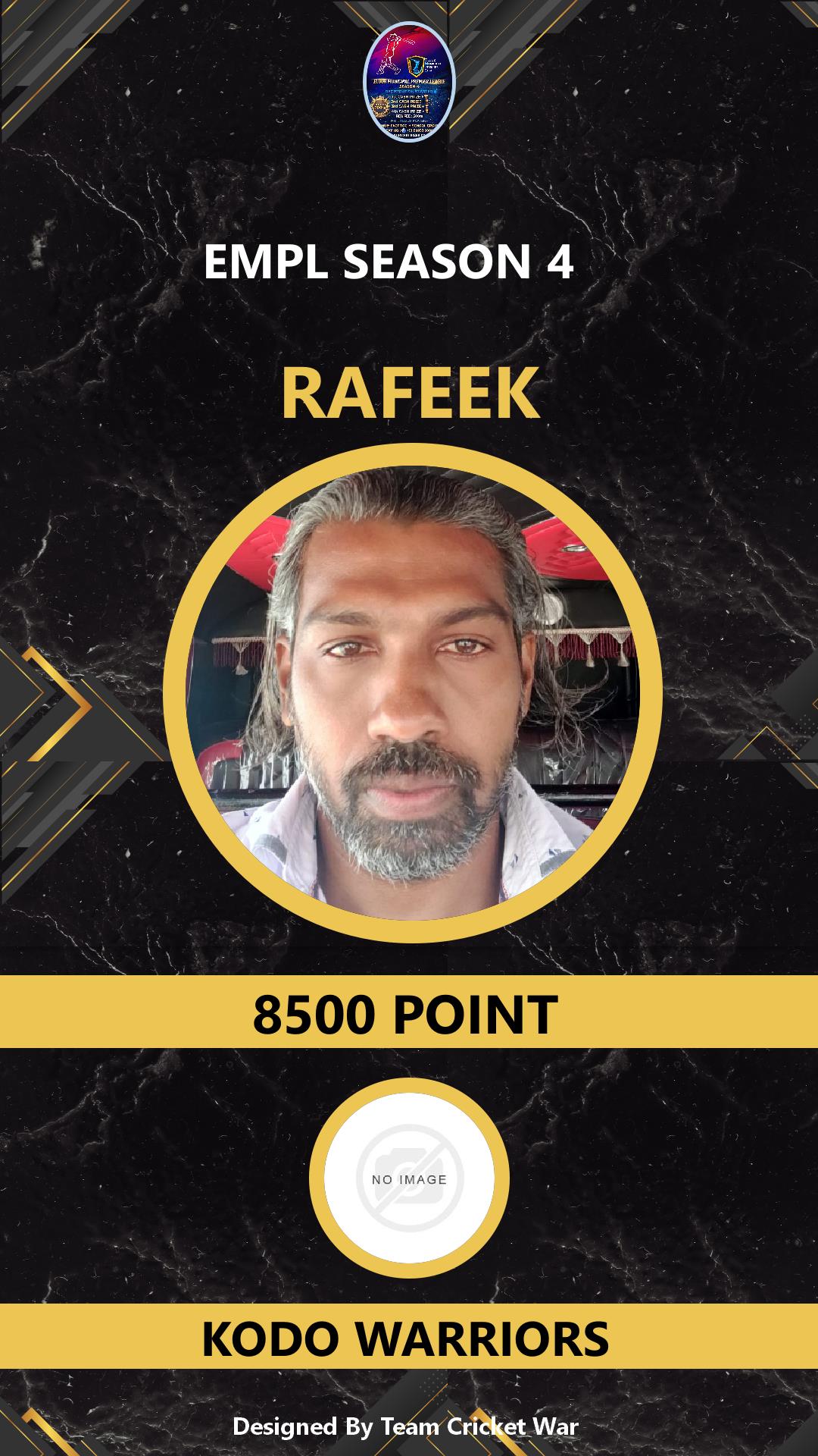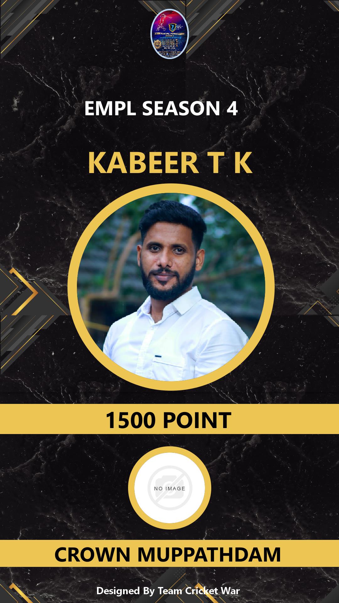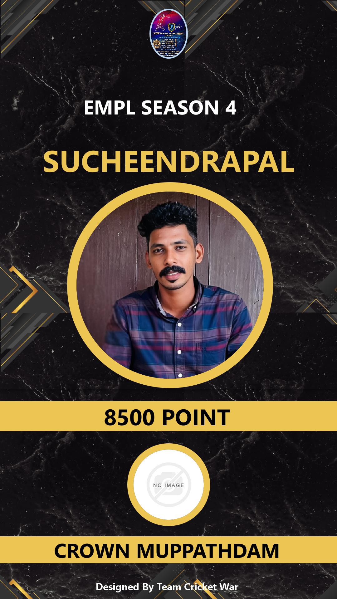 BOWLING ALLROUNDER, AGE : 0 PANAIKULAM Bid Amount : 8500 Team : MAVEROCKS Download ID Card VIEW PROFILE |