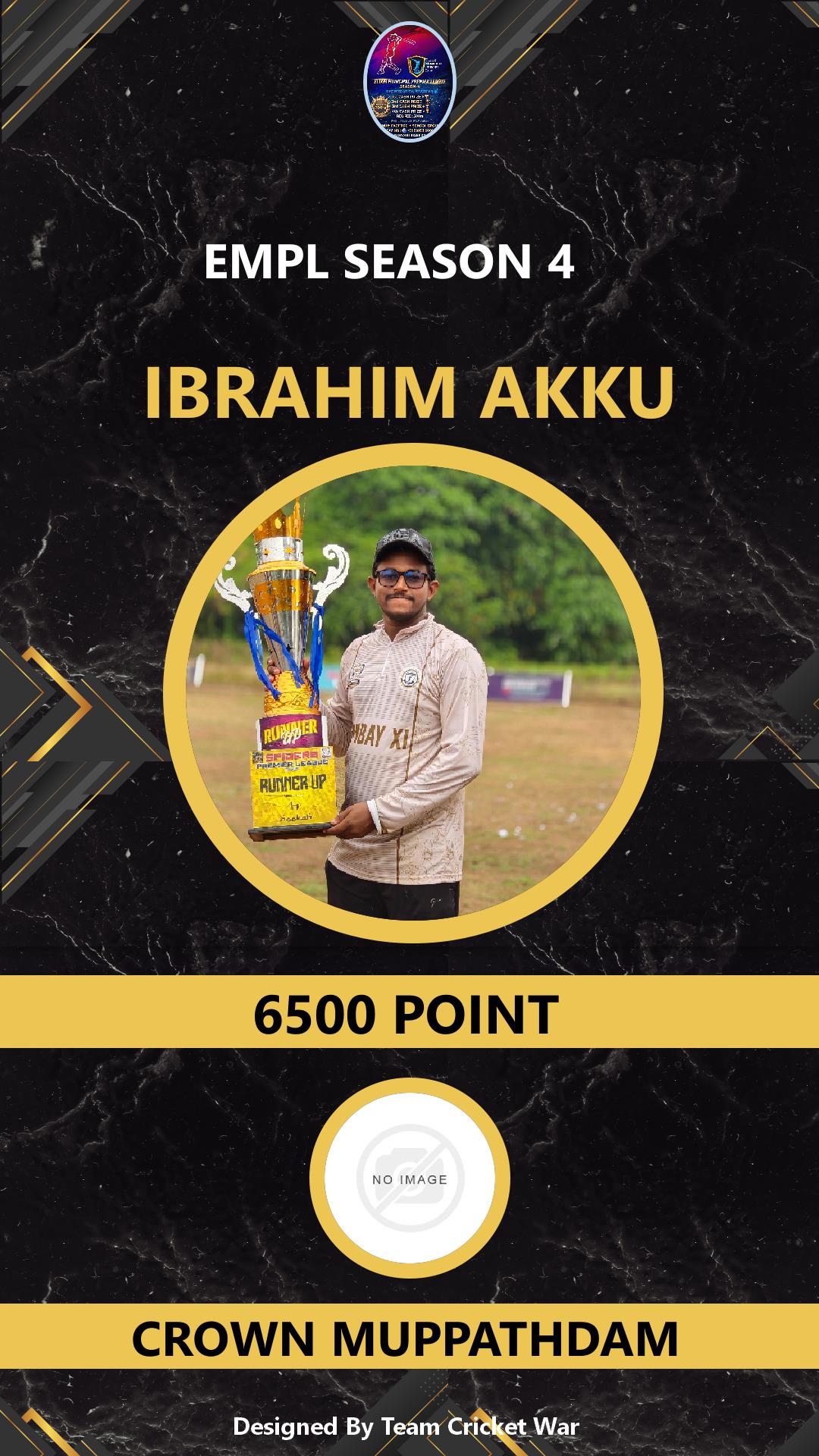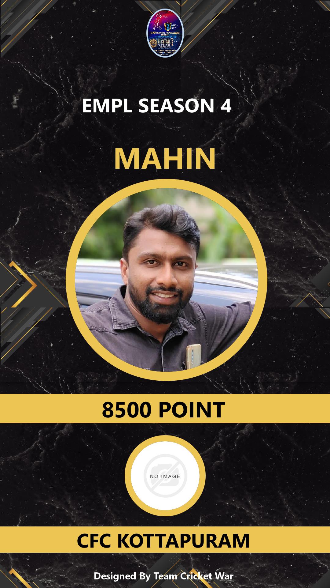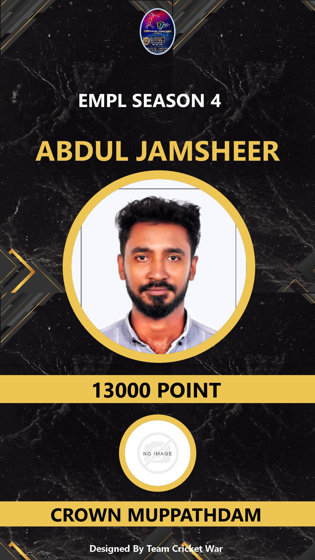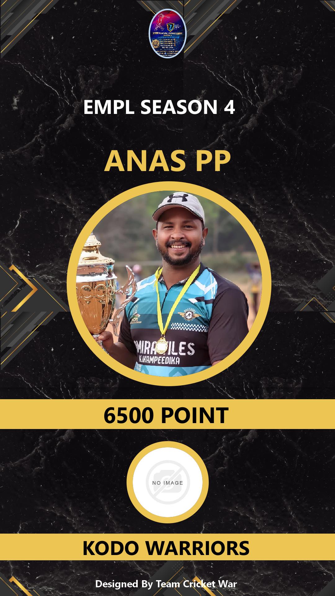 BOWLING ALLROUNDER, AGE : 0 PANAIKULAM Bid Amount : 8500 Team : MAVEROCKS Download ID Card VIEW PROFILE |