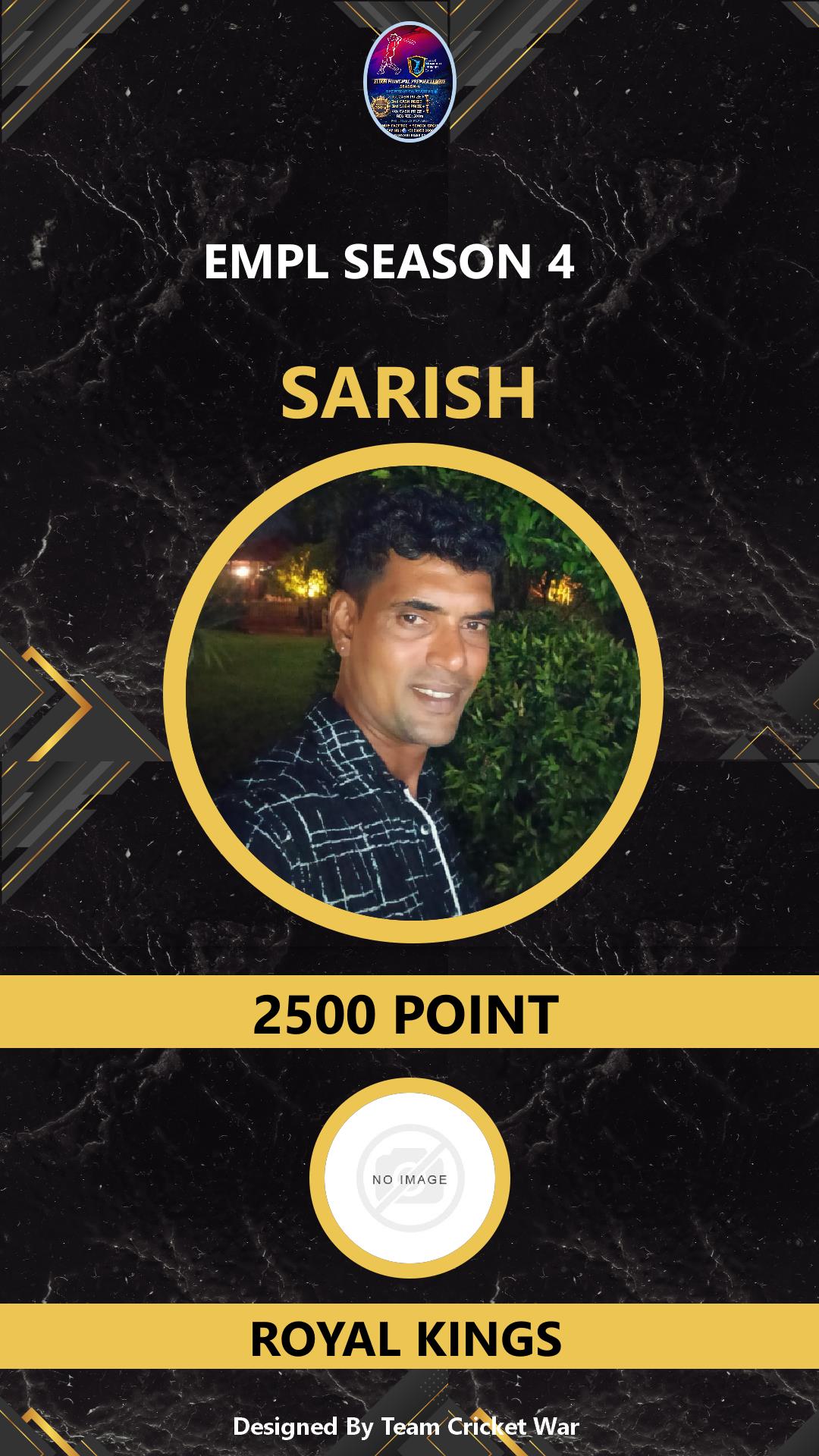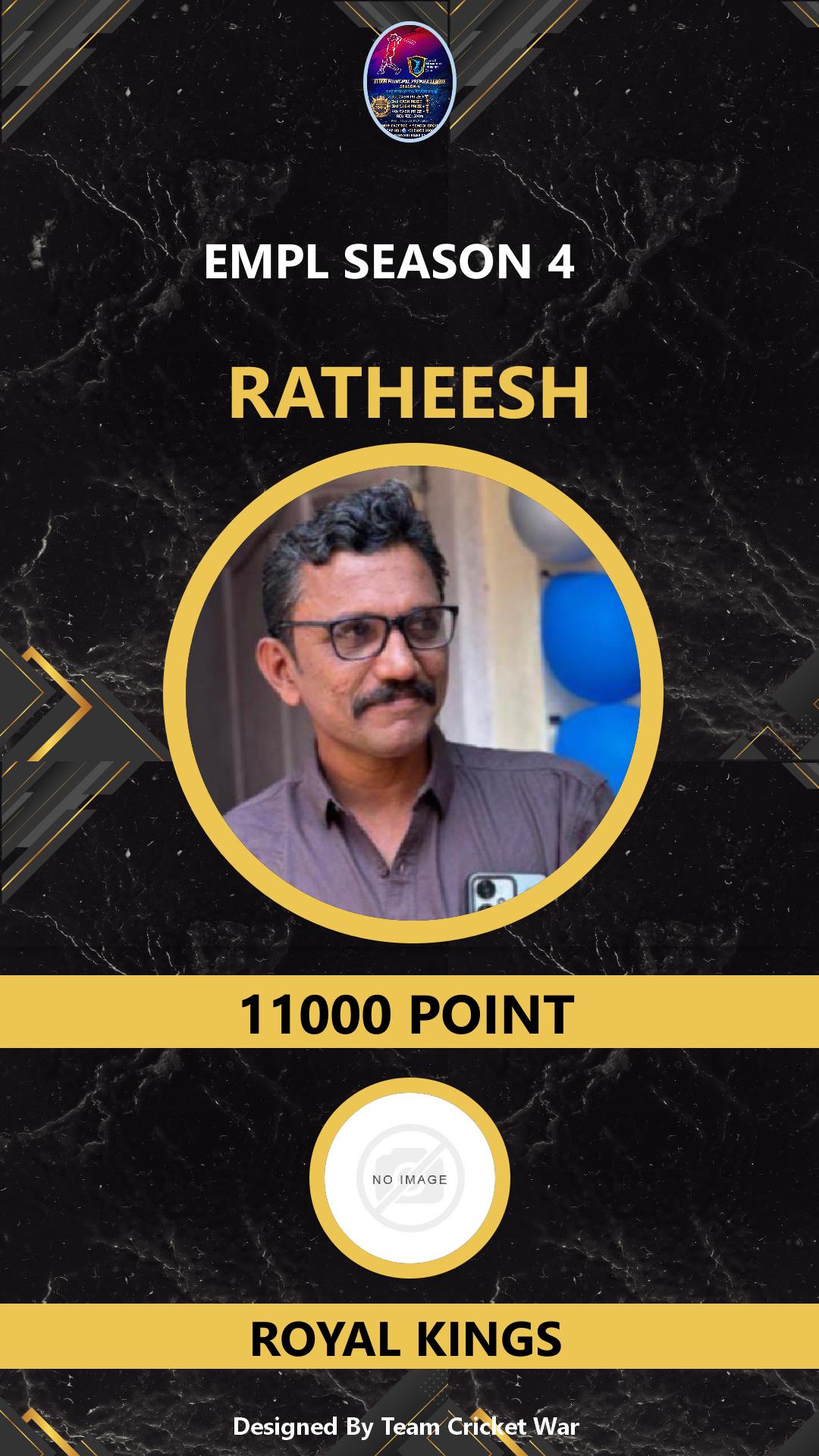 BATTING ALLROUNDER, AGE : 0 KALAMASHERI Bid Amount : 1000 Team : ROYAL KINGS Download ID Card VIEW PROFILE |