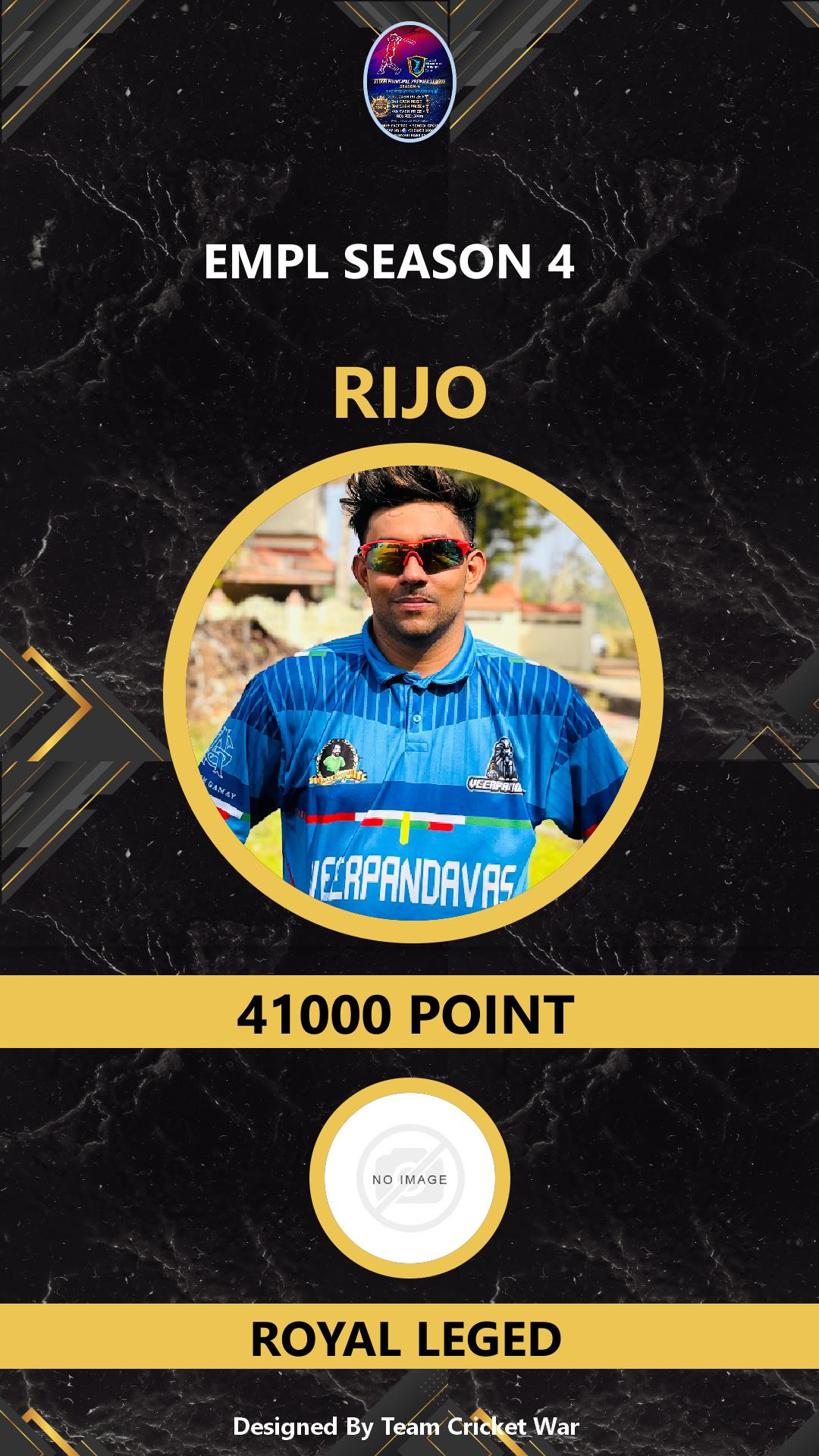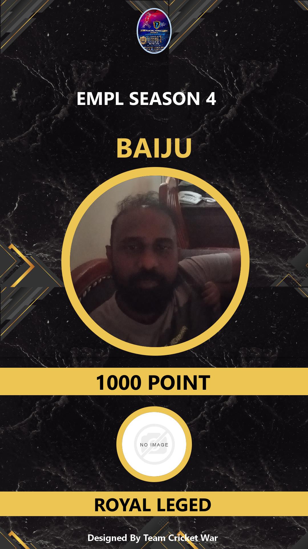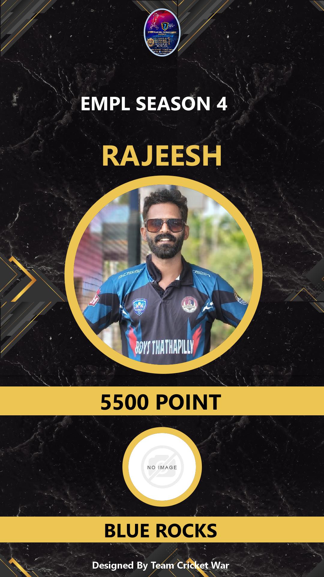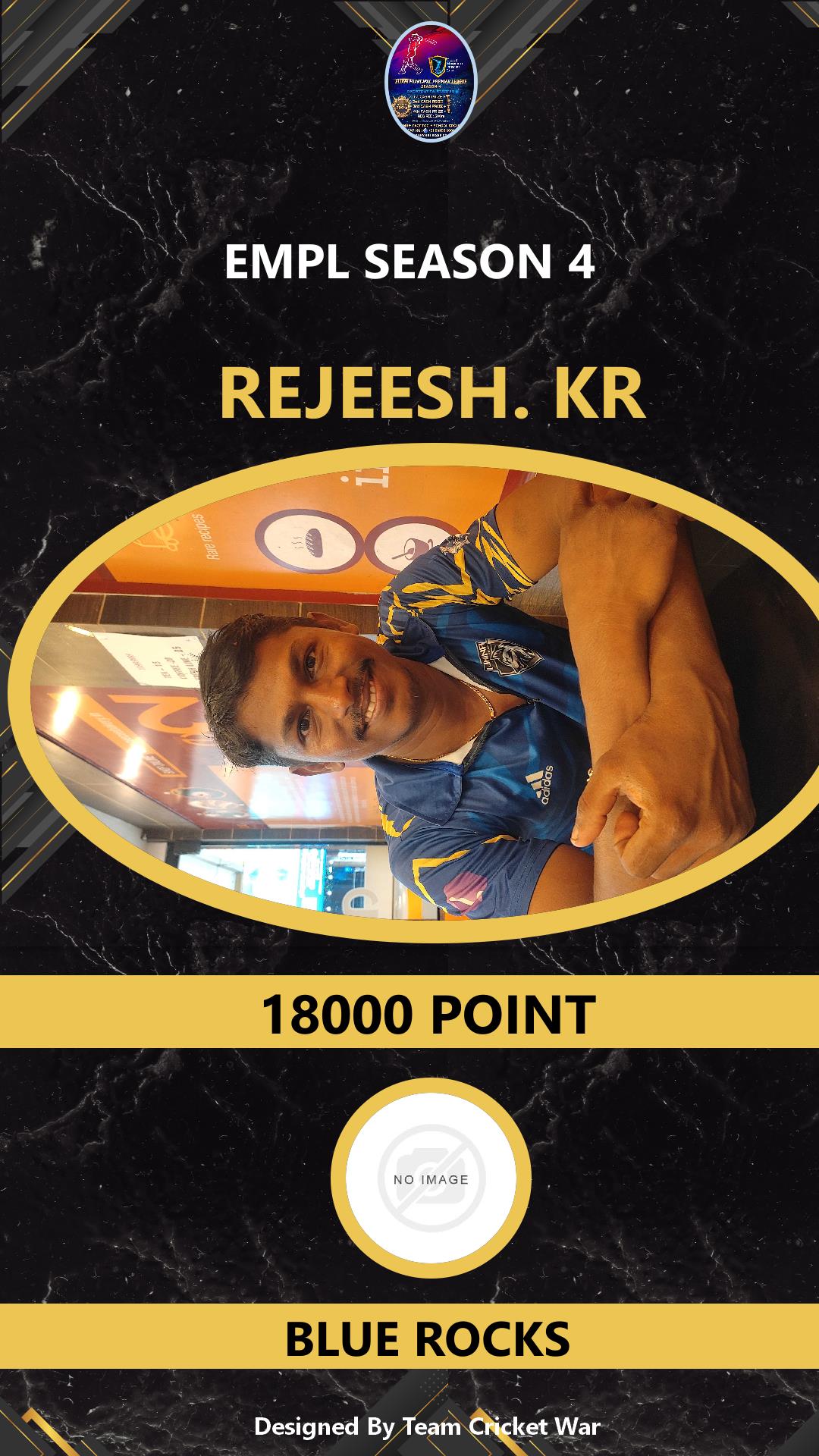 ALLROUNDER, AGE : 41 KALAMASSERY Bid Amount : 1000 Team : BLUE ROCKS Download ID Card VIEW PROFILE |