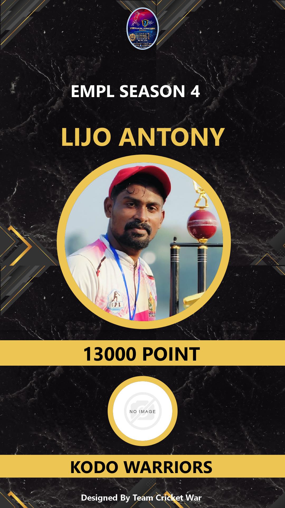 BATSMAN, AGE : 30 ELOOKARA Bid Amount : 16000 Team : KODO WARRIORS Download ID Card VIEW PROFILE |