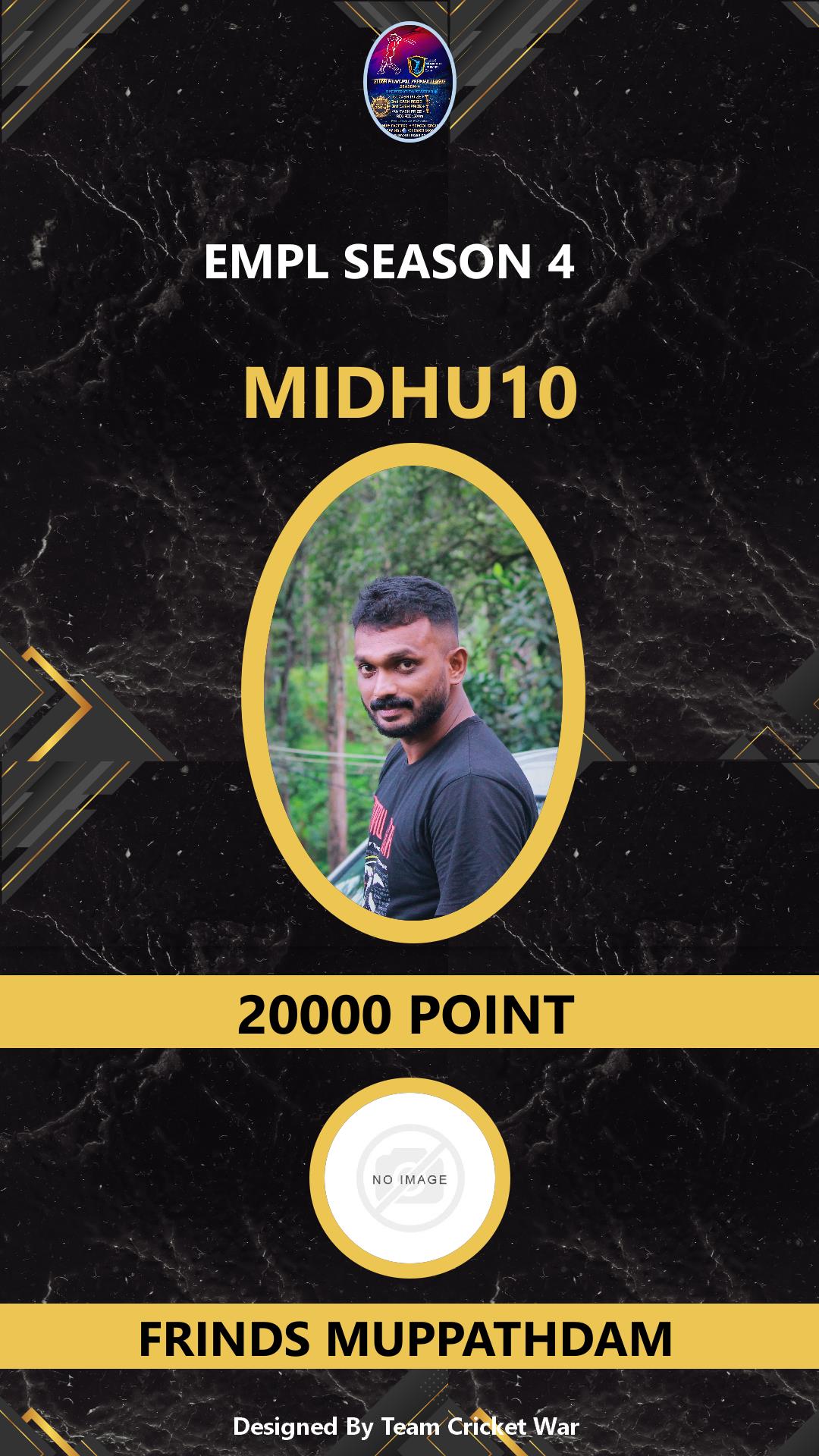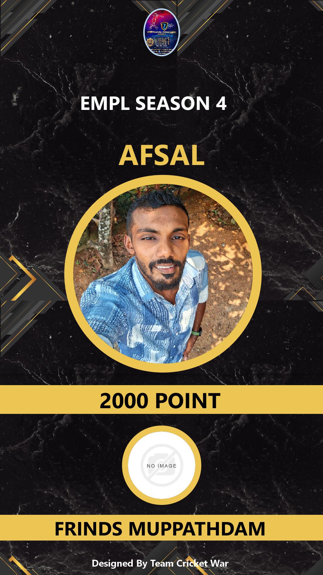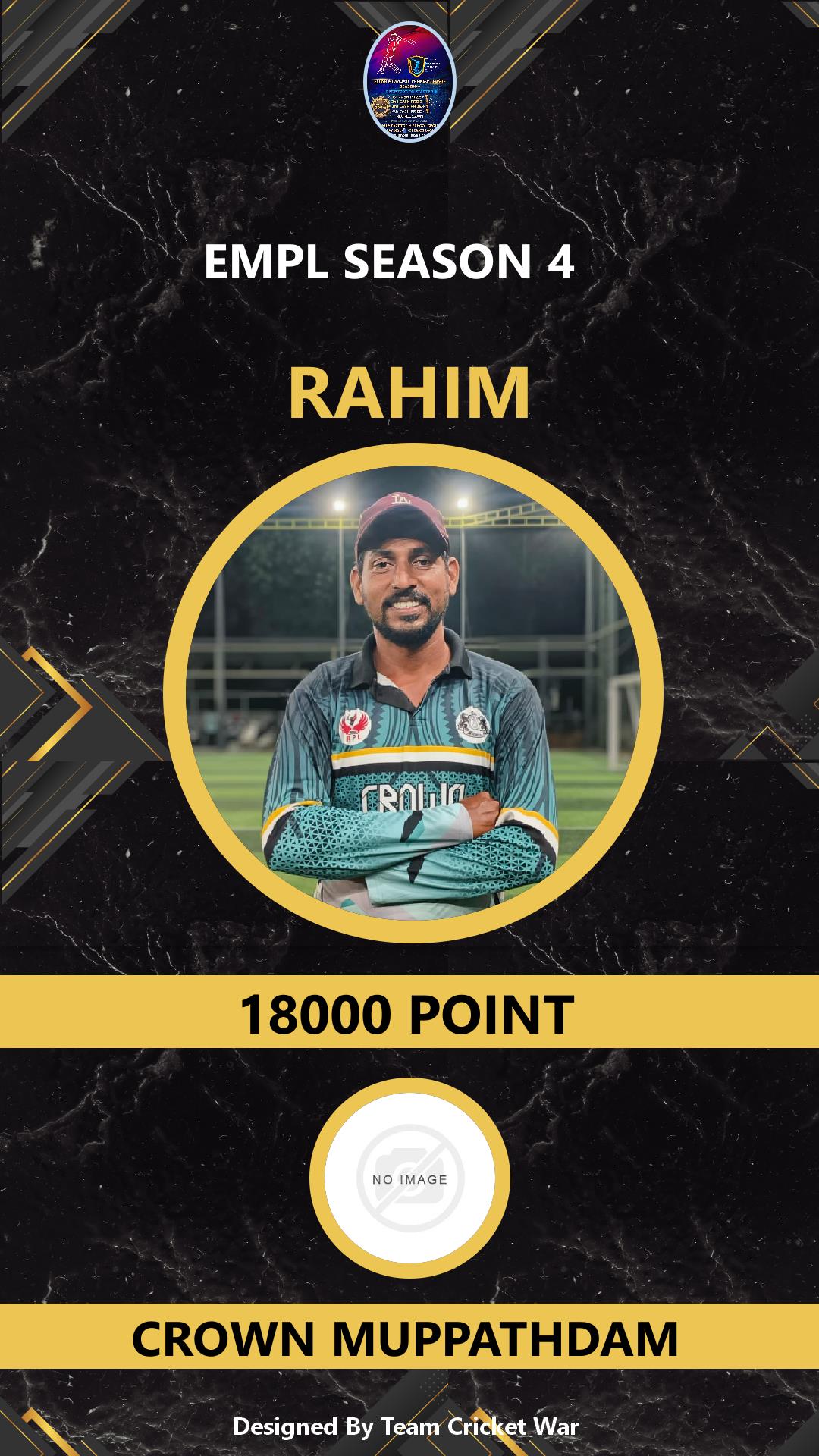 BOWLING ALLROUNDER, AGE : 29 MUPPATHADAM Bid Amount : 1000 Team : BLUE ROCKS Download ID Card VIEW PROFILE |