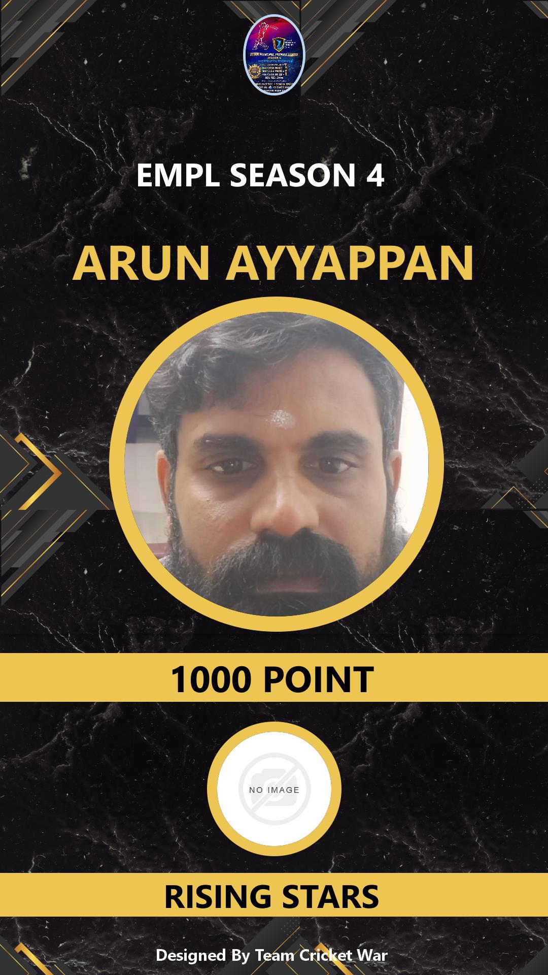 ALLROUNDER, AGE : 31 PATHALAM Bid Amount : 1000 Team : RISING STARS Download ID Card VIEW PROFILE |