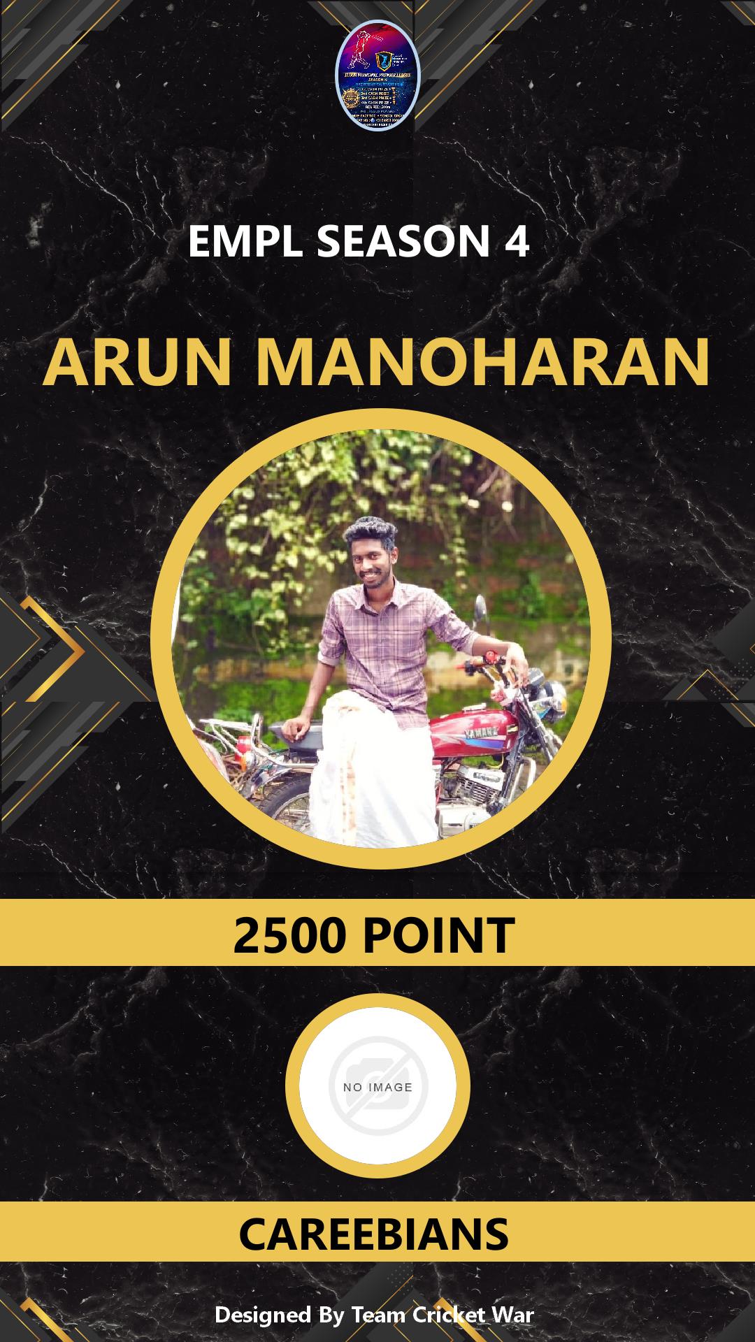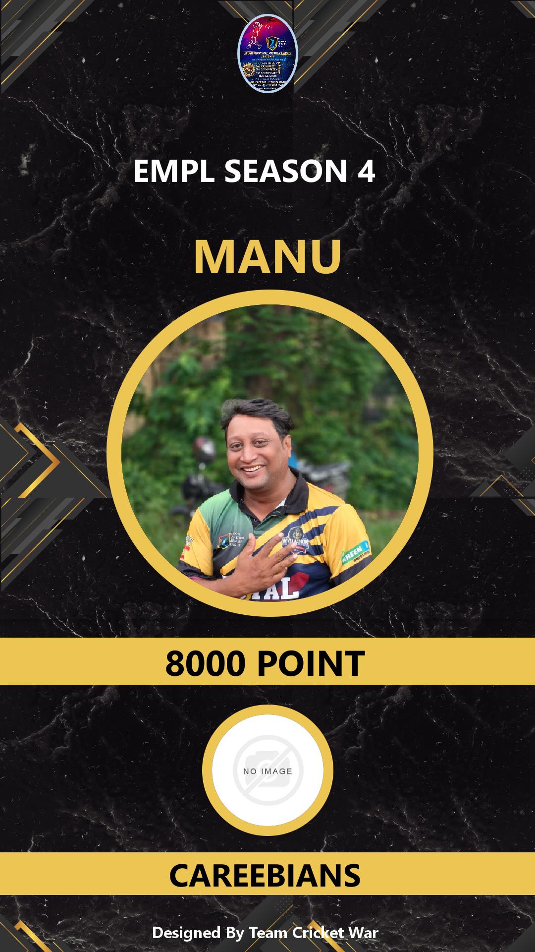 BATSMAN, AGE : 34 MANJUMMEL Bid Amount : 9000 Team : CAREEBIANS Download ID Card VIEW PROFILE |