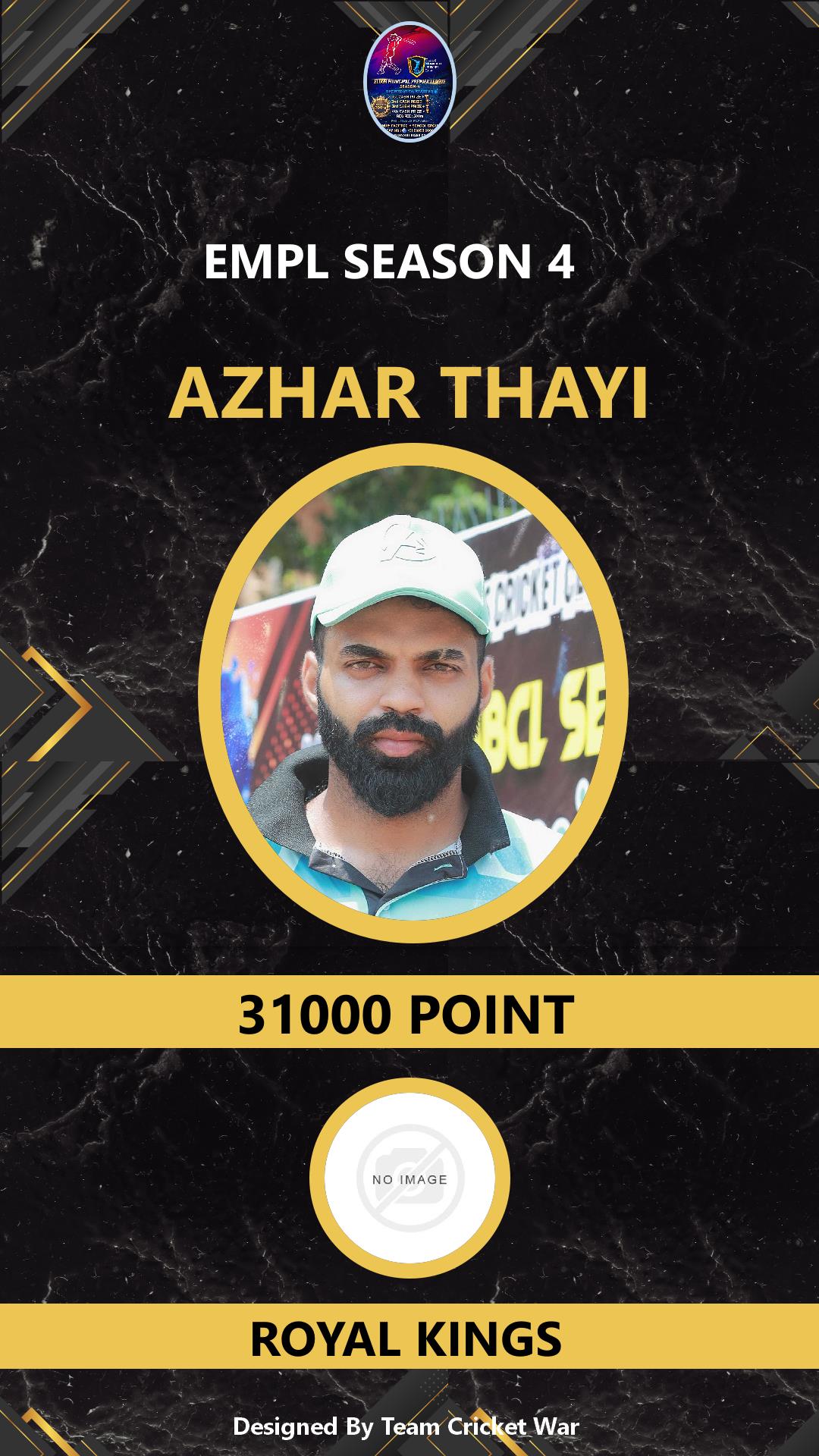 ALLROUNDER, AGE : 37 MUPPATHADAM Bid Amount : 20000 Team : ROYAL KINGS Download ID Card VIEW PROFILE |