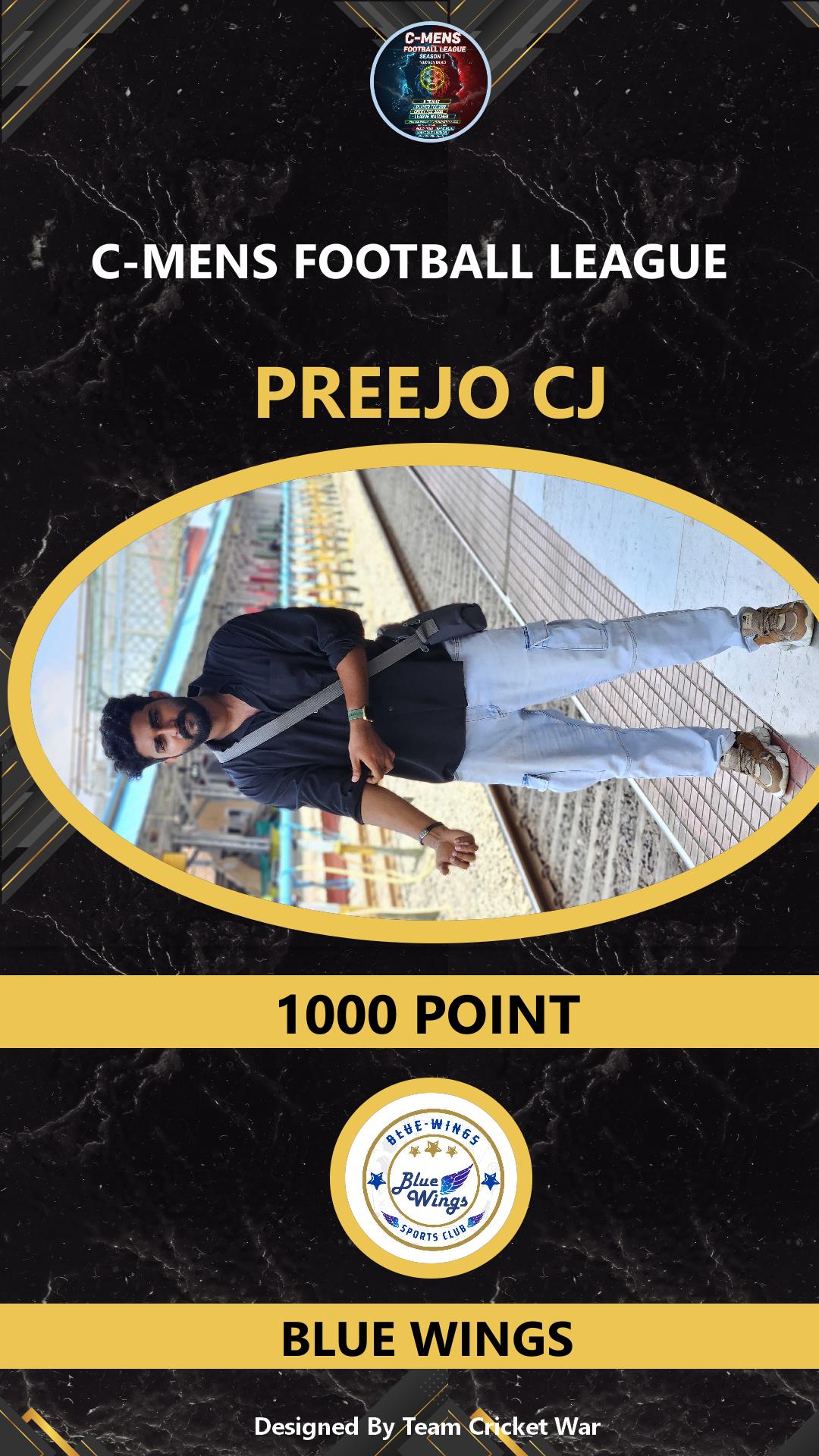 MIDFIELDER, AGE : 32 CHENGALOOR Bid Amount : 1000 Team : THEJUS CHENGALOOR Download ID Card VIEW PROFILE |