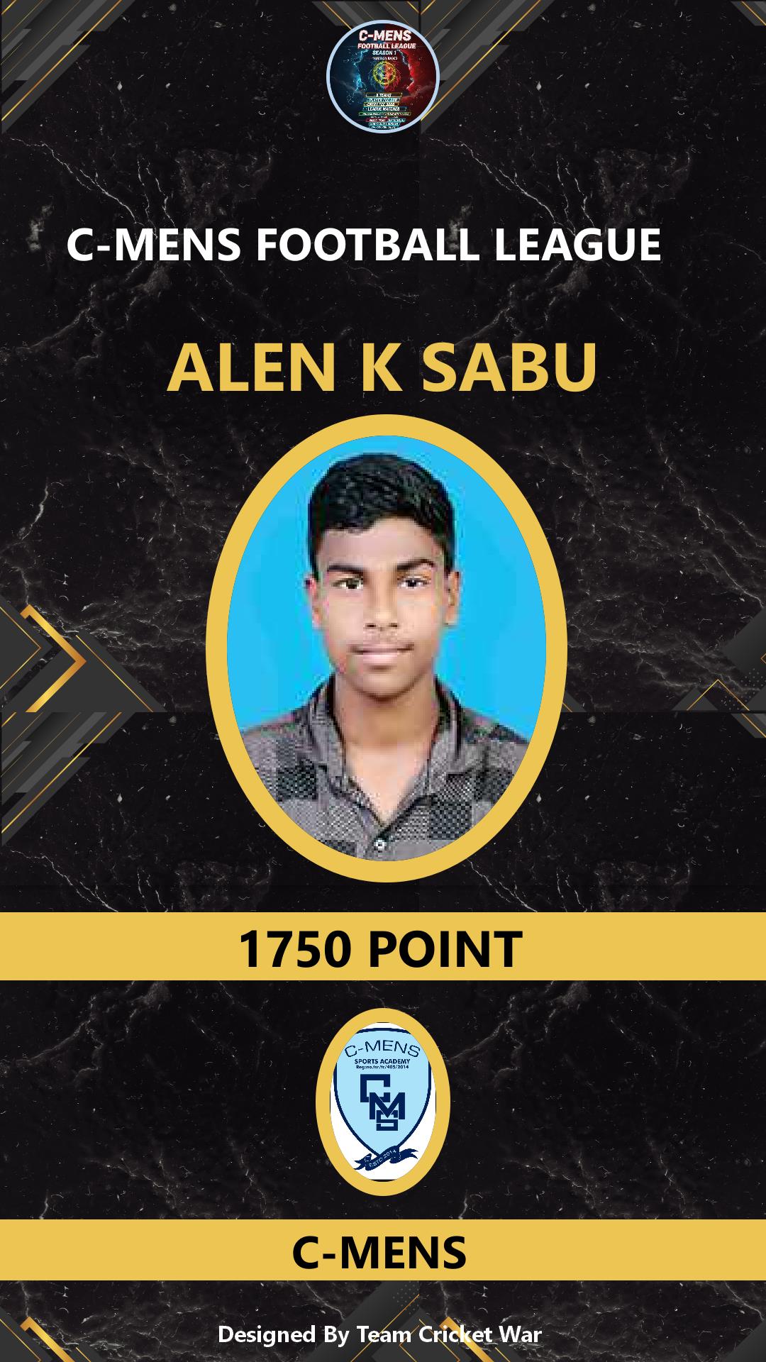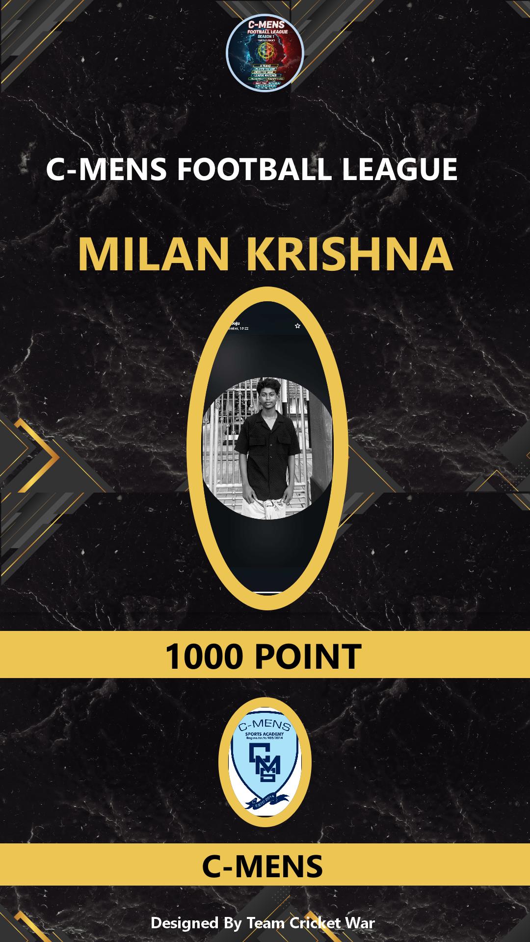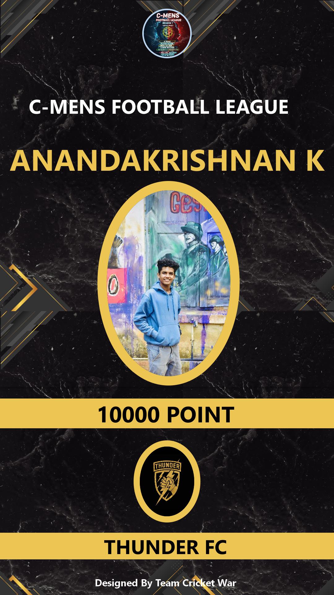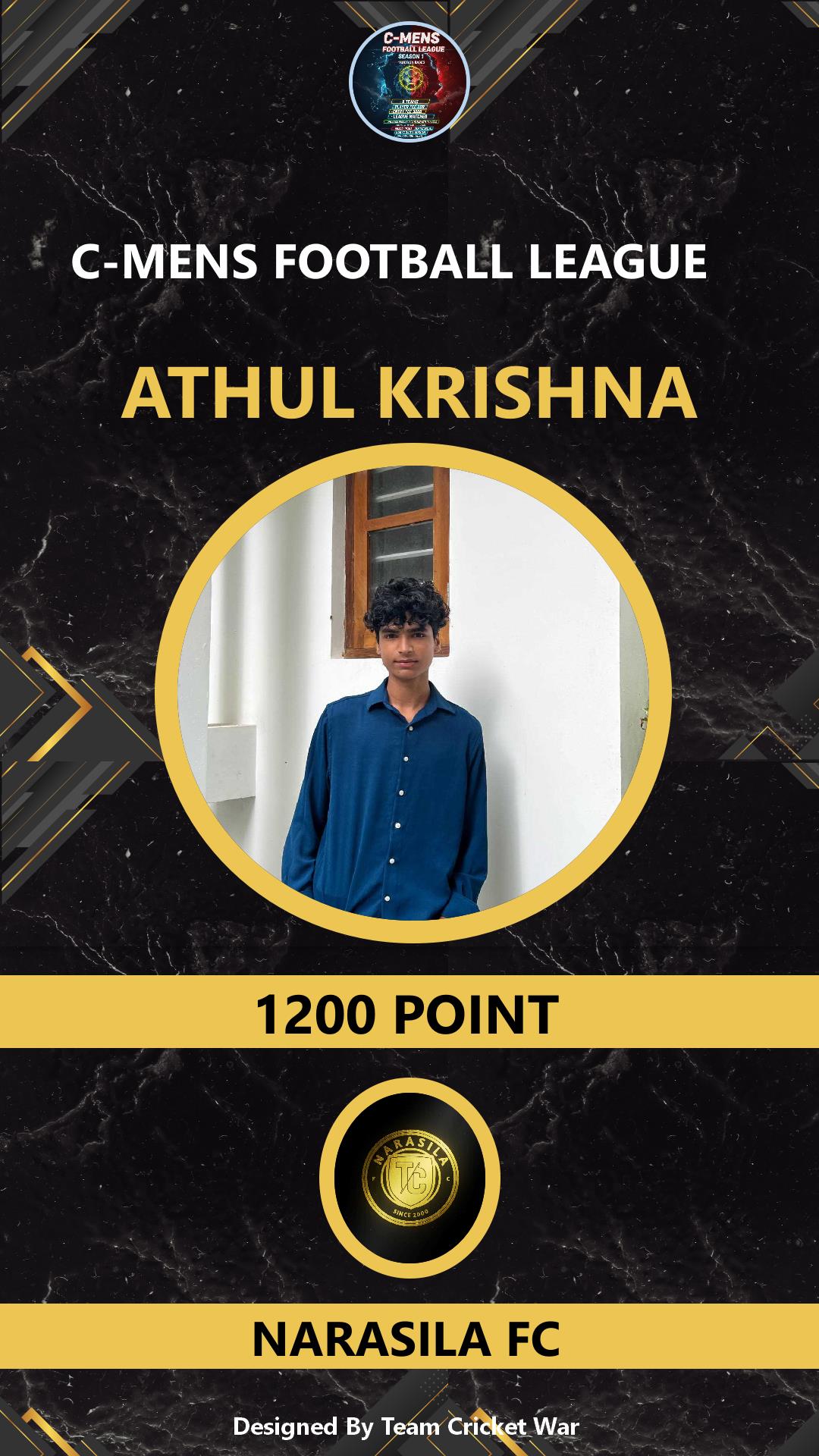 FORWARD, AGE : 18 CHENGALOOR Bid Amount : 1000 Team : C-MENS Download ID Card |