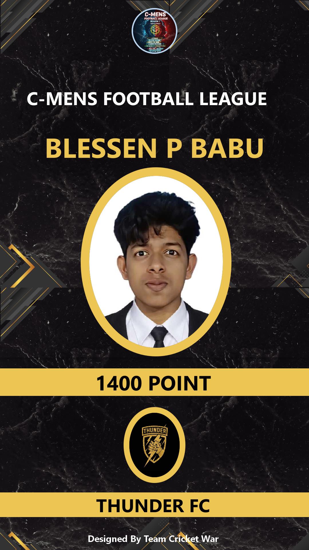 FORWARD, AGE : 20 CHENGALOOR Bid Amount : 1400 Team : THUNDER FC Download ID Card VIEW PROFILE |