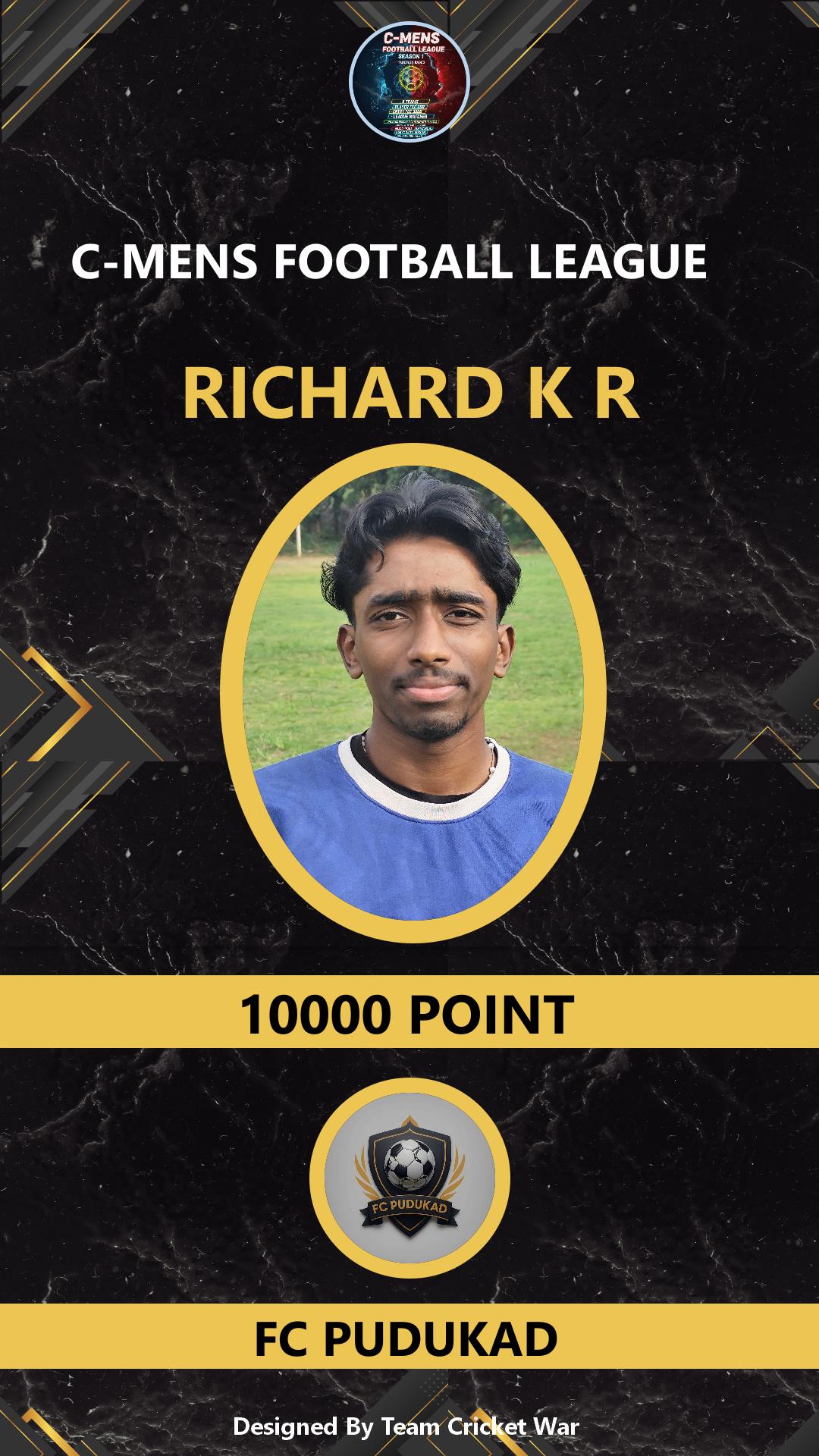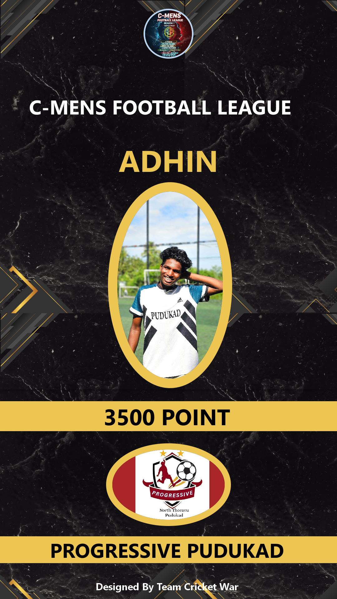 FORWARD, AGE : 27 PADAKKU Bid Amount : 1000 Team : PROGRESSIVE PUDUKAD Download ID Card |