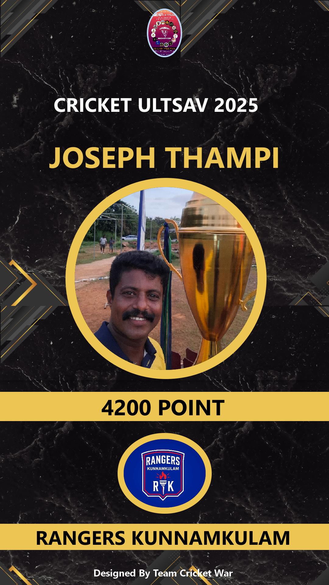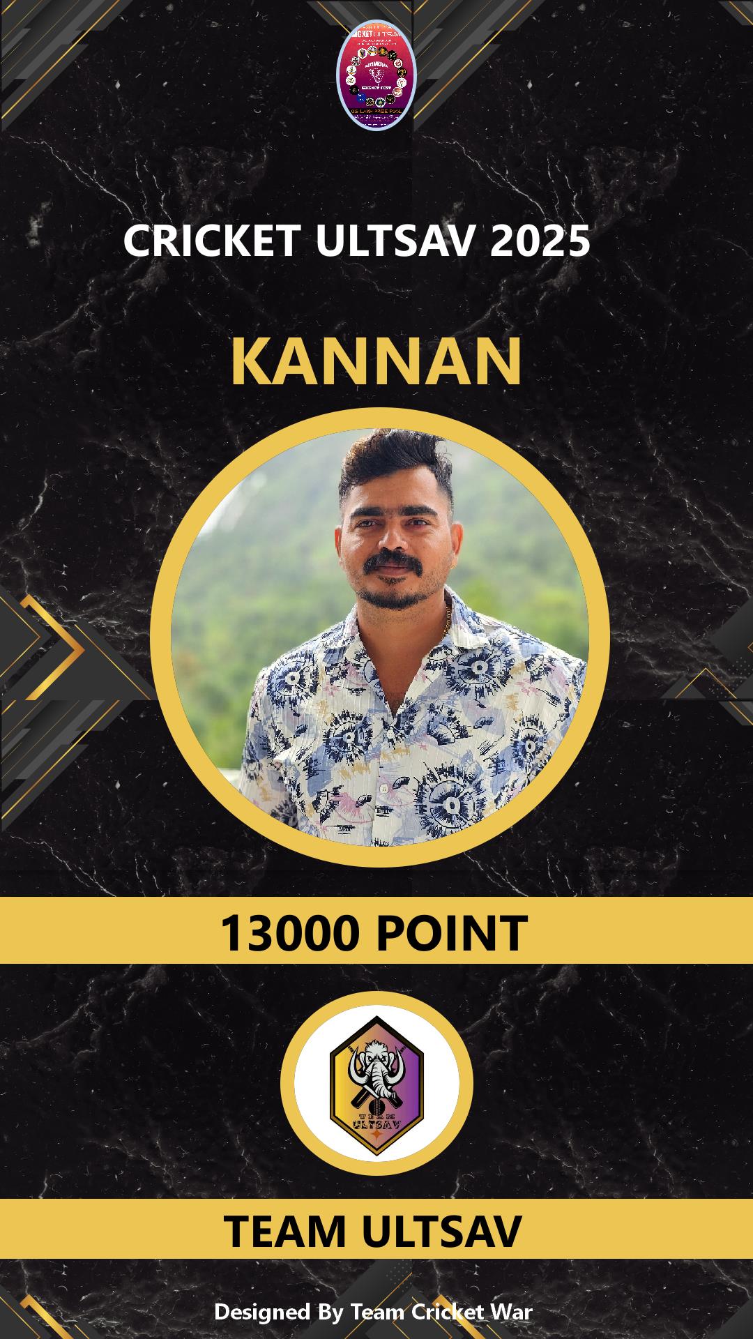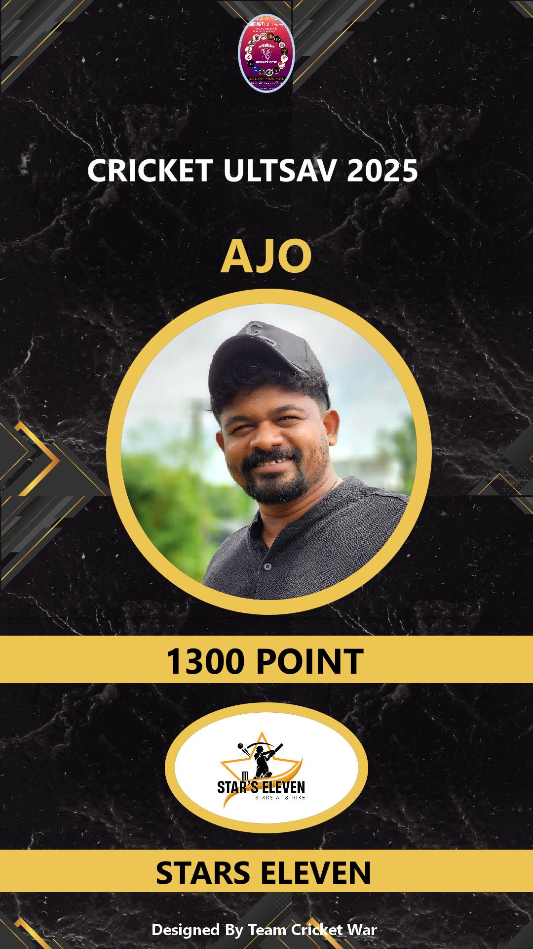 ALLROUNDER, AGE : 40 KADANGOD Bid Amount : 0 Team : STARS ELEVEN Download ID Card VIEW PROFILE |