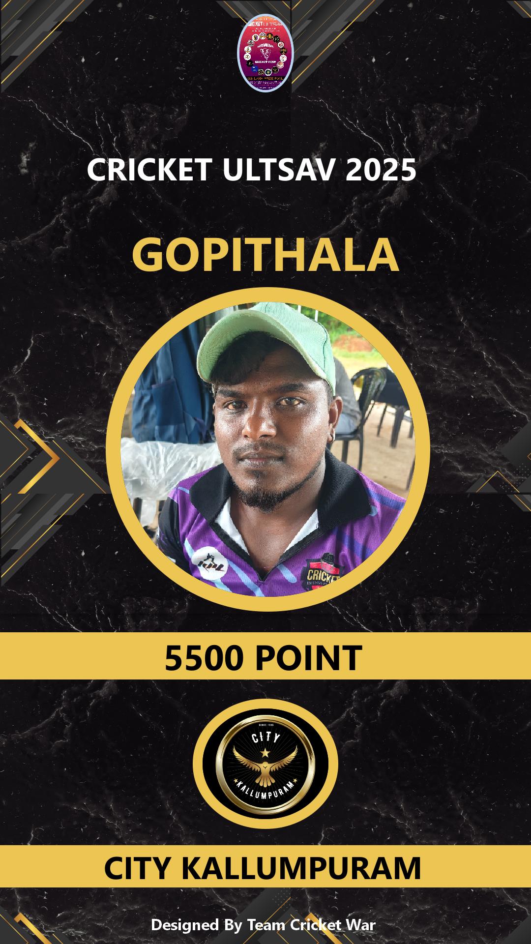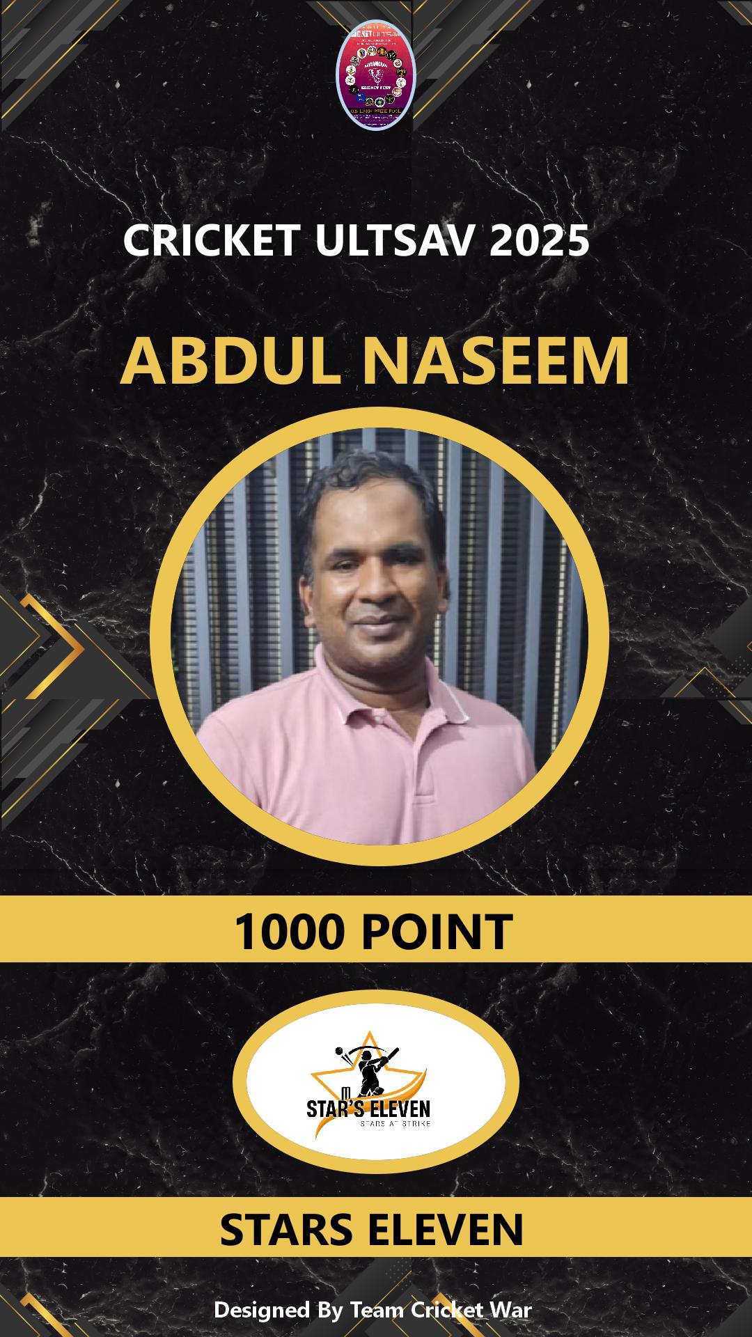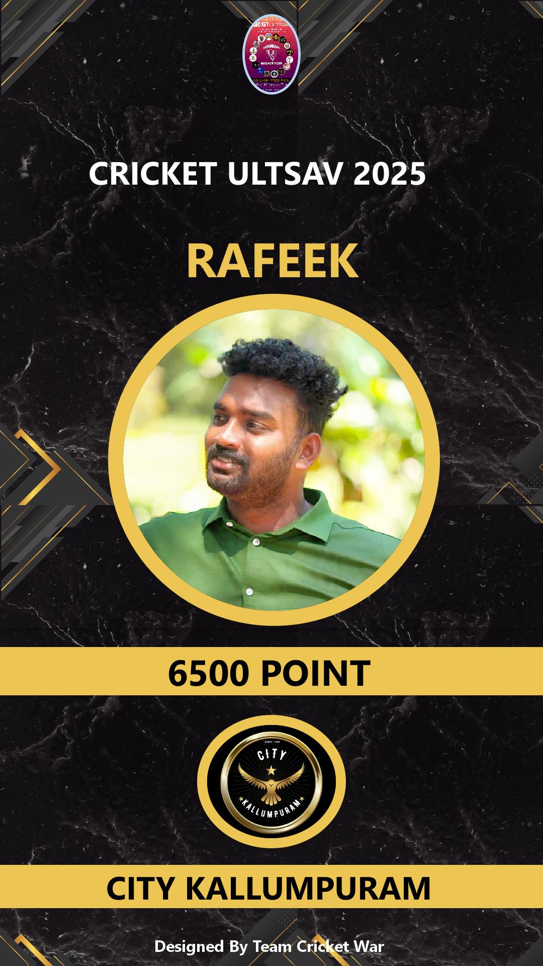 ALLROUNDER, AGE : 40 KADANGOD Bid Amount : 0 Team : STARS ELEVEN Download ID Card VIEW PROFILE |