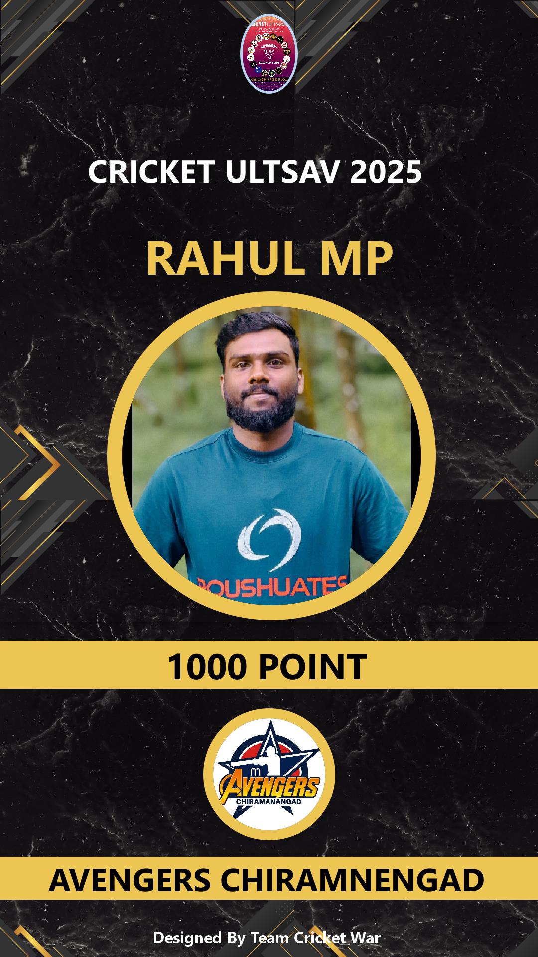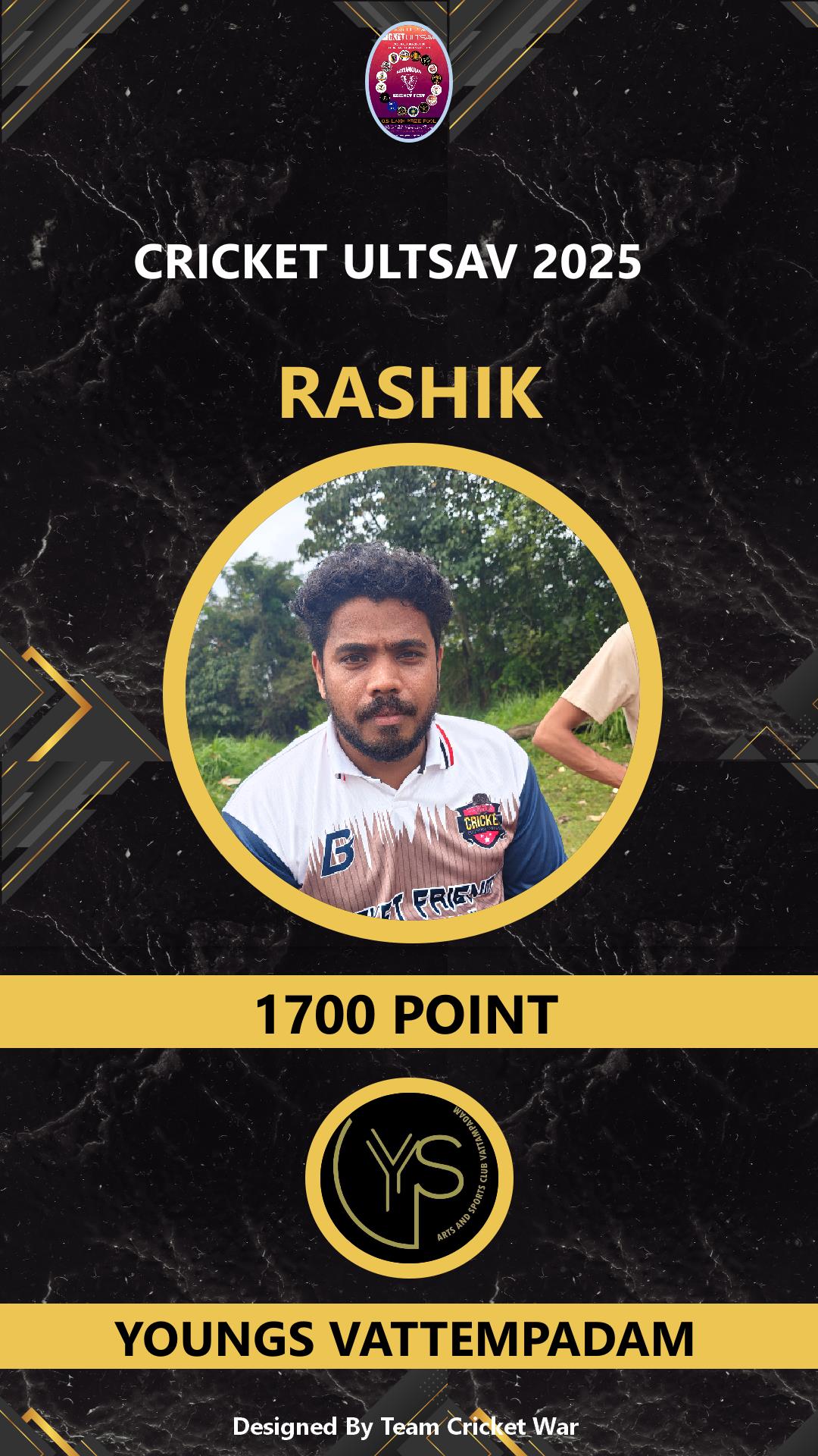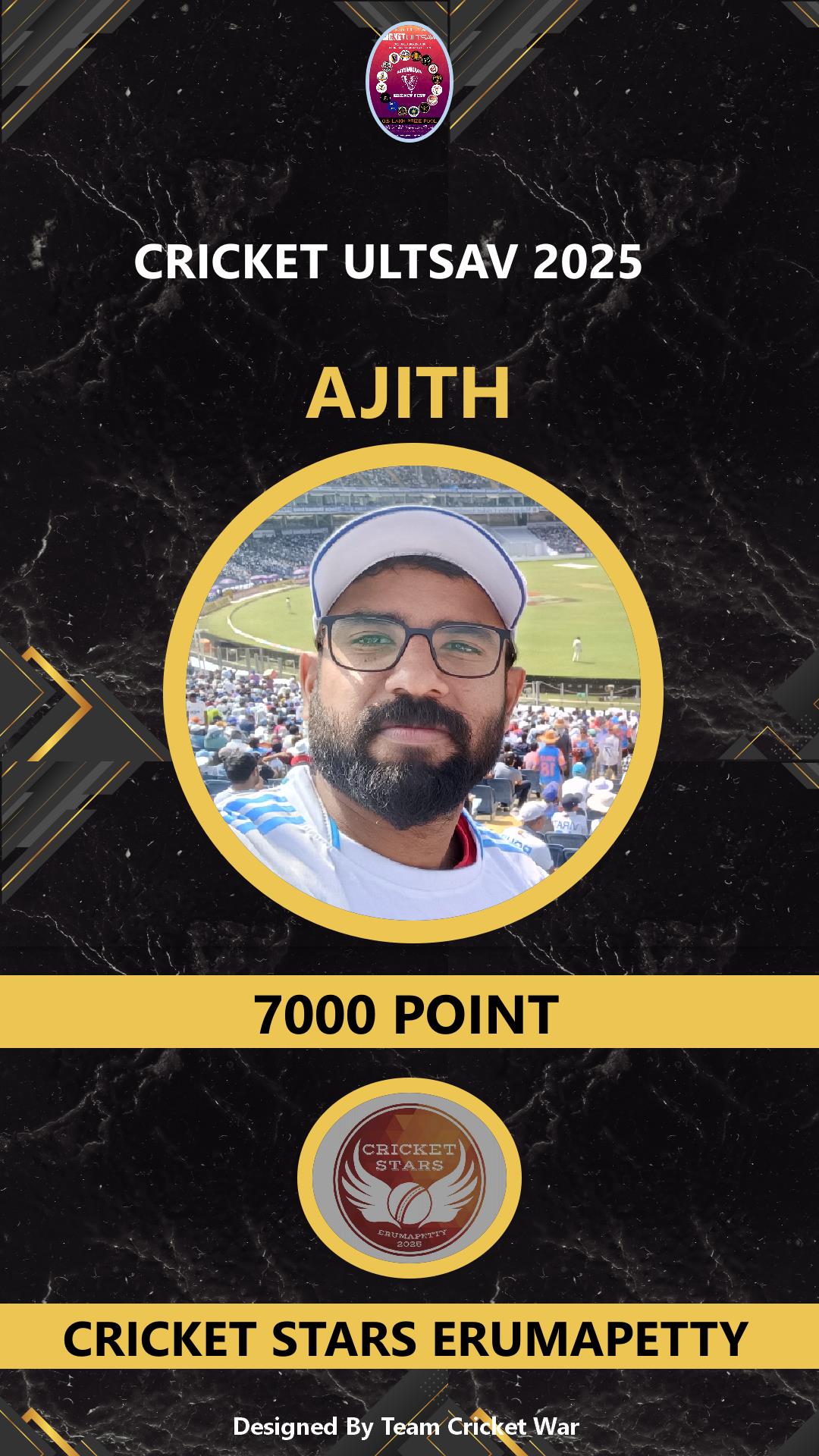ALLROUNDER, AGE : 26 ANJOOR Bid Amount : 1700 Team : CRICKET STARS ERUMAPETTY Download ID Card VIEW PROFILE |