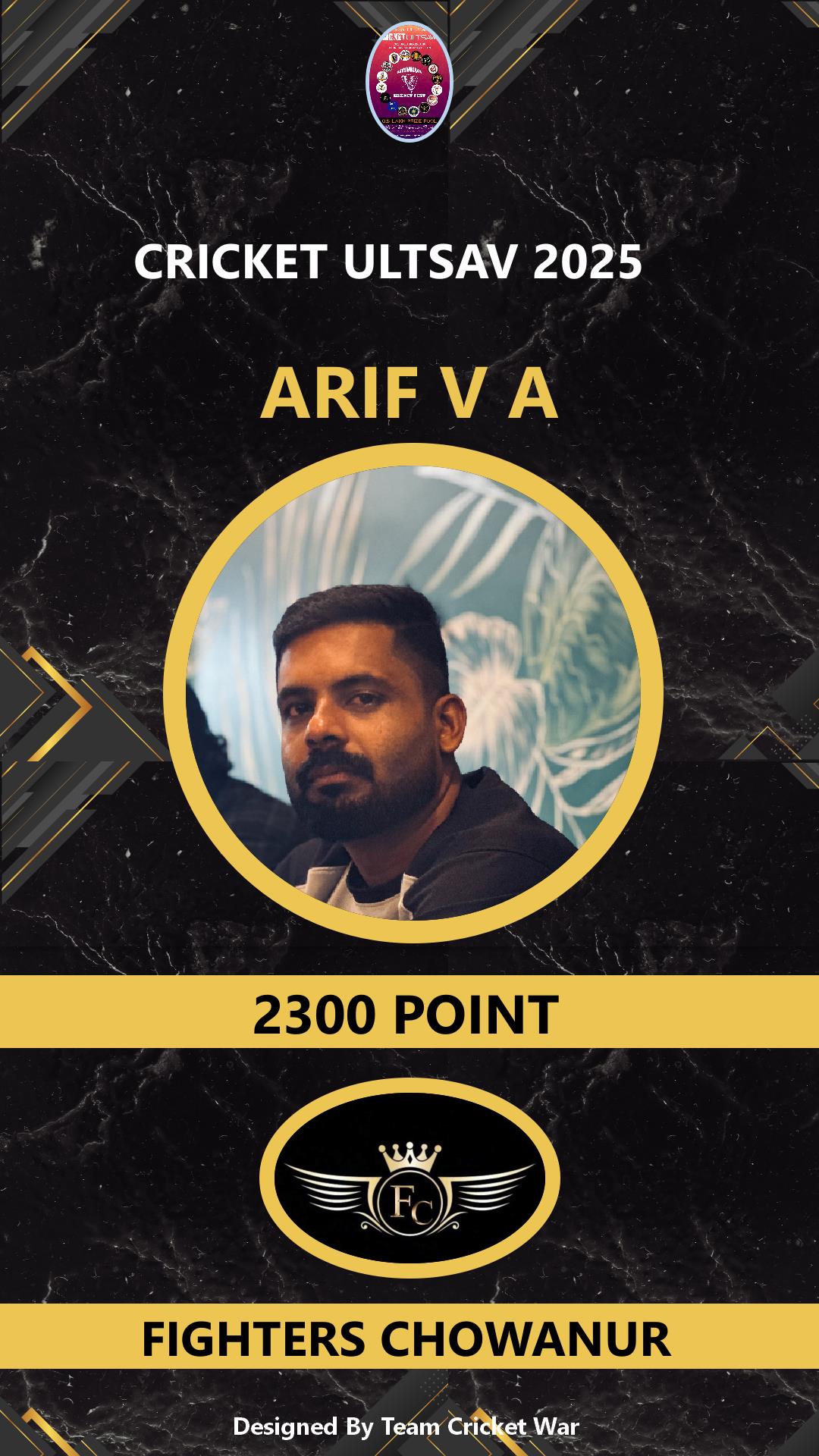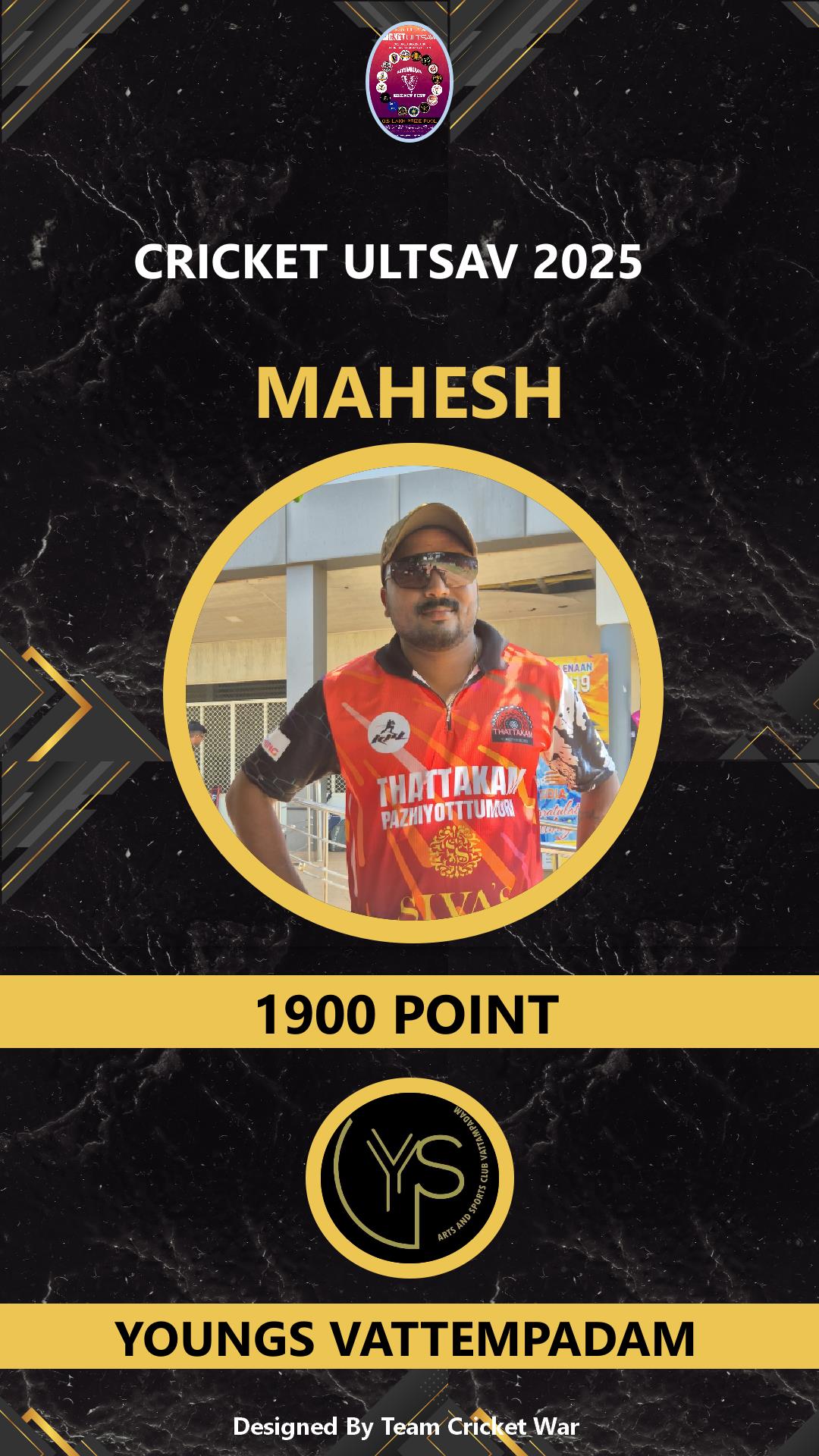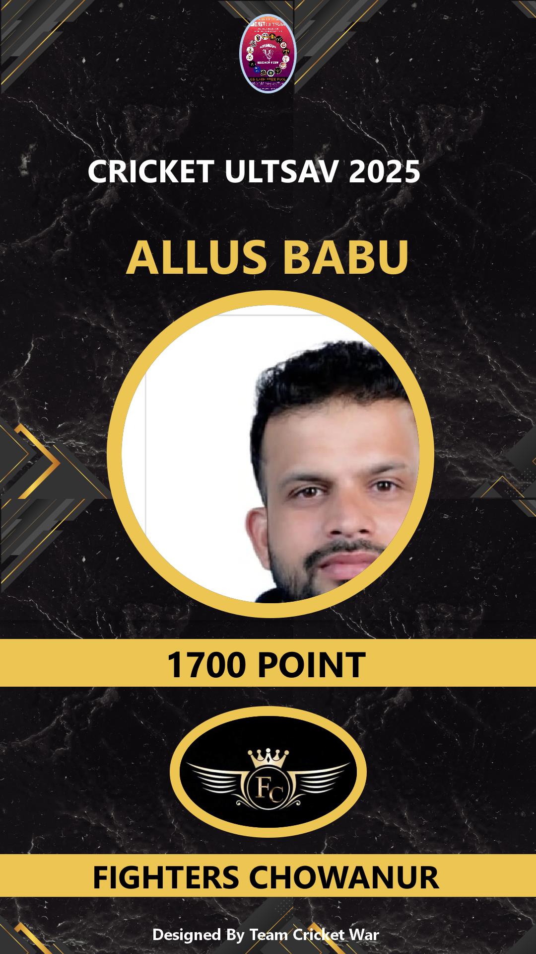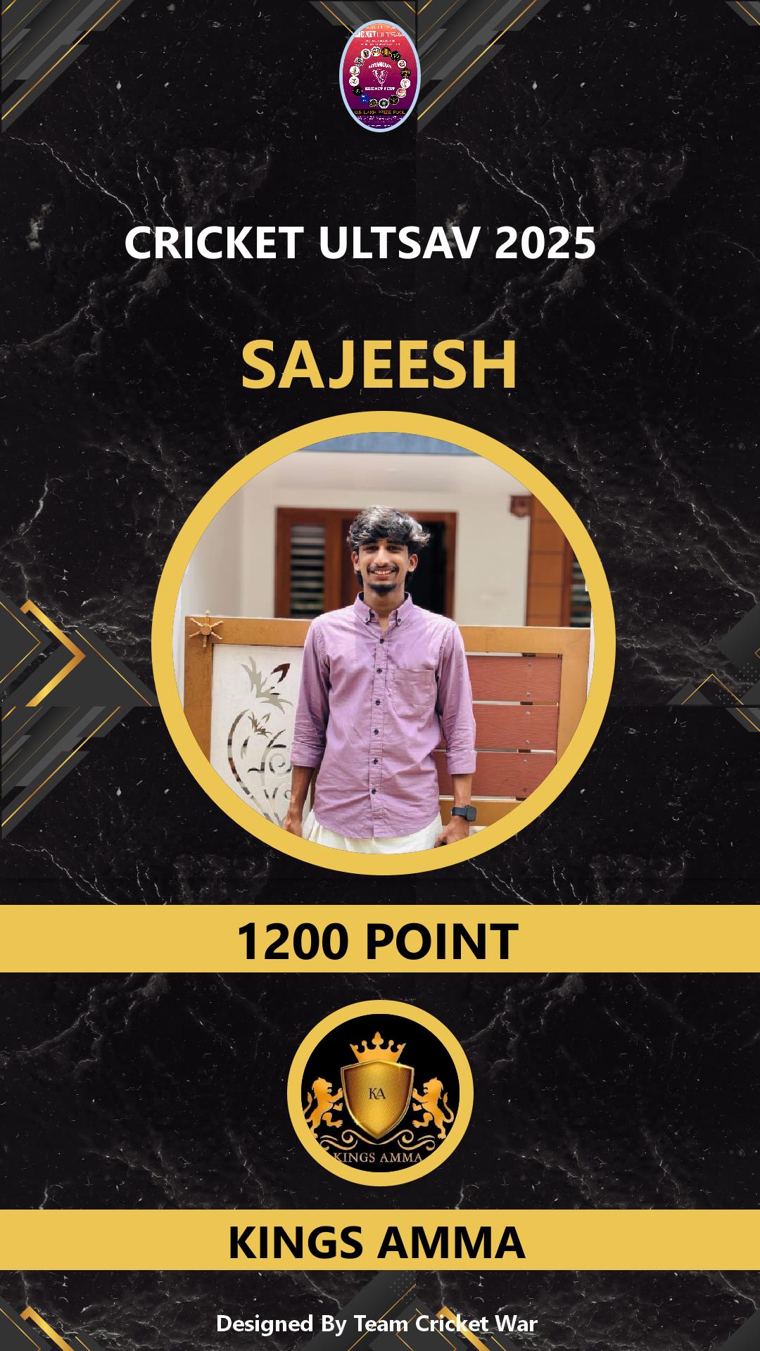 ALLROUNDER, AGE : 26 ANJOOR Bid Amount : 1700 Team : CRICKET STARS ERUMAPETTY Download ID Card VIEW PROFILE |