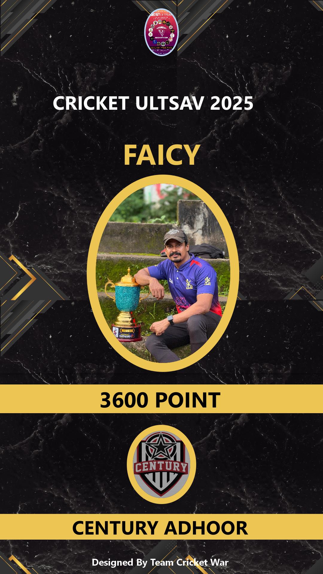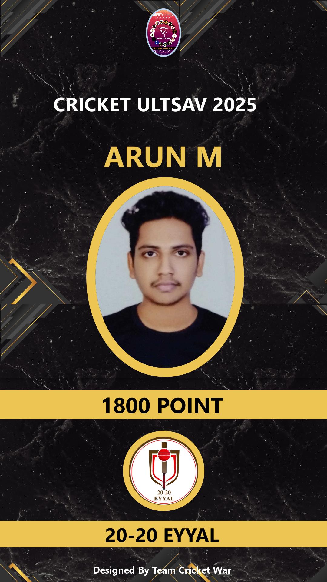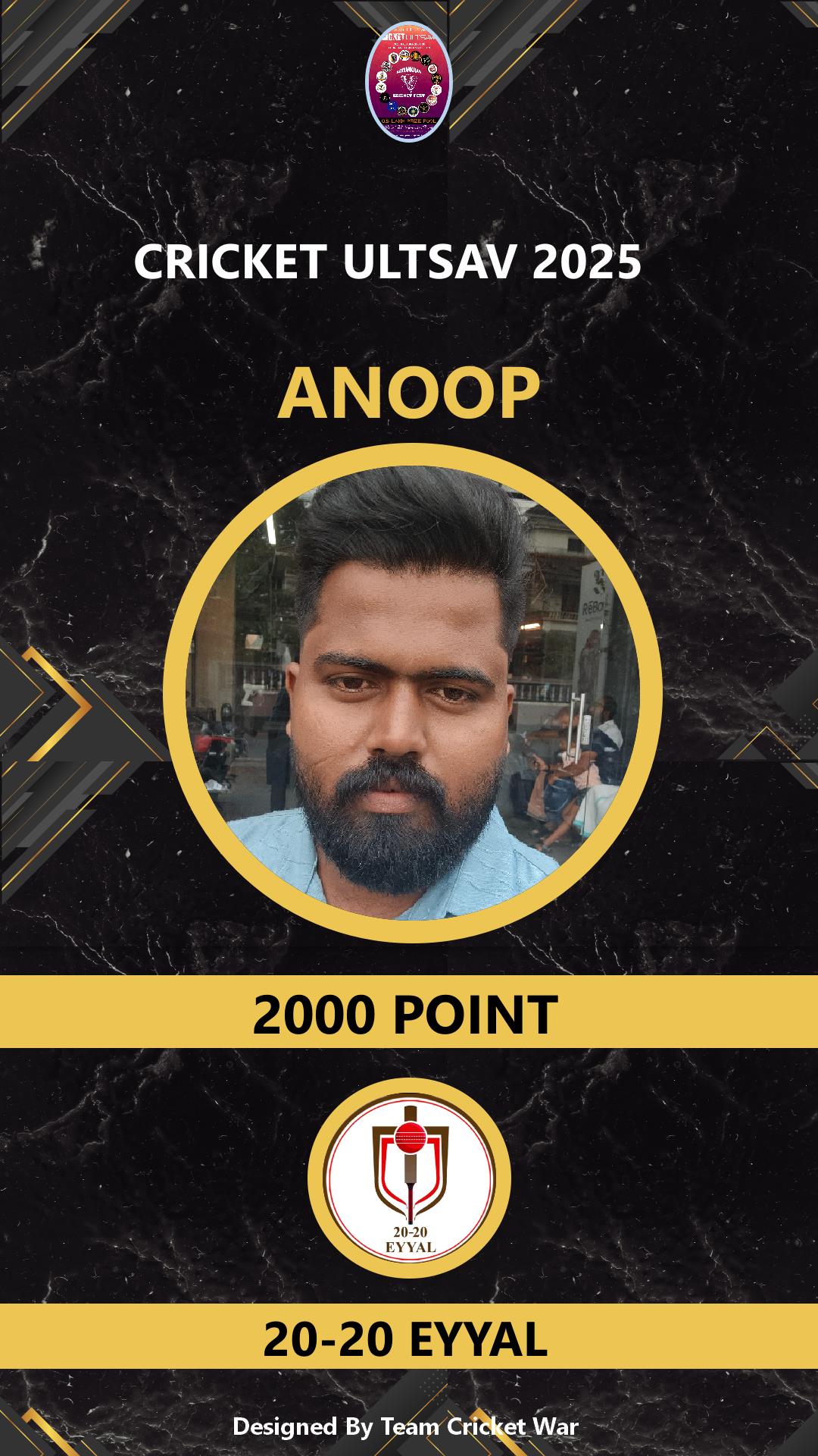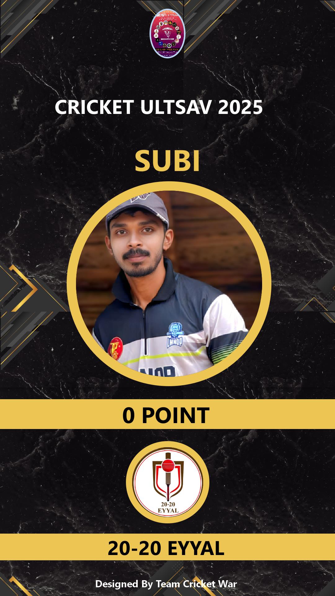 ALLROUNDER, AGE : 30 EYYAL Bid Amount : 1100 Team : CRICKET STARS ERUMAPETTY Download ID Card VIEW PROFILE |
