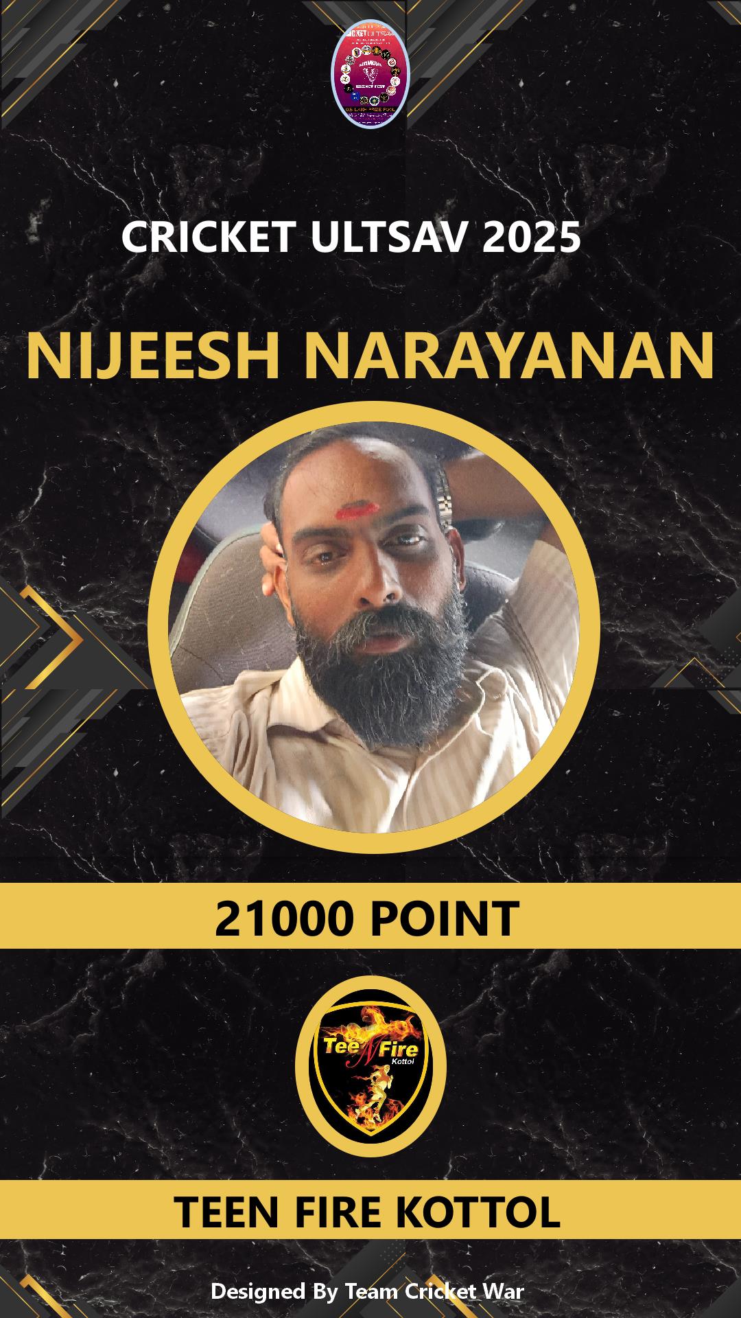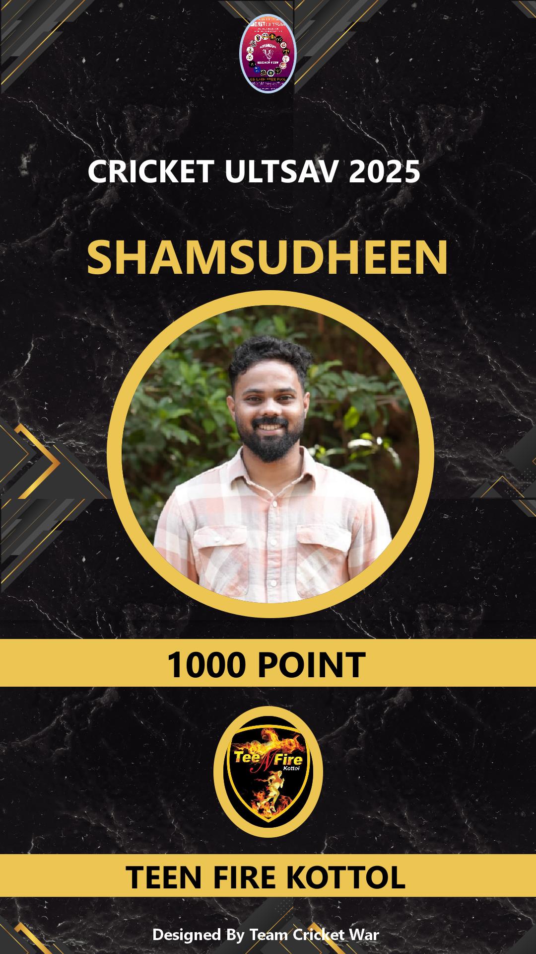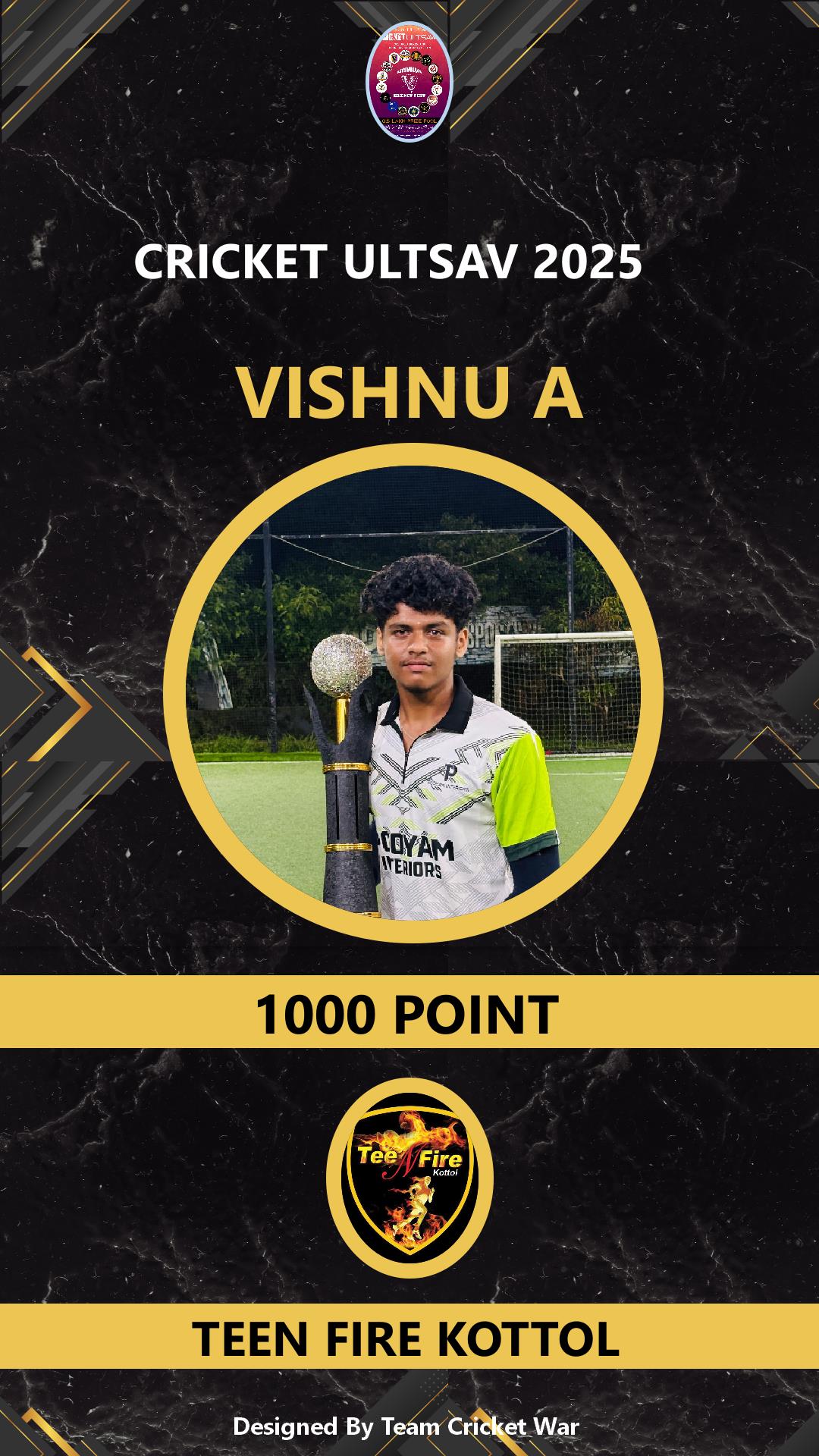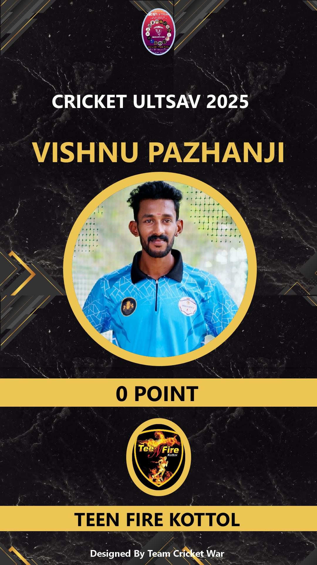 ALLROUNDER, AGE : 29 KARIKKAD Bid Amount : 1000 Team : TEEN FIRE KOTTOL Download ID Card VIEW PROFILE |