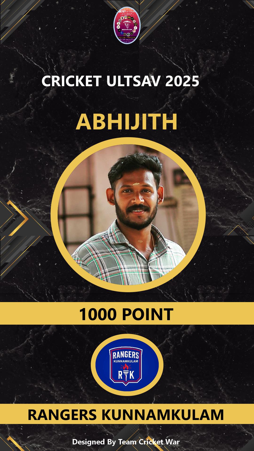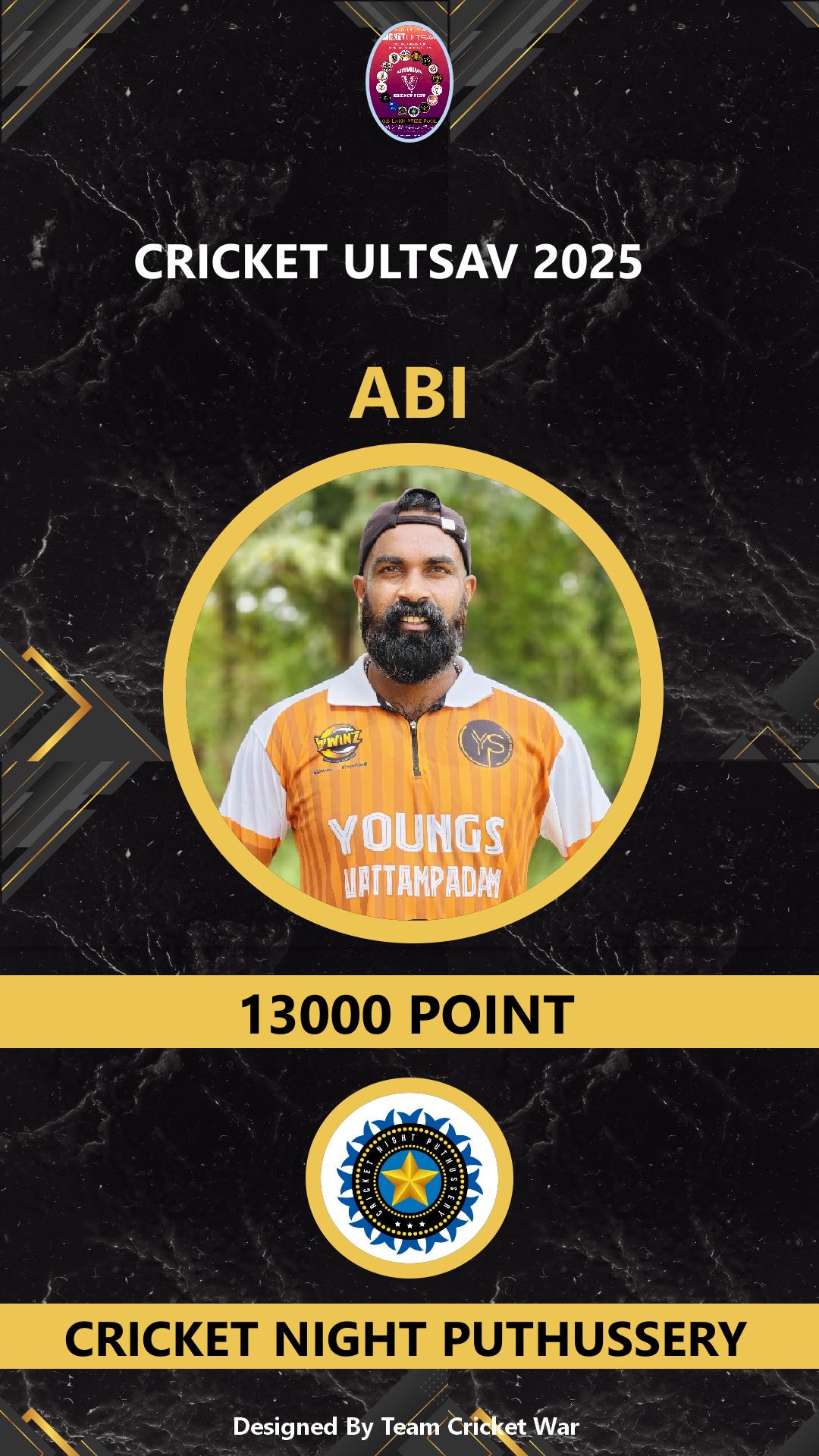 ALLROUNDER, AGE : 33 KUNNAMKULAM Bid Amount : 1300 Team : TEEN FIRE KOTTOL Download ID Card VIEW PROFILE |