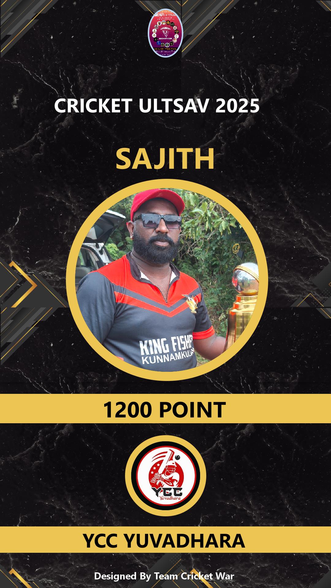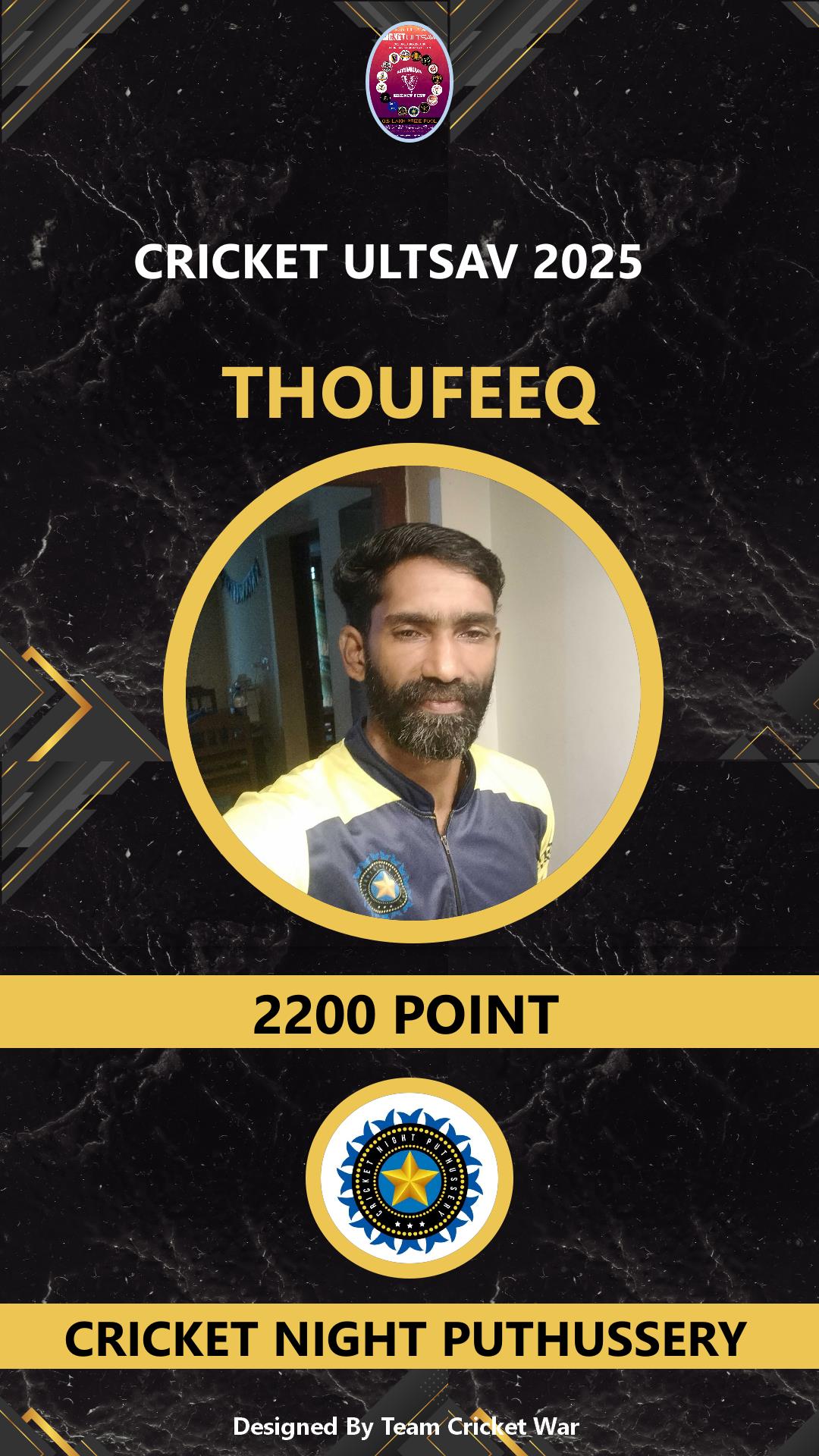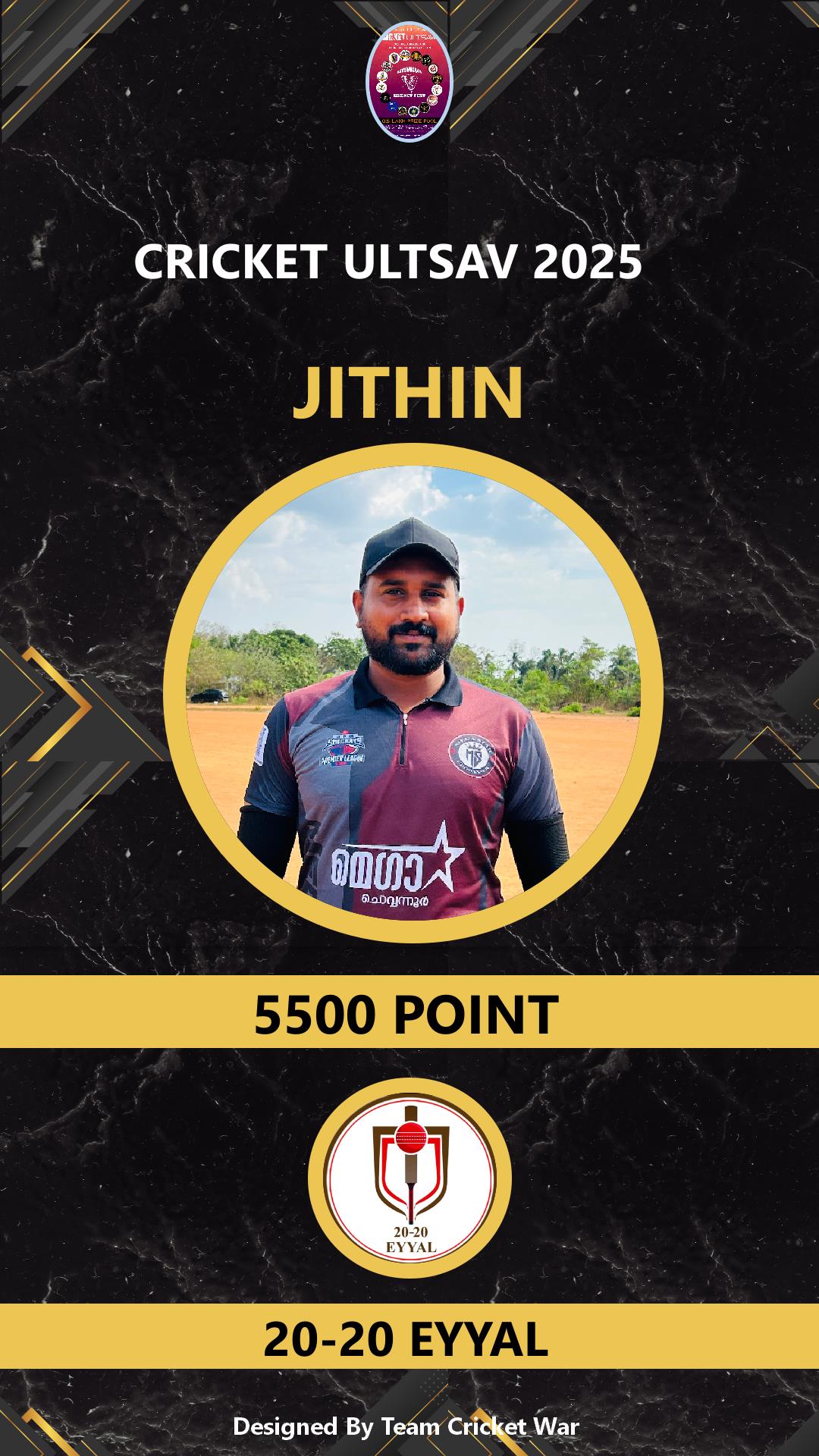 BATTING ALLROUNDER, AGE : 23 THAYYUR Bid Amount : 1200 Team : YOUNGS VATTEMPADAM Download ID Card VIEW PROFILE |