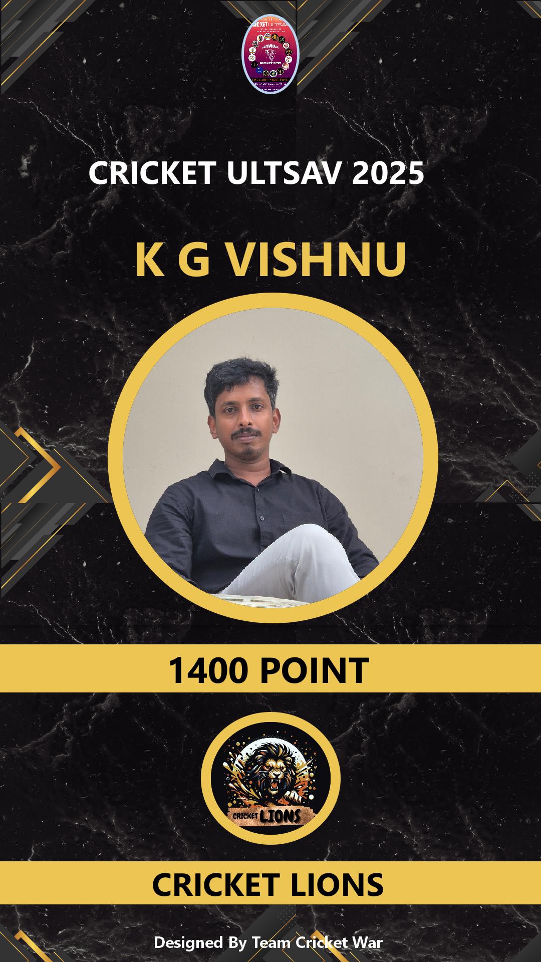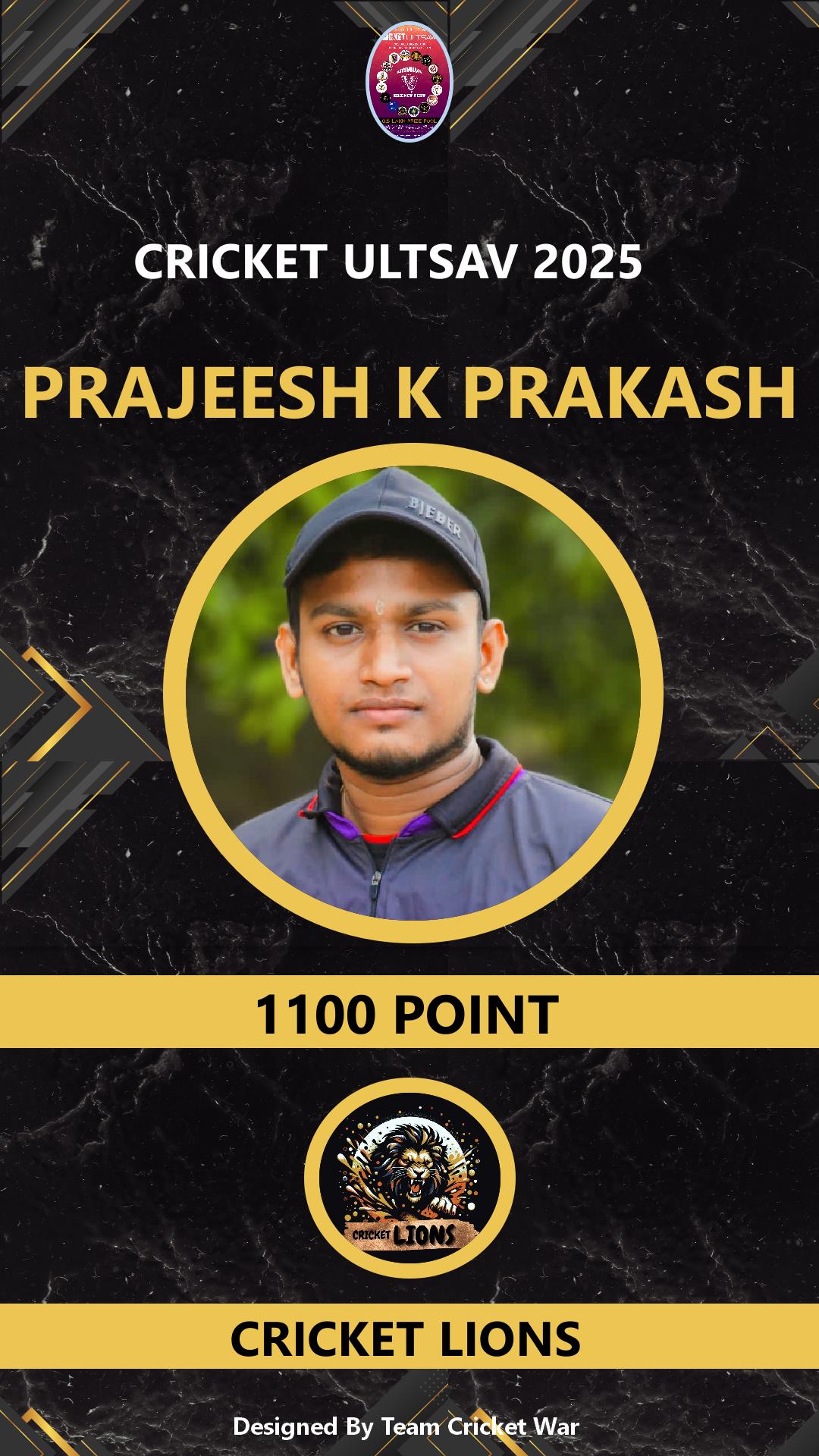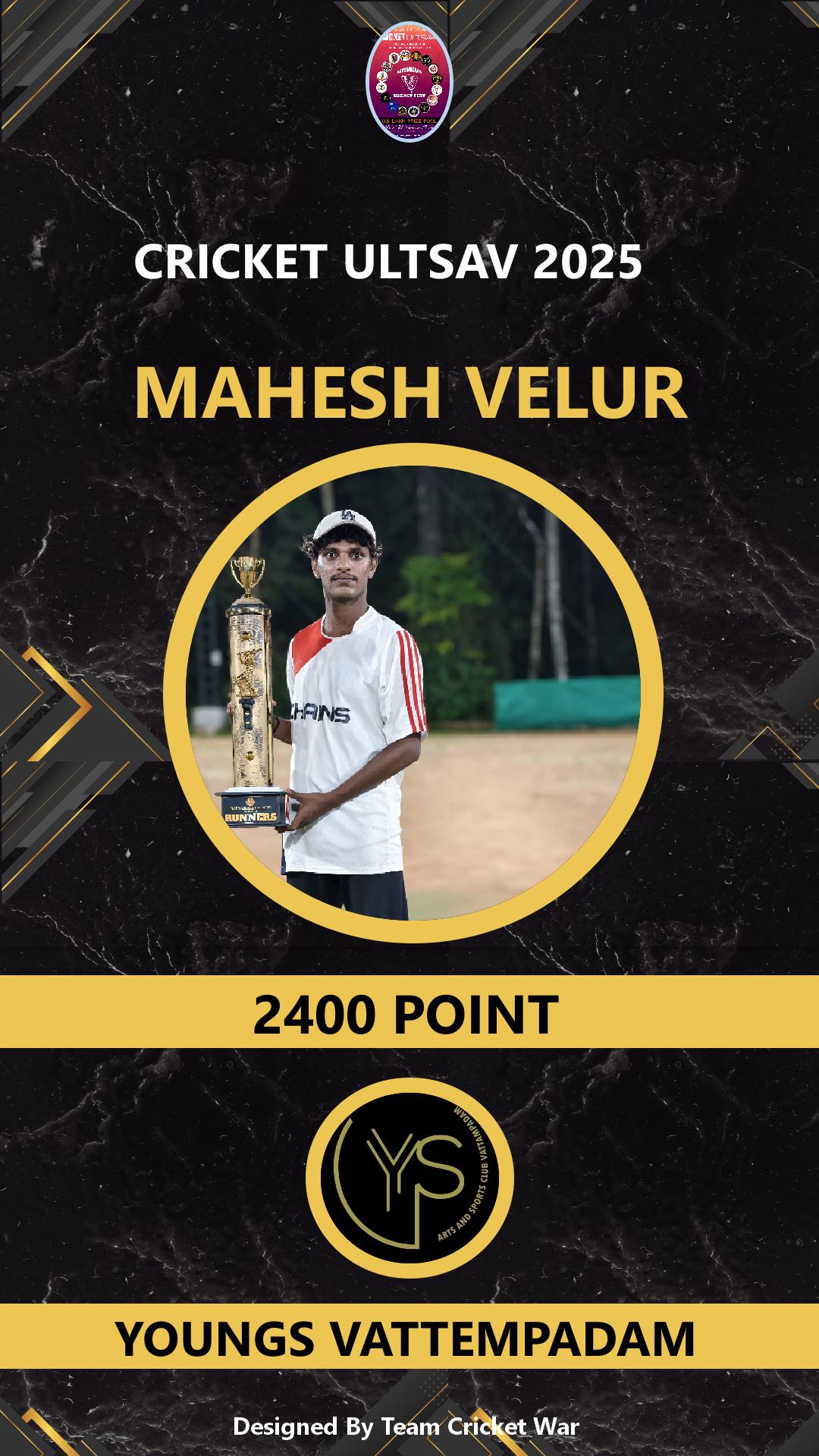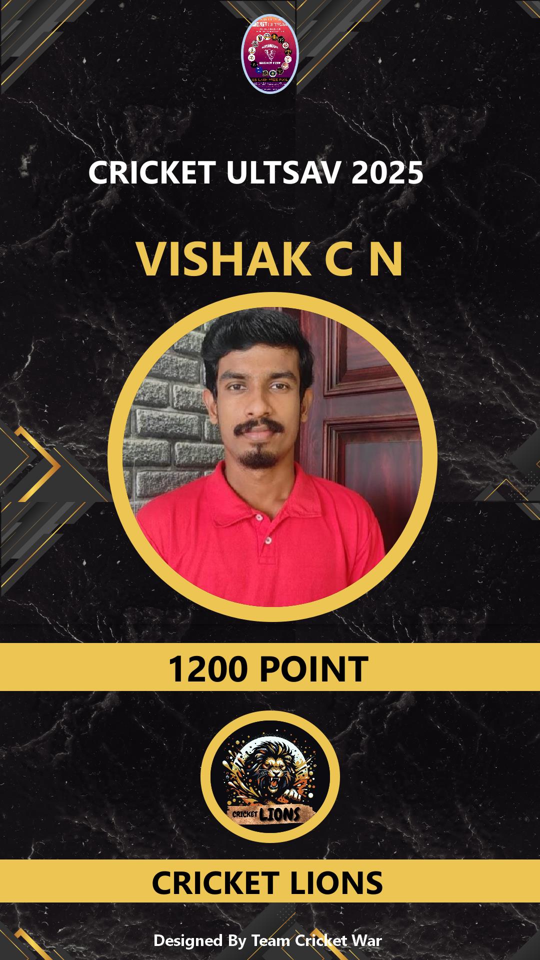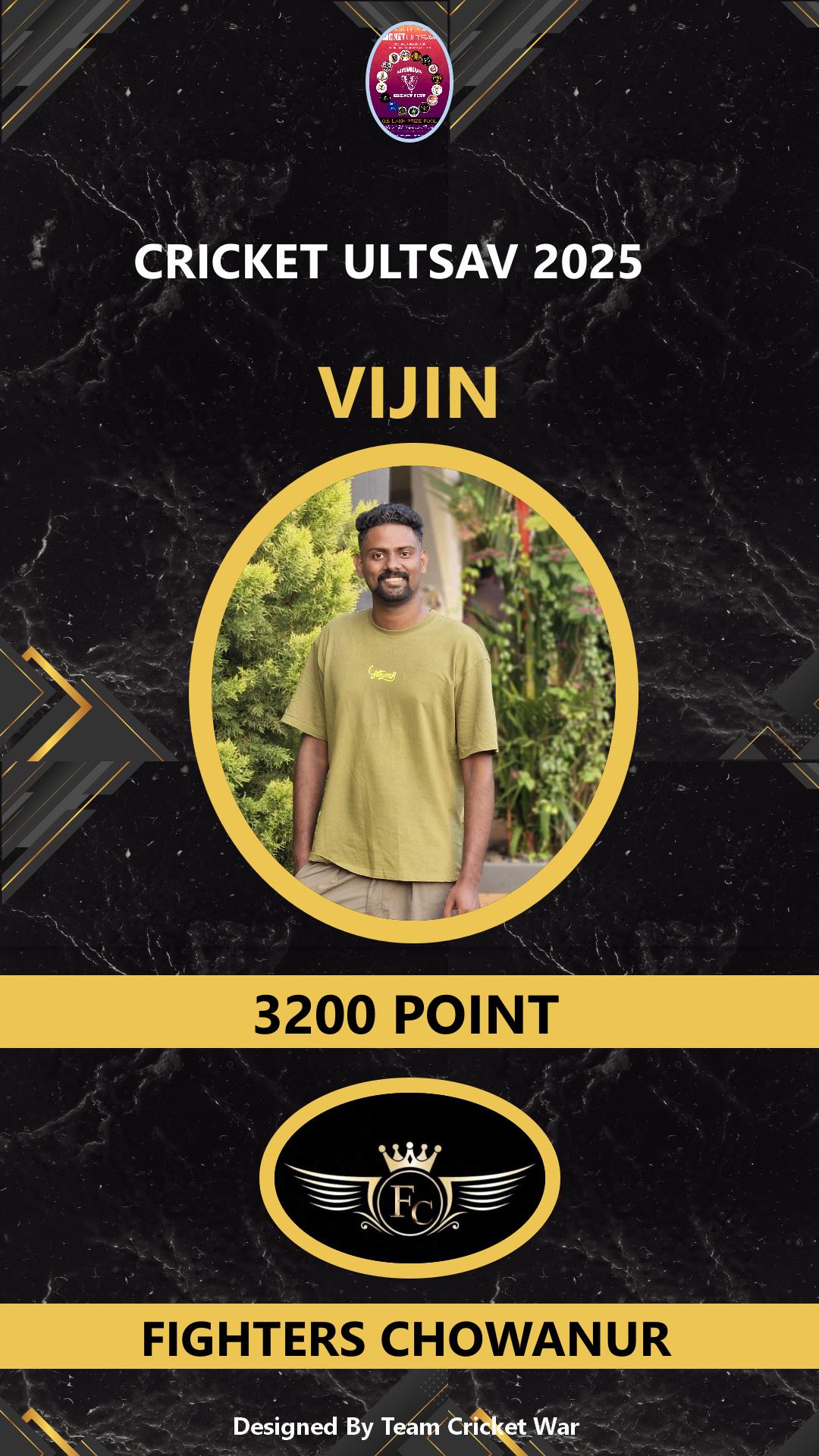 BOWLING ALLROUNDER, AGE : 33 VELUR Bid Amount : 3400 Team : CRICKET LIONS Download ID Card VIEW PROFILE |