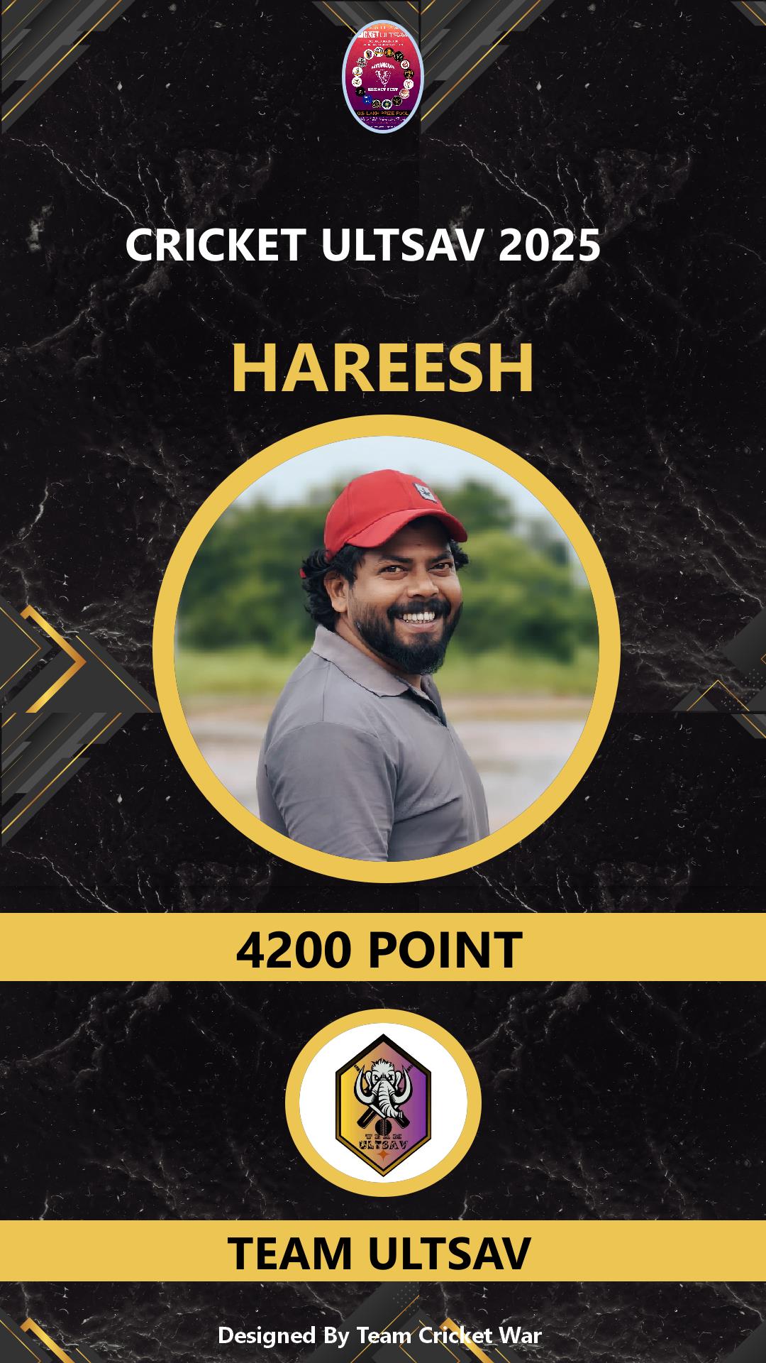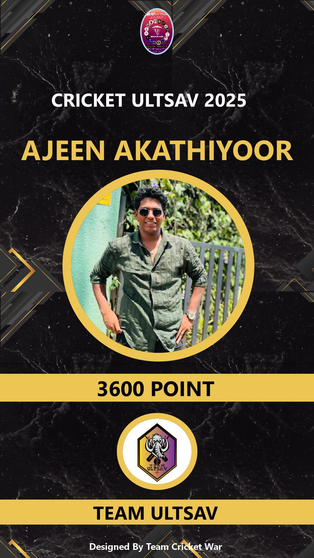 ALLROUNDER, AGE : 34 KOTTOL Bid Amount : 4000 Team : TEAM ULTSAV Download ID Card VIEW PROFILE |