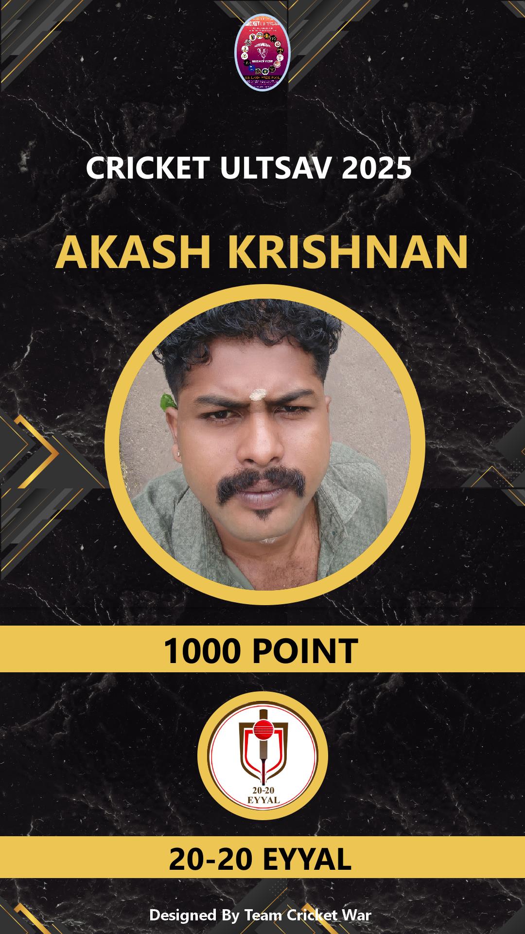 BOWLING ALLROUNDER, AGE : 31 KADAVALLUR Bid Amount : 1000 Team : CRICKET STARS ERUMAPETTY Download ID Card VIEW PROFILE |