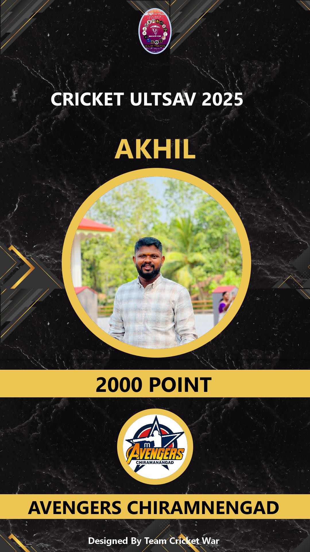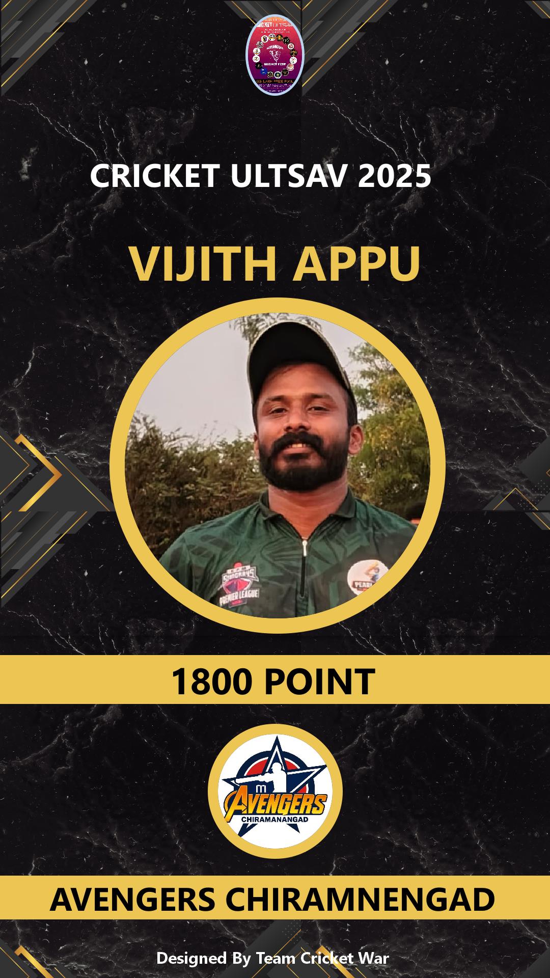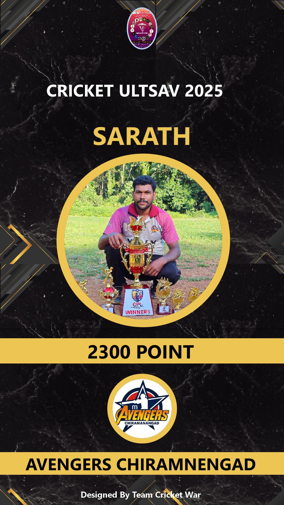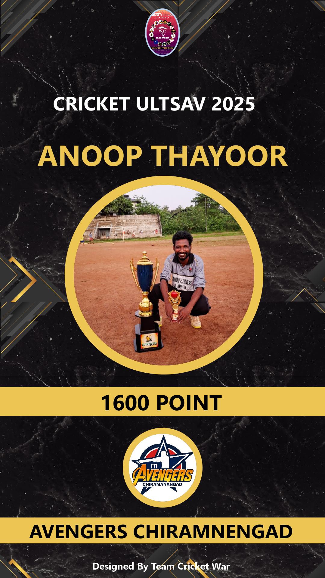ALLROUNDER, AGE : 32 PANNITHADAM Bid Amount : 2000 Team : AVENGERS CHIRAMNENGAD Download ID Card VIEW PROFILE |