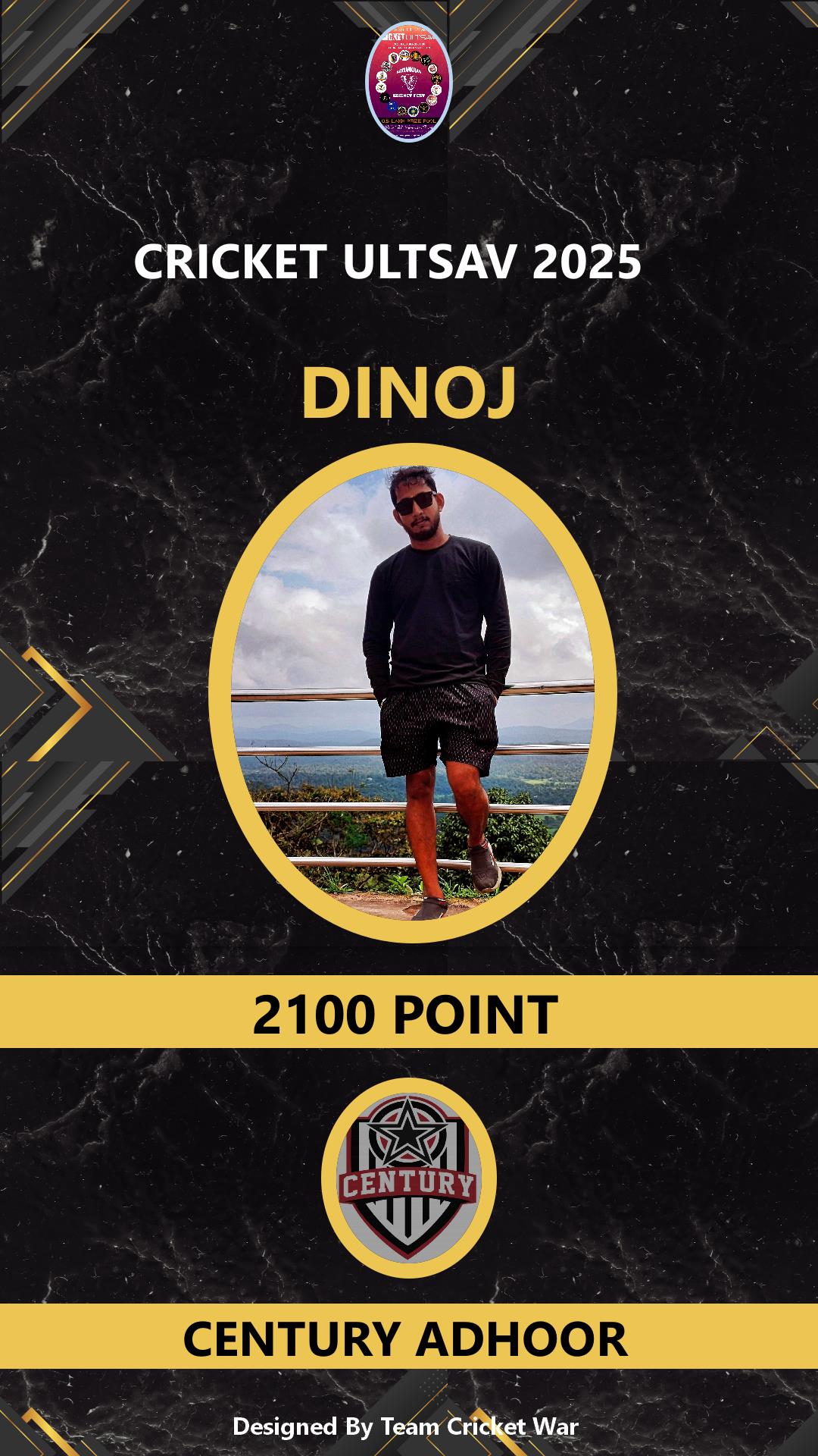 BATSMAN, AGE : 40 ADHOOR Bid Amount : 1100 Team : CENTURY ADHOOR Download ID Card VIEW PROFILE |