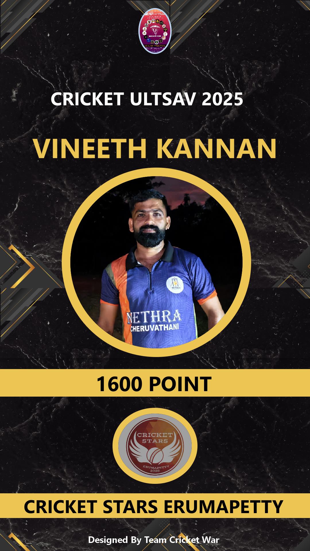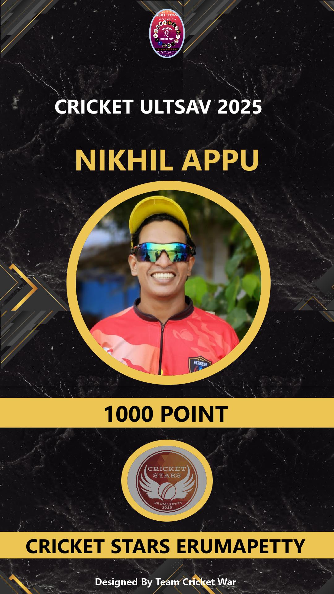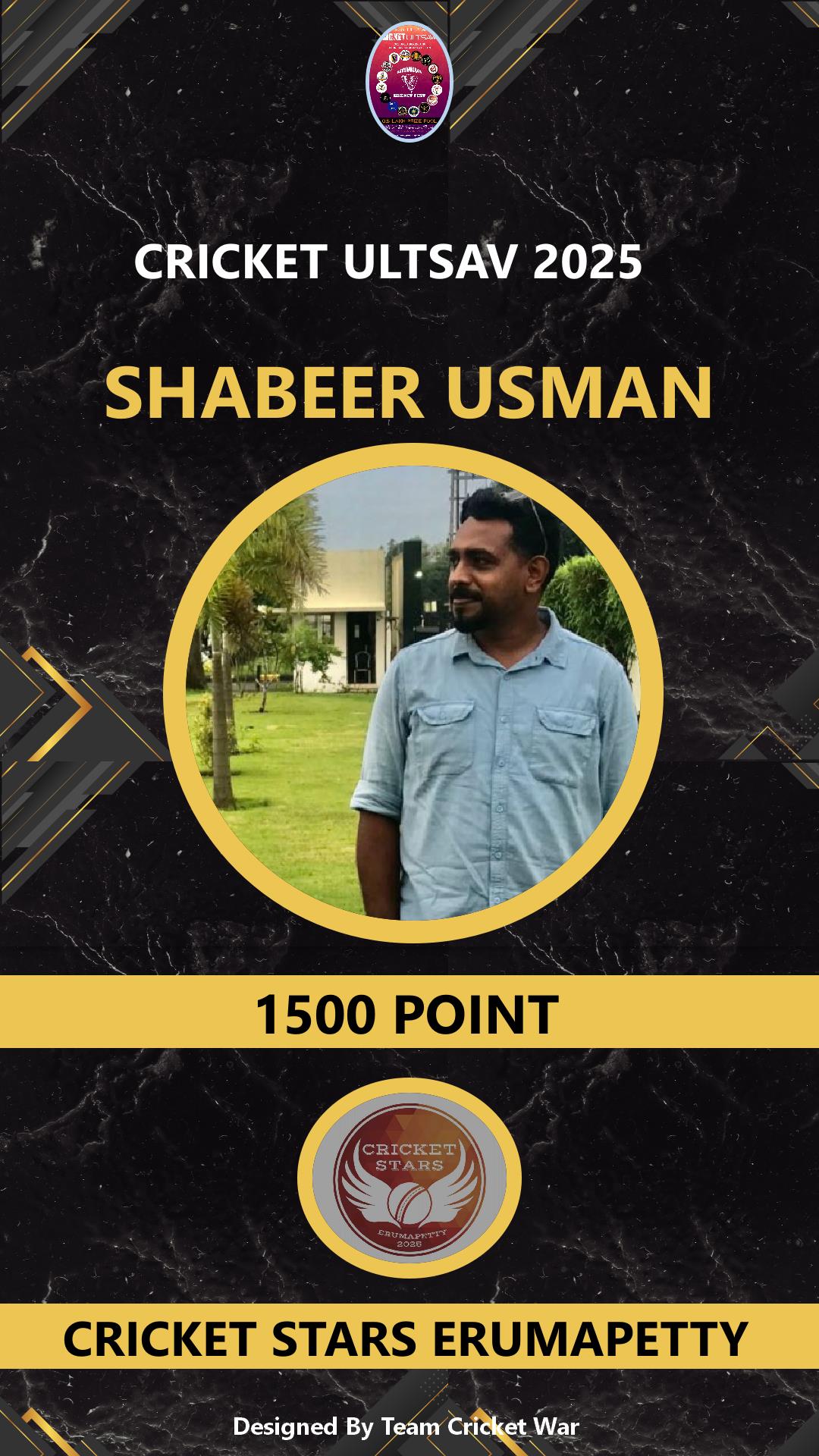 ALLROUNDER, AGE : 33 ERUMAPETTY Bid Amount : 1200 Team : CRICKET STARS ERUMAPETTY Download ID Card VIEW PROFILE |