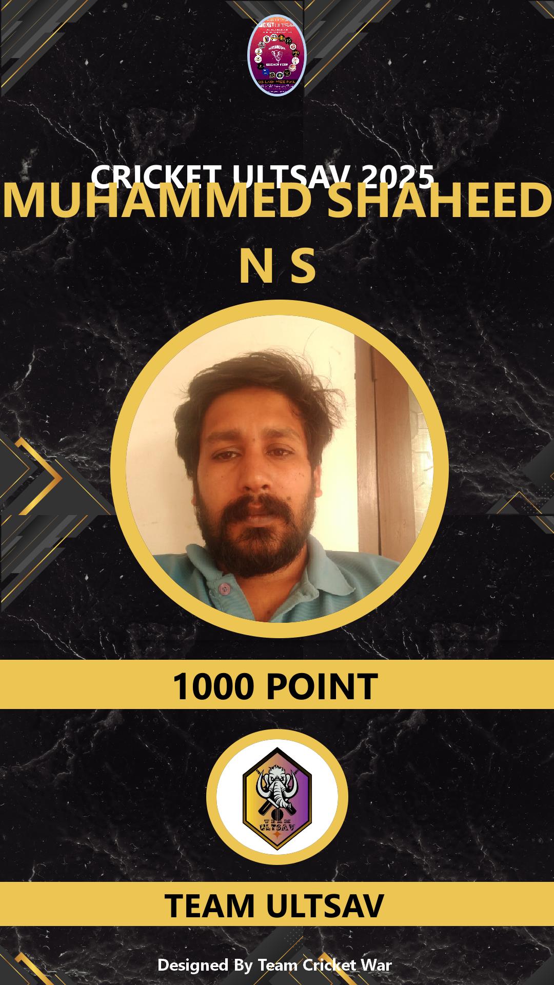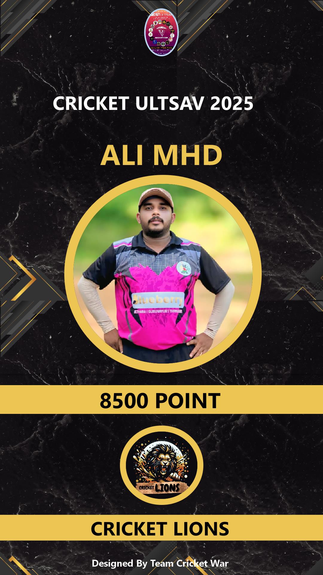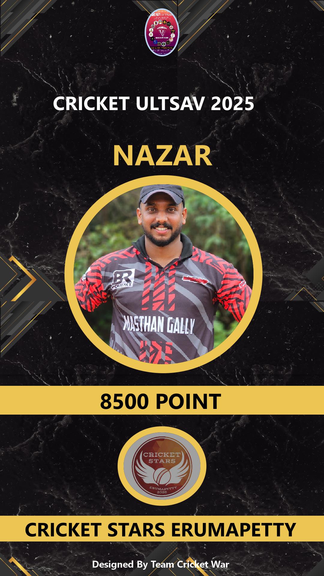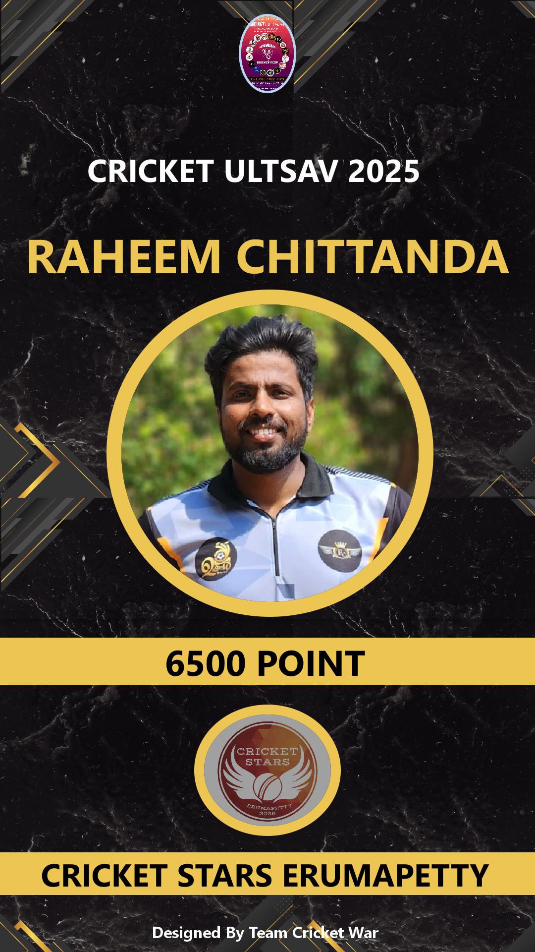 ALLROUNDER, AGE : 33 ERUMAPETTY Bid Amount : 1200 Team : CRICKET STARS ERUMAPETTY Download ID Card VIEW PROFILE |