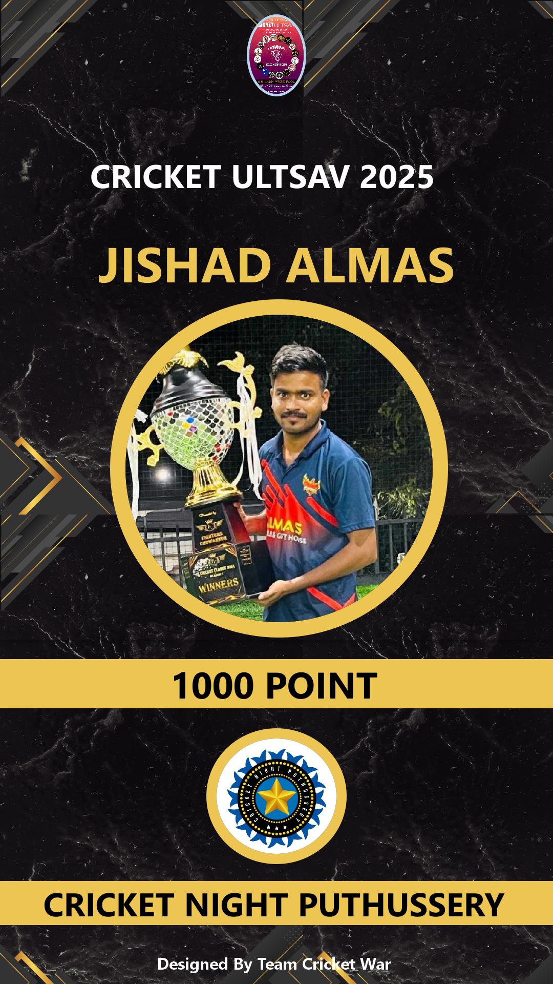 BATTING ALLROUNDER, AGE : 31 KADANGODE Bid Amount : 5500 Team : CRICKET NIGHT PUTHUSSERY Download ID Card VIEW PROFILE |