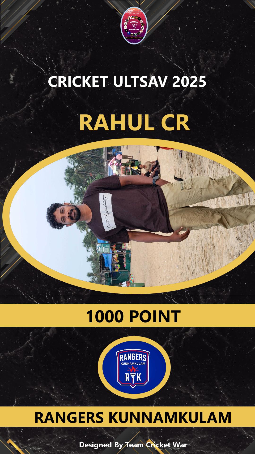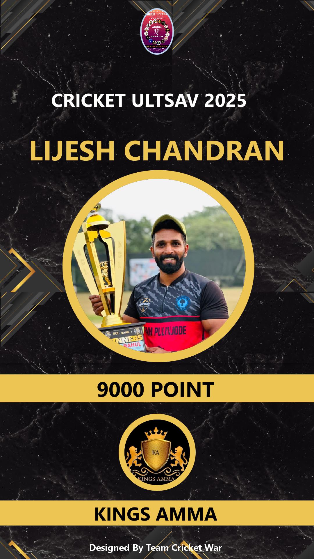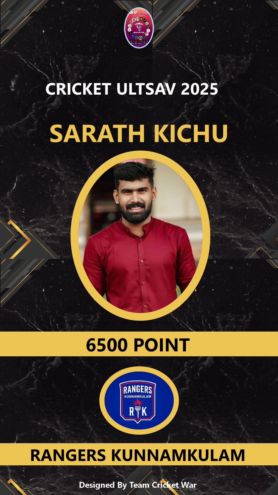 ALLROUNDER, AGE : 33 KUNNAMKULAM Bid Amount : 1000 Team : CRICKET LIONS Download ID Card VIEW PROFILE |