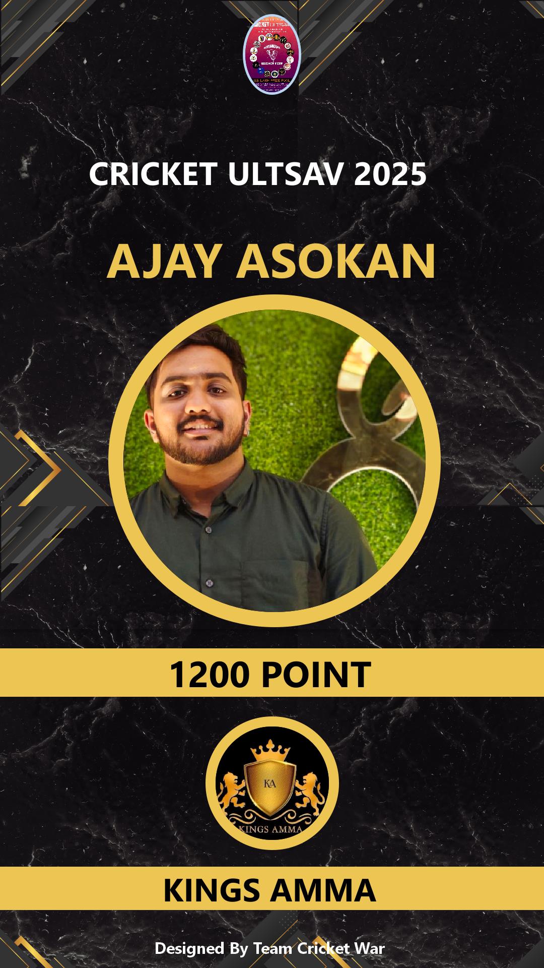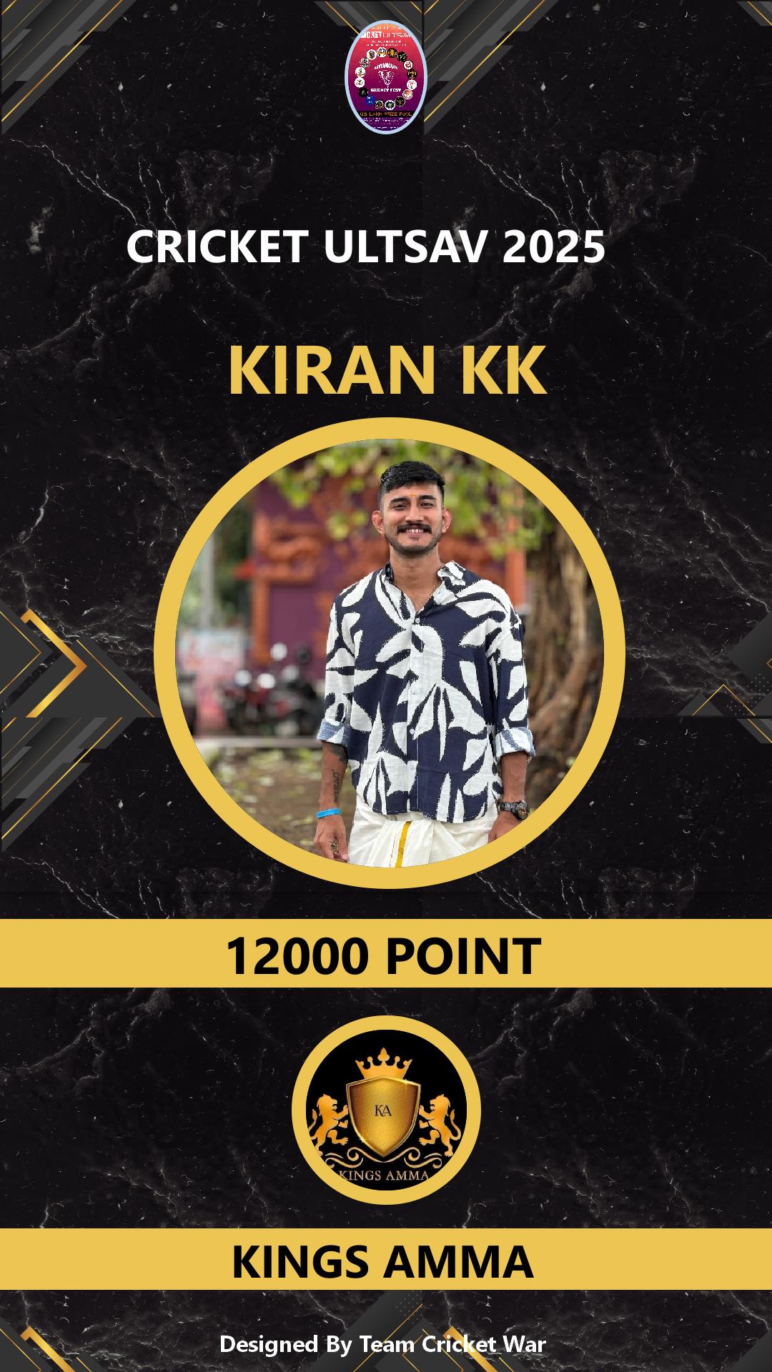 ALLROUNDER, AGE : 33 PORKULAM Bid Amount : 1600 Team : KINGS AMMA Download ID Card VIEW PROFILE |