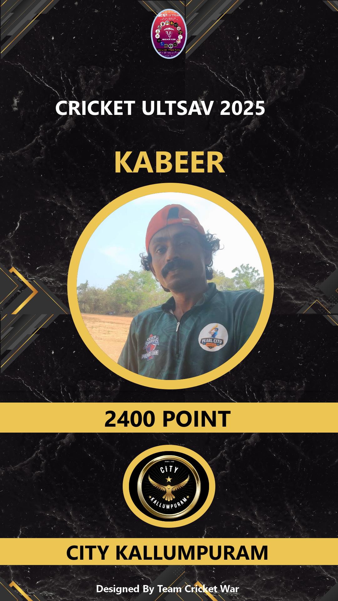 ALLROUNDER, AGE : 35 KOTTOL Bid Amount : 3200 Team : CITY KALLUMPURAM Download ID Card VIEW PROFILE |