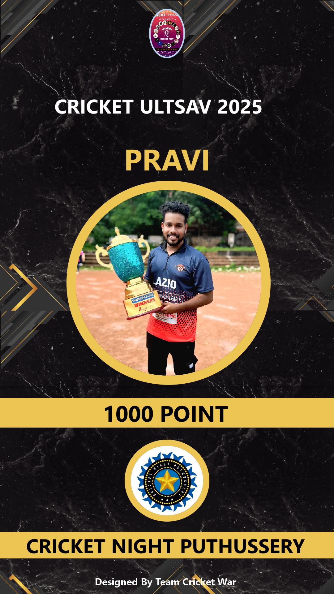 ALLROUNDER, AGE : 39 PUTHUSSERI Bid Amount : 1000 Team : CRICKET NIGHT PUTHUSSERY Download ID Card VIEW PROFILE |