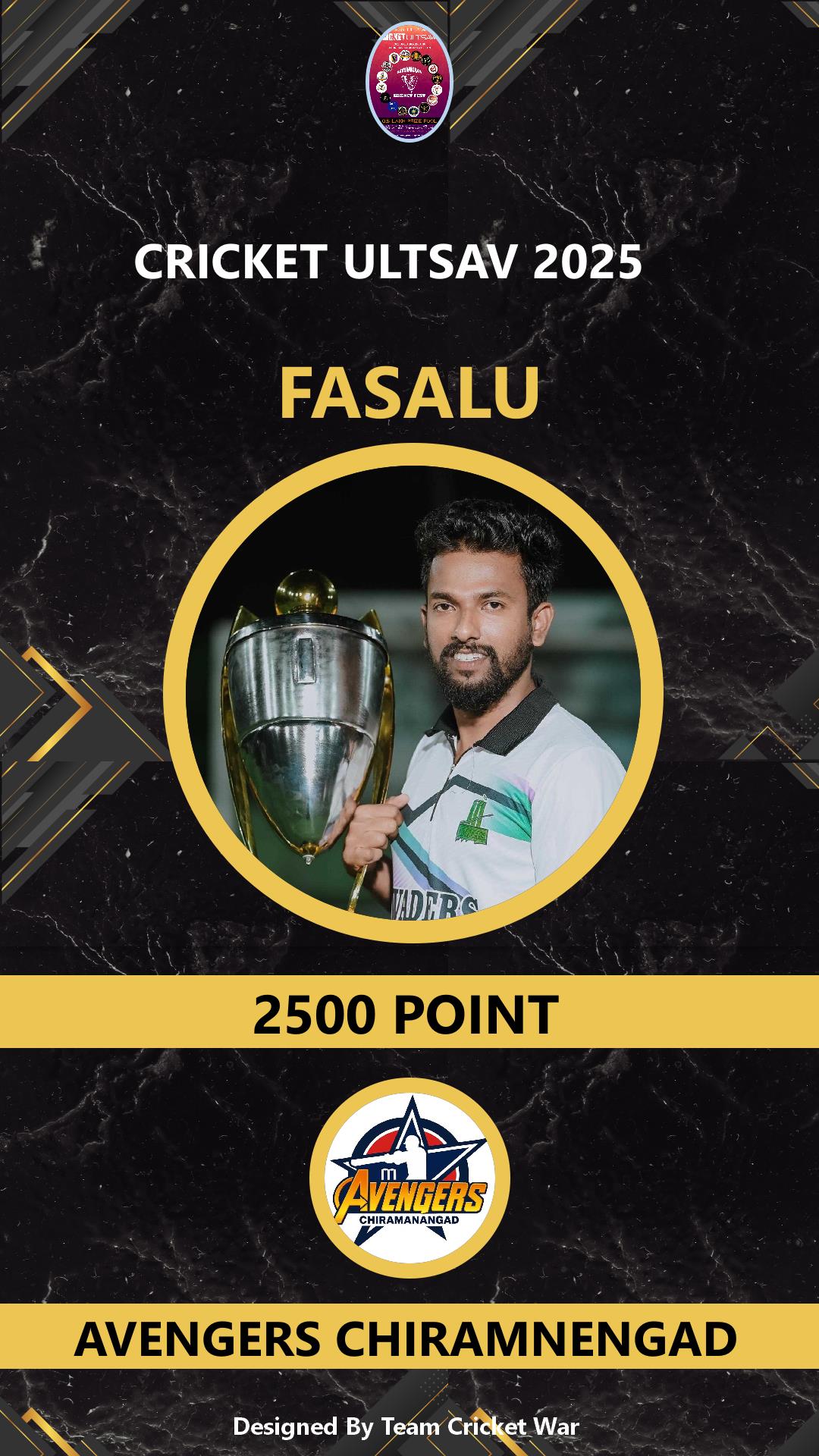 BATSMAN, AGE : 28 CHIRAMANANGAD Bid Amount : 3400 Team : AVENGERS CHIRAMNENGAD Download ID Card VIEW PROFILE |