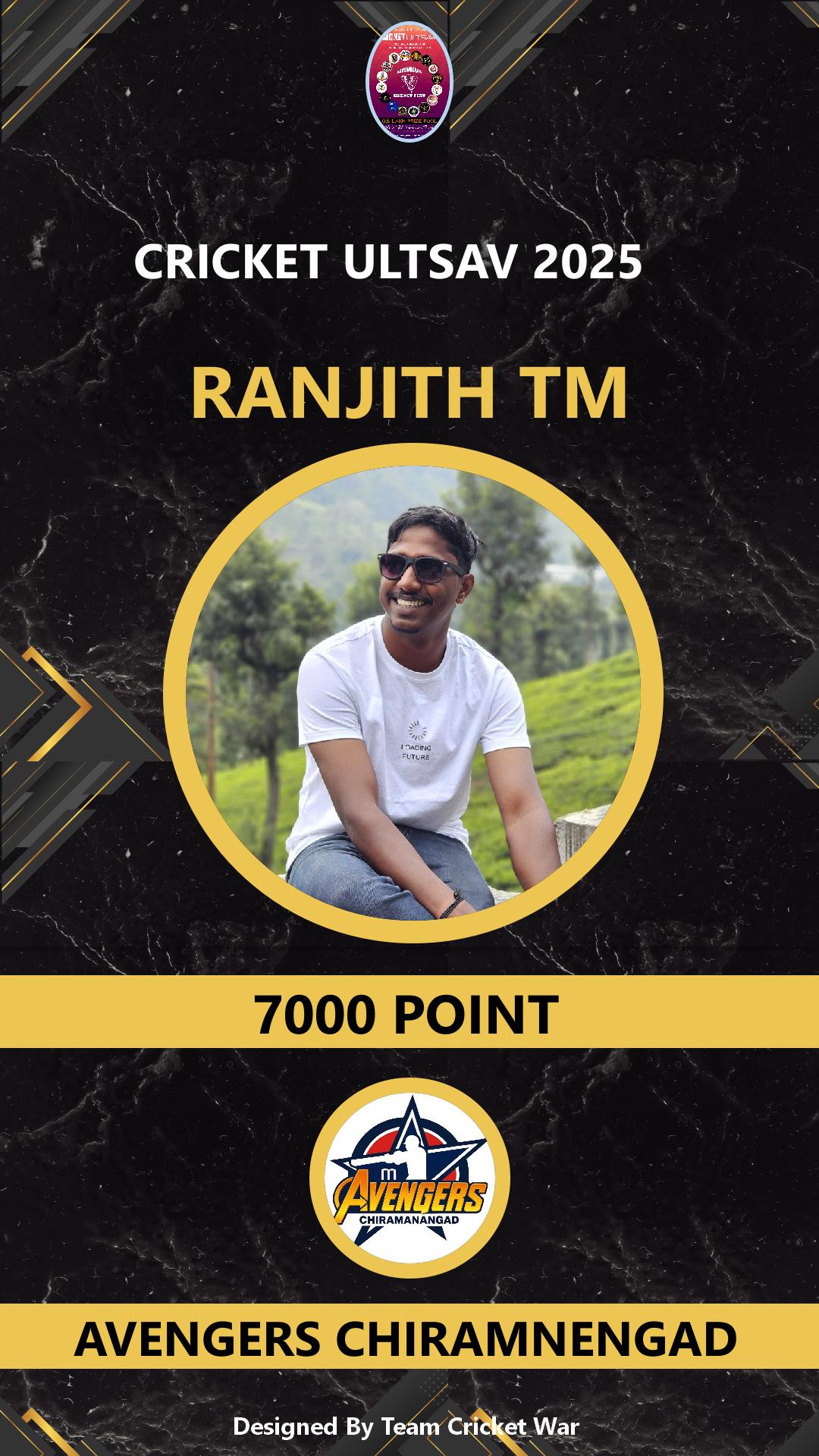 ALLROUNDER, AGE : 31 VELUR Bid Amount : 7000 Team : AVENGERS CHIRAMNENGAD Download ID Card VIEW PROFILE |