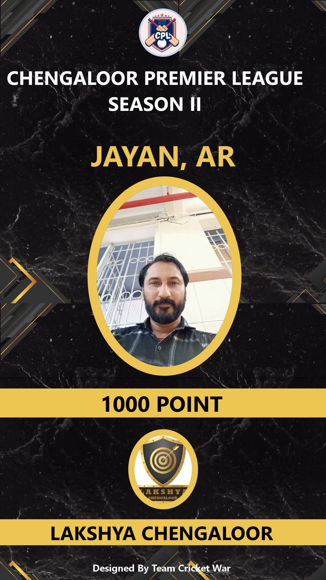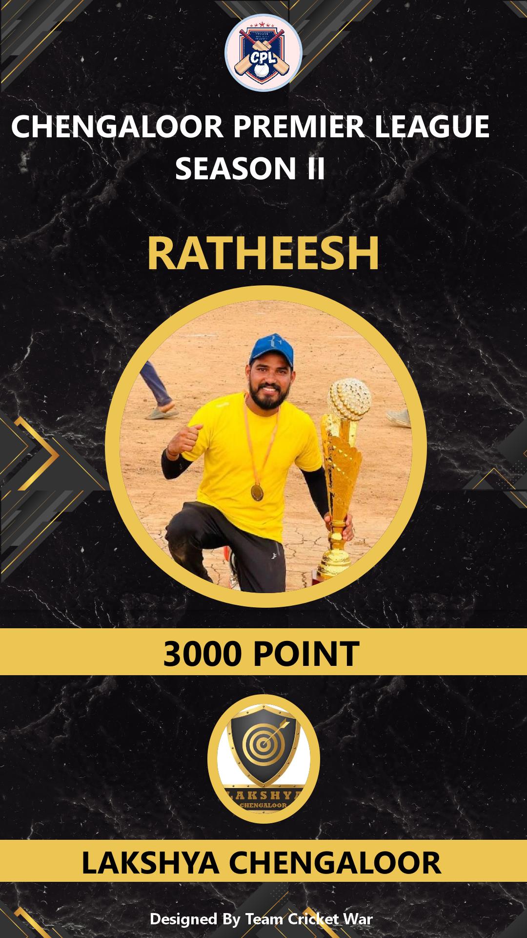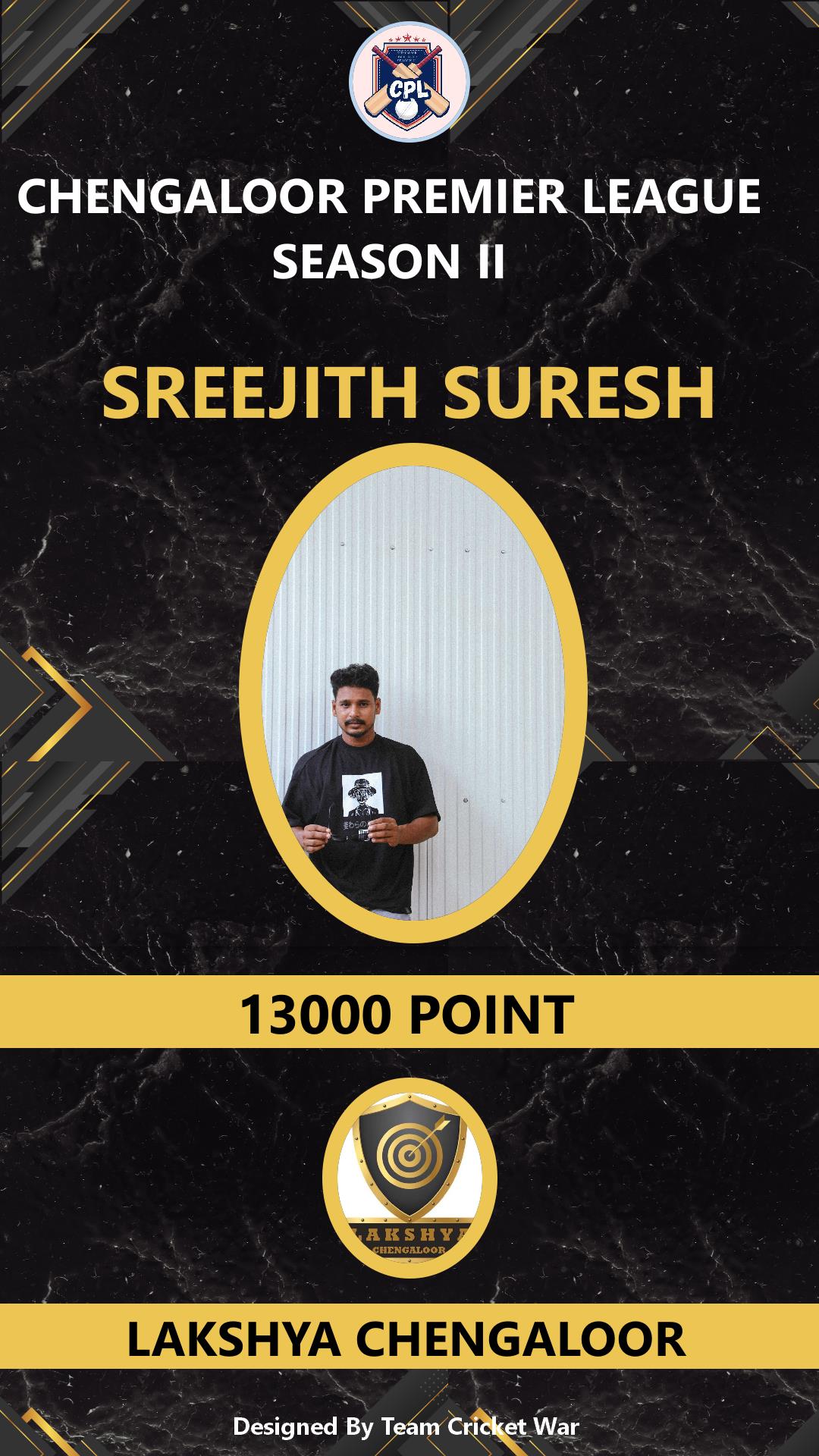 BATSMAN, AGE : 35 CHENGALOOR Bid Amount : 3000 Team : LAKSHYA CHENGALOOR Download ID Card VIEW PROFILE |