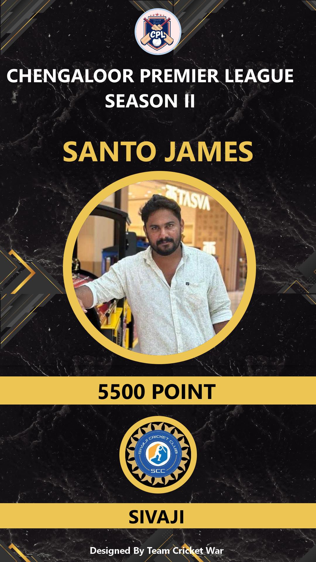 ALLROUNDER, AGE : 36 CHENGALOOR Bid Amount : 5500 Team : SIVAJI Download ID Card VIEW PROFILE |