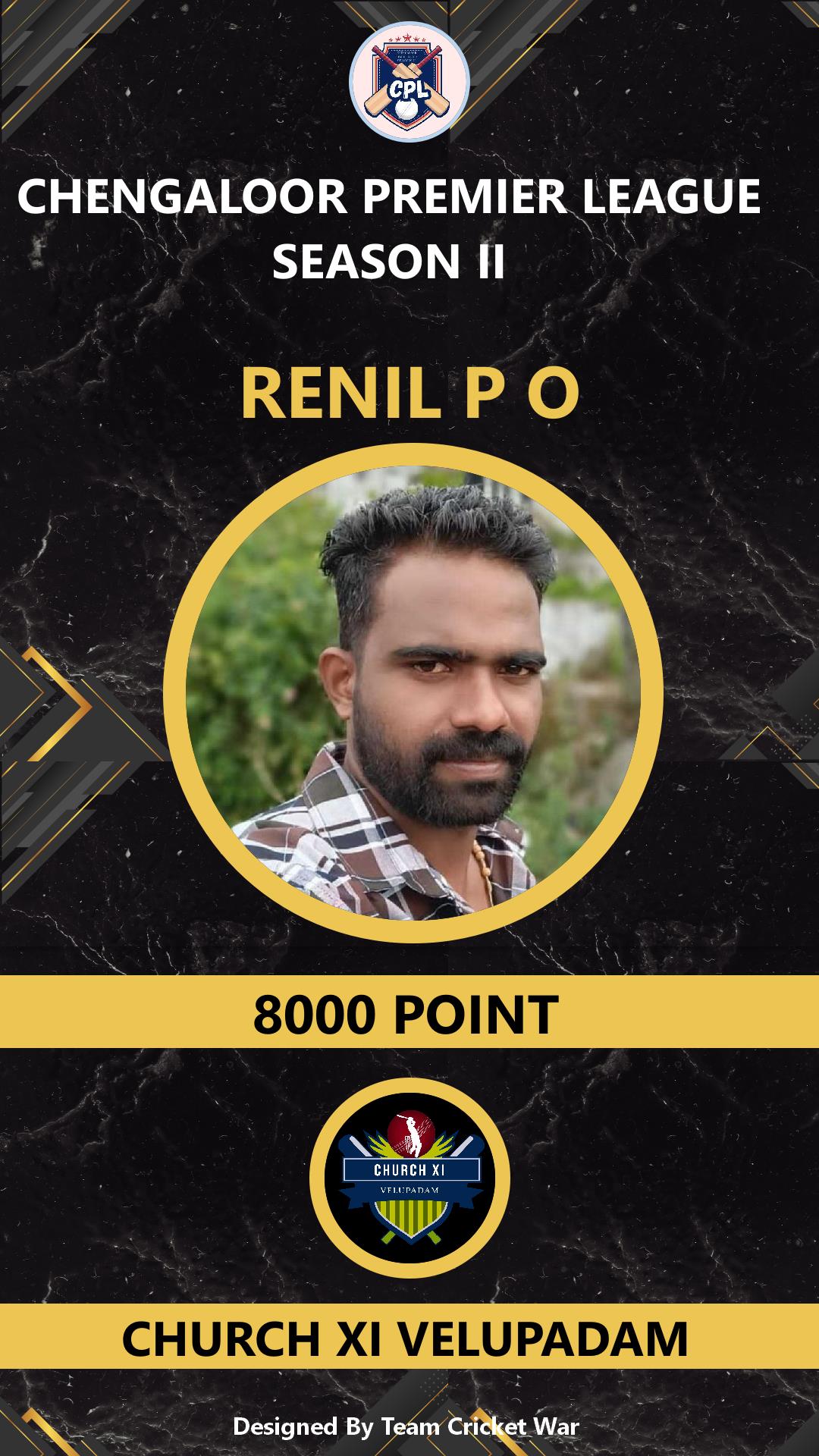 ALLROUNDER, AGE : 29 VARANDARAPPILLY Bid Amount : 7000 Team : CHURCH XI VELUPADAM Download ID Card VIEW PROFILE |
