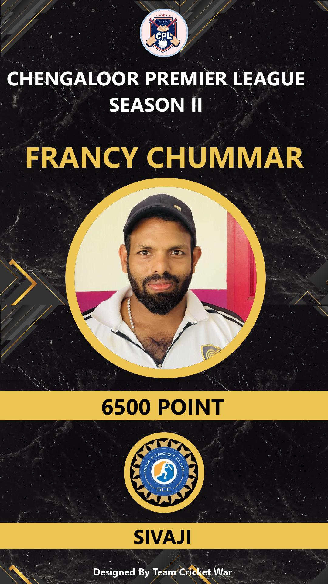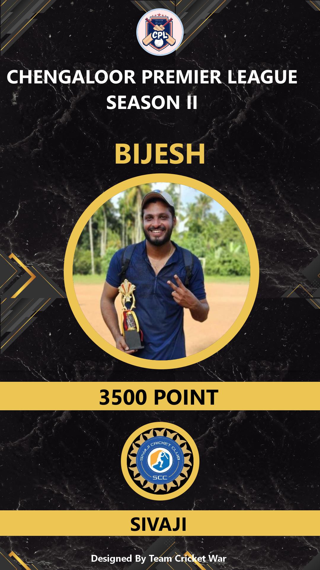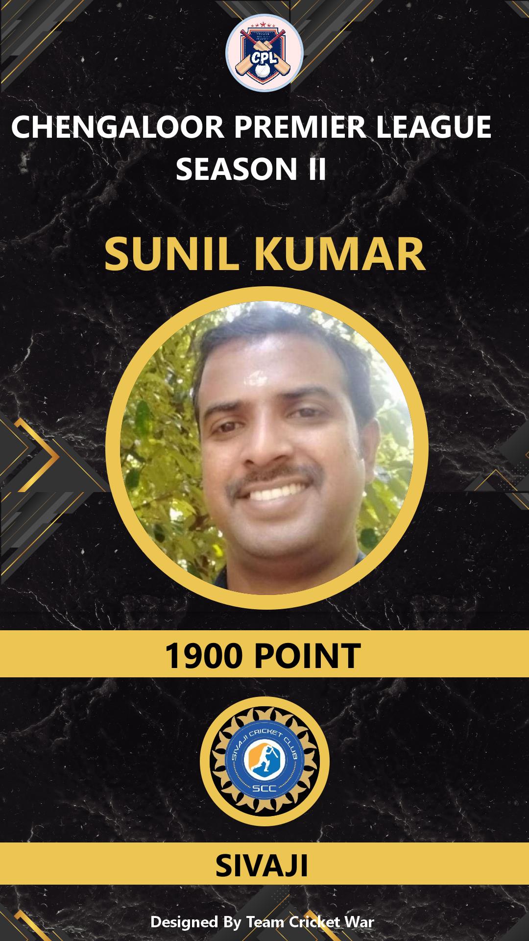 BATSMAN, AGE : 38 KANJOOR Bid Amount : 3500 Team : SIVAJI Download ID Card VIEW PROFILE |