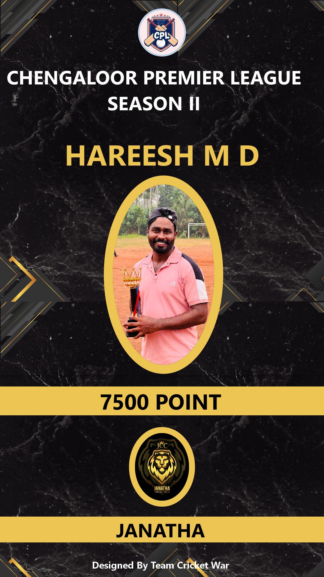 BATSMAN, AGE : 31 CHENGALOOR Bid Amount : 7500 Team : JANATHA Download ID Card |