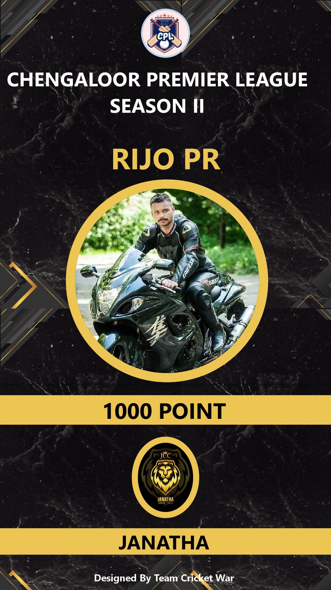 ALLROUNDER, AGE : 35 CHENGALOOR Bid Amount : 2200 Team : JANATHA Download ID Card VIEW PROFILE |