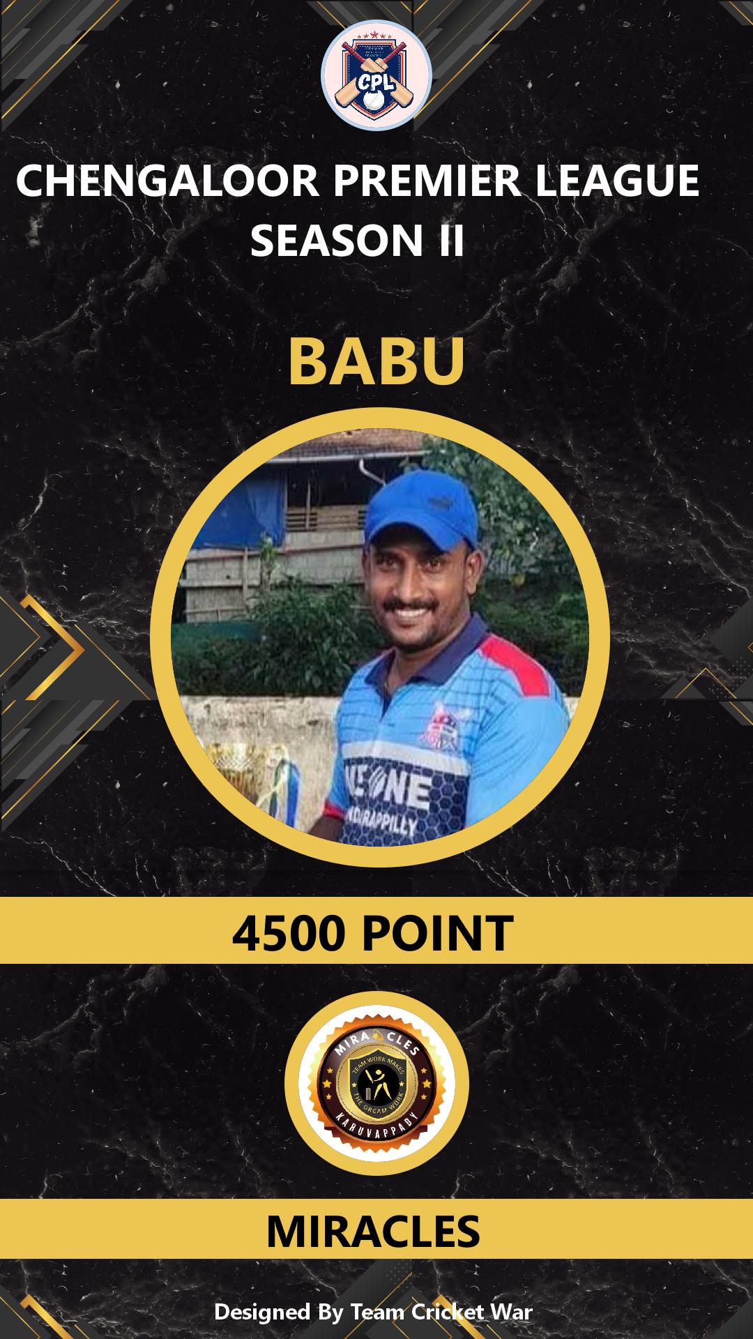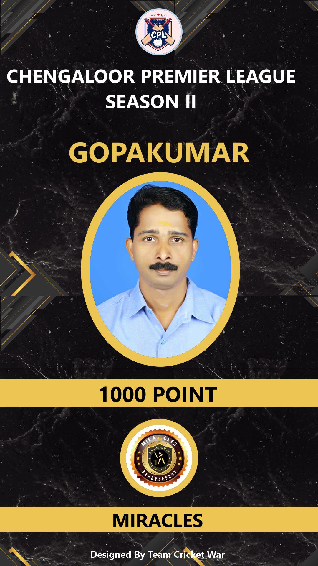 BOWLING ALLROUNDER, AGE : 49 MUPLIYAM Bid Amount : 1000 Team : MIRACLES Download ID Card |