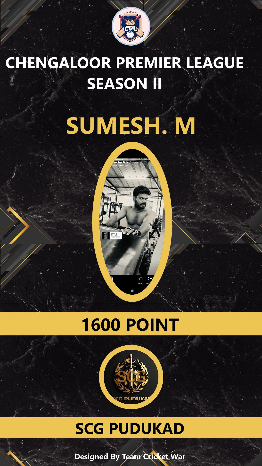 ALLROUNDER, AGE : 43 MUPLIYAM Bid Amount : 10000 Team : SCG PUDUKAD Download ID Card |