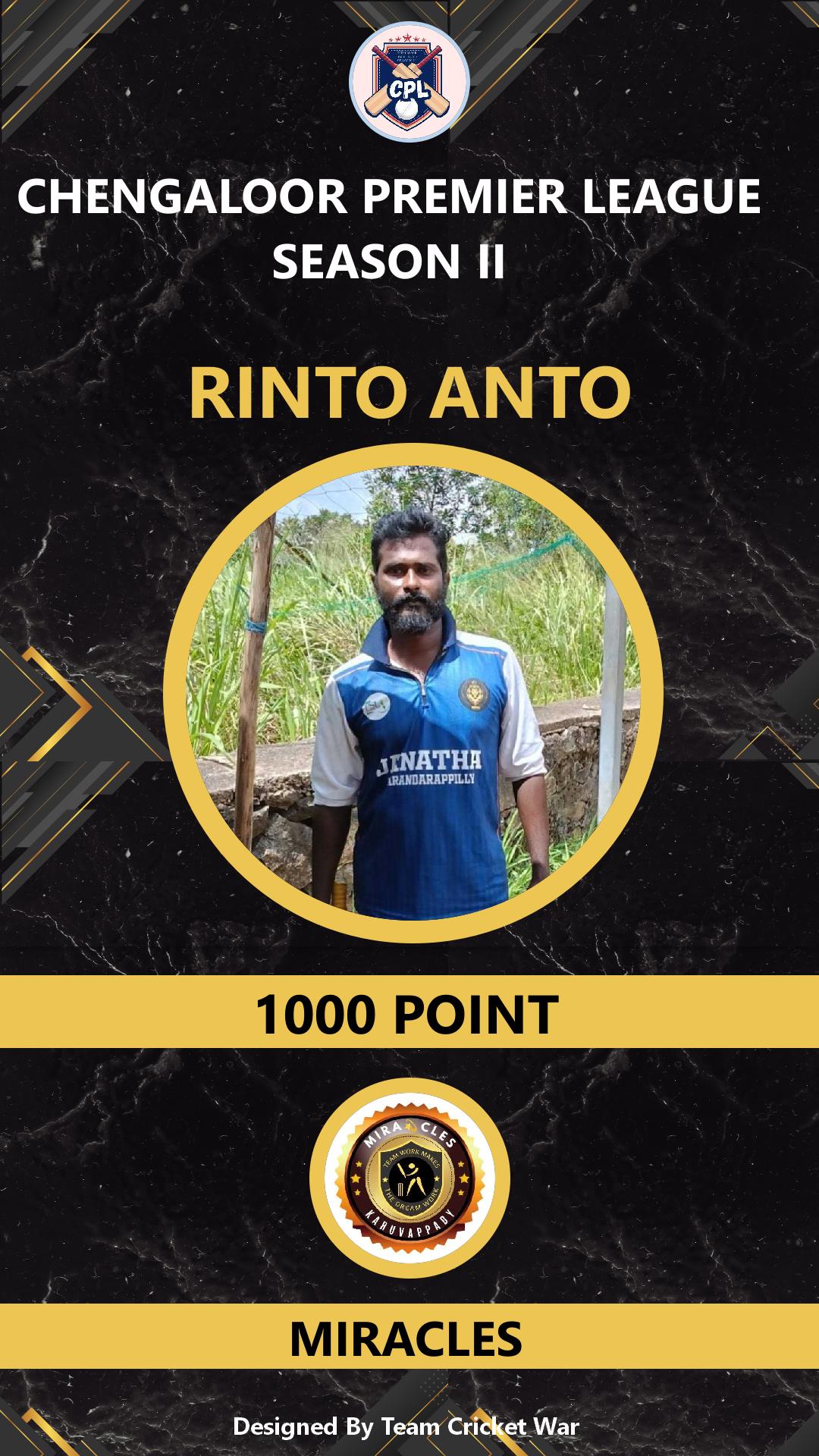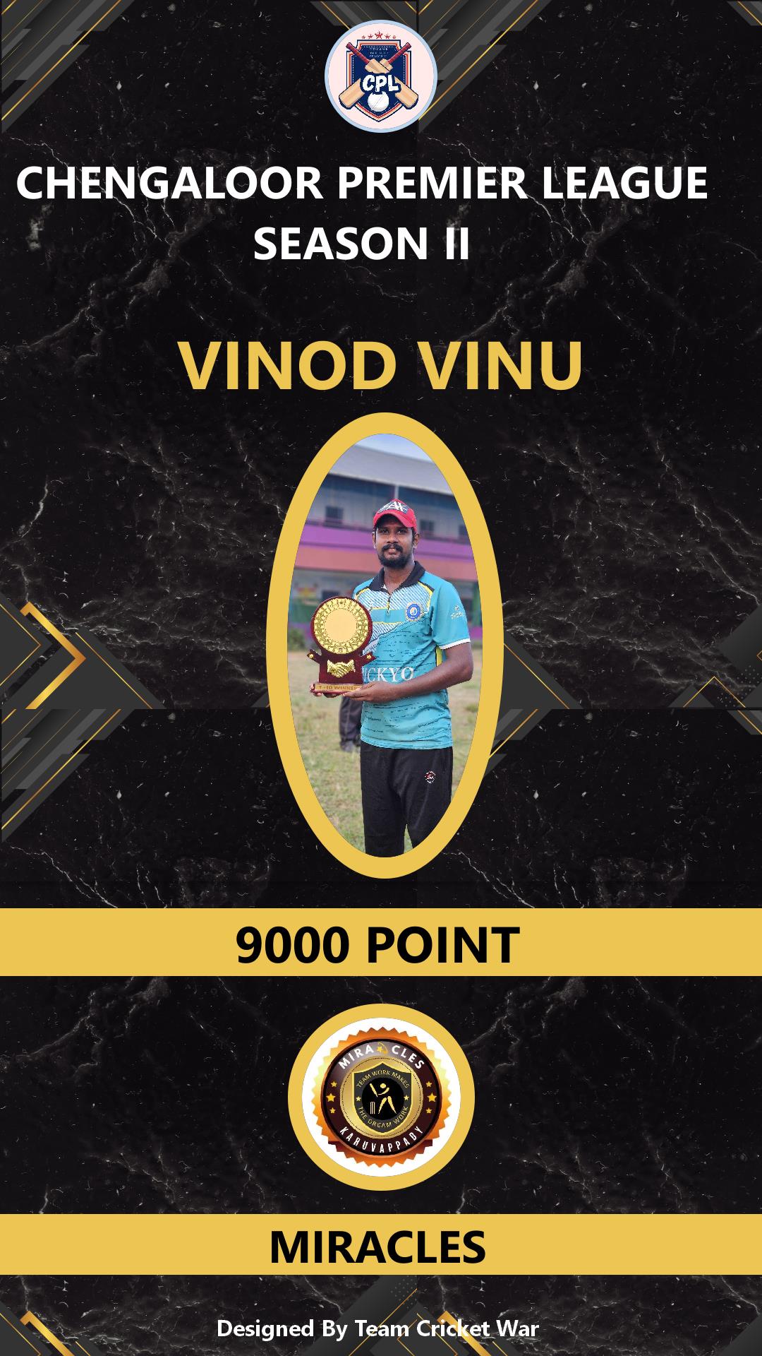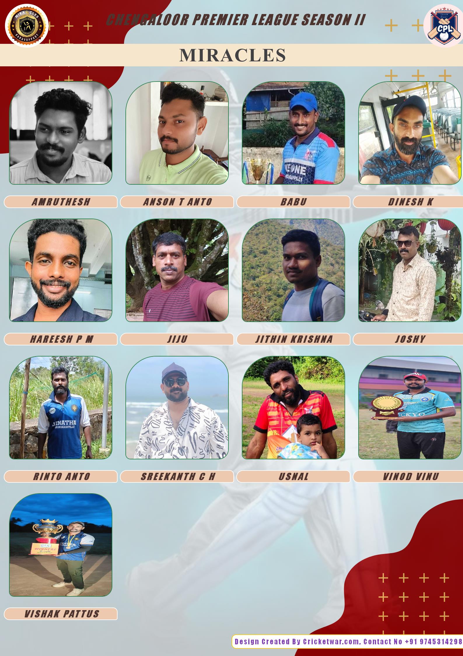 BOWLING ALLROUNDER, AGE : 38 VARANDARAPPILLY Bid Amount : 2400 Team : MIRACLES Download ID Card VIEW PROFILE |